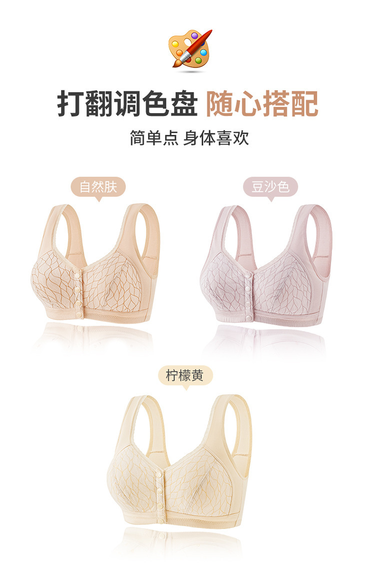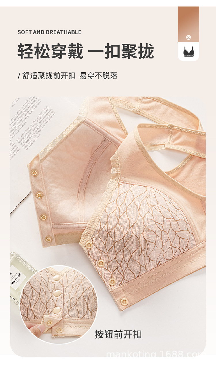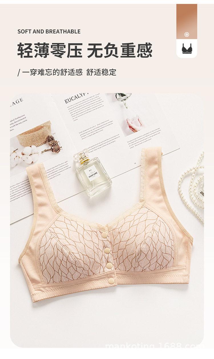 夏季透气孔中老年文胸妈妈胸罩薄款无钢圈舒适大胸内衣前扣背心