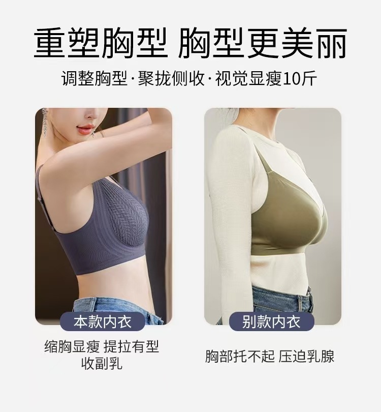 新款反重力提拉上托舒适无痕内衣女聚拢收副乳防下垂无钢圈文胸罩