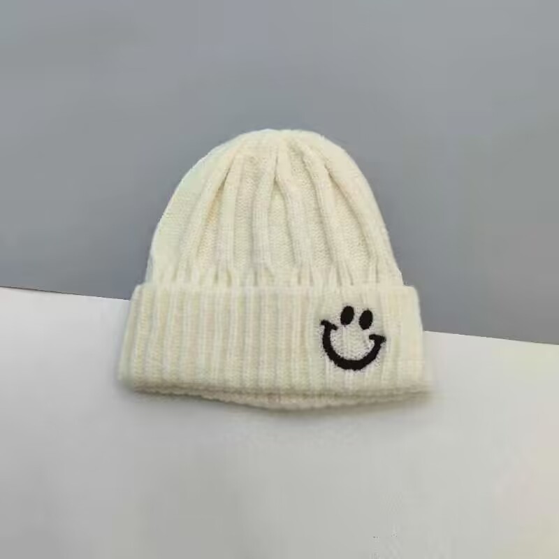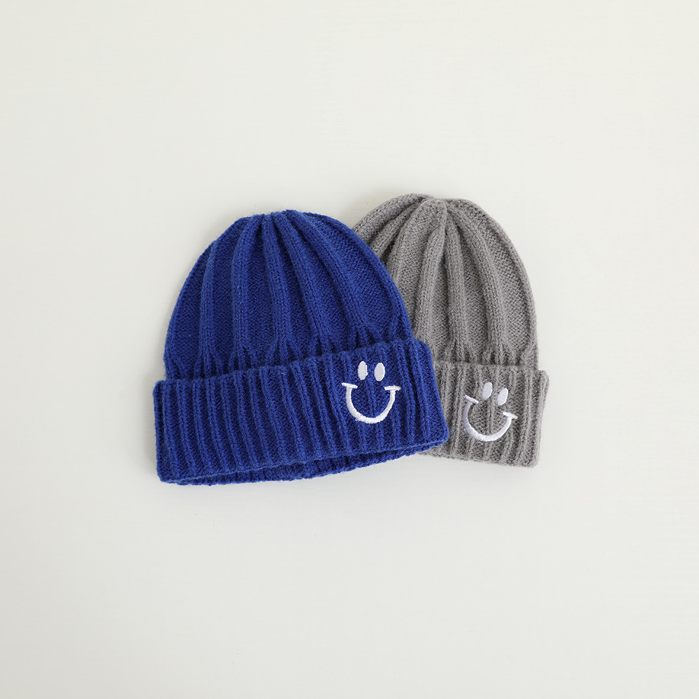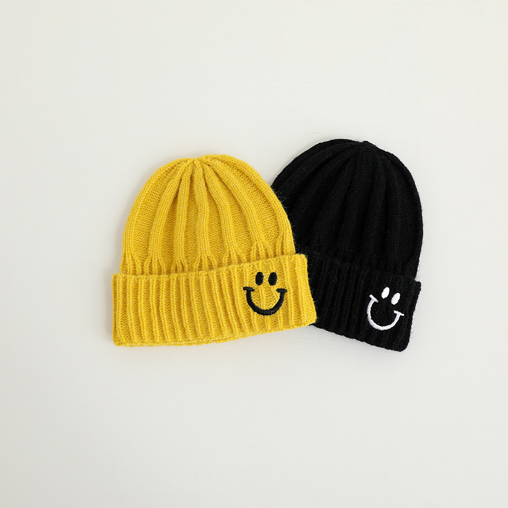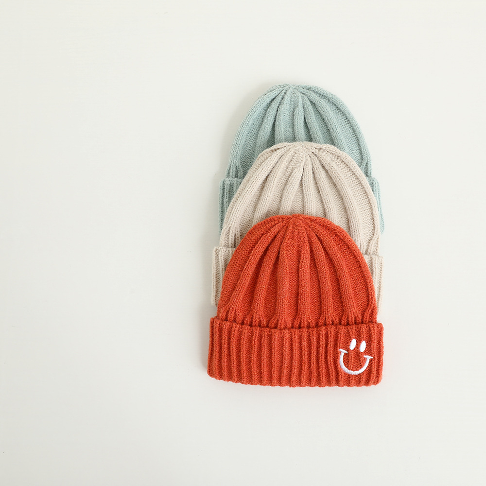 笑脸儿童毛线帽韩版简约男童女童宝宝冬天针织帽子保暖婴儿帽子