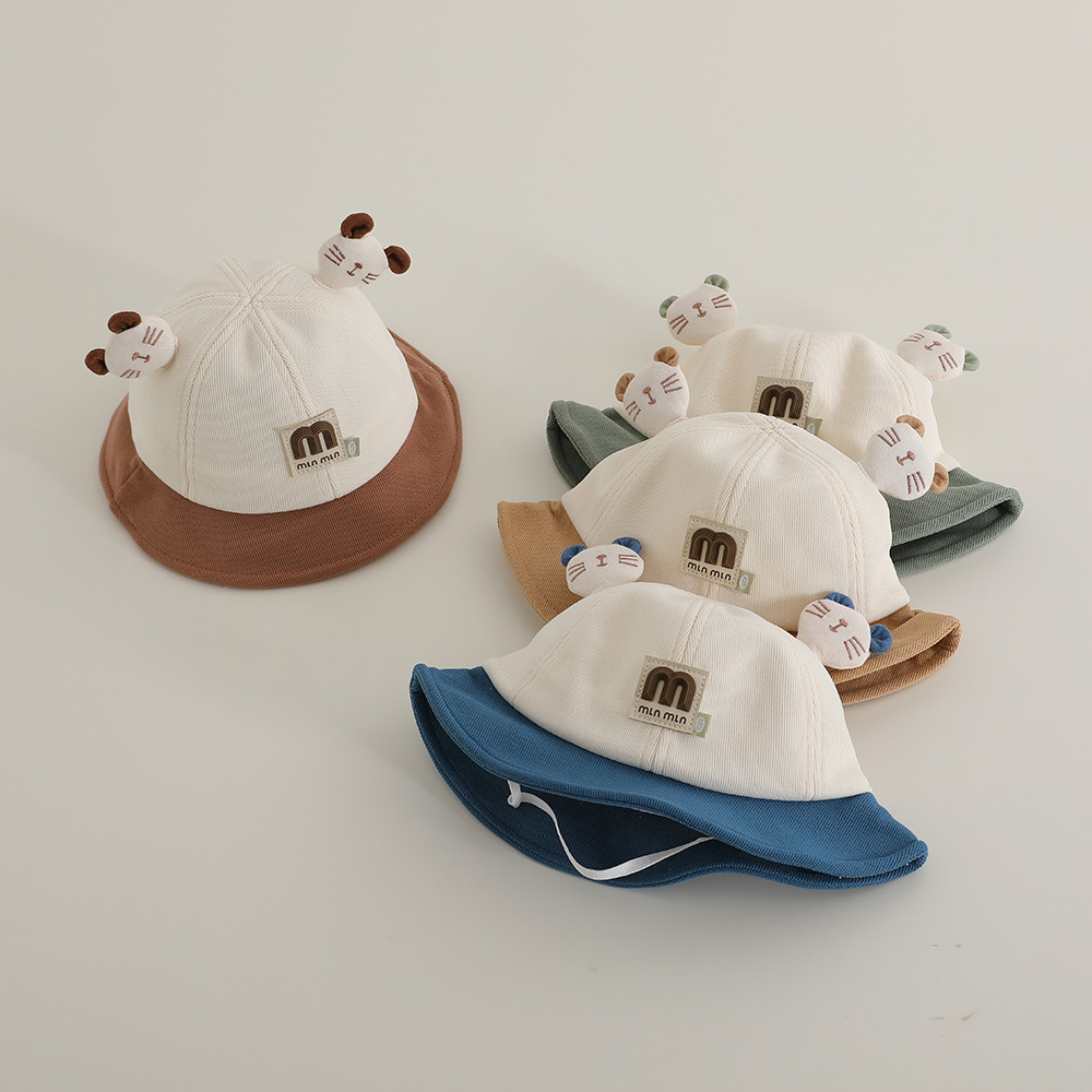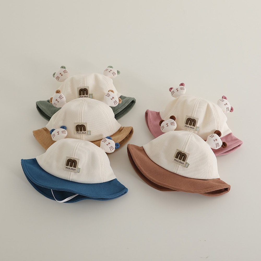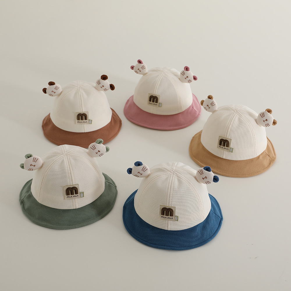 M标小猫小宝宝盆帽秋季遮阳帽宝宝渔夫帽春季防晒男女童休闲盆帽