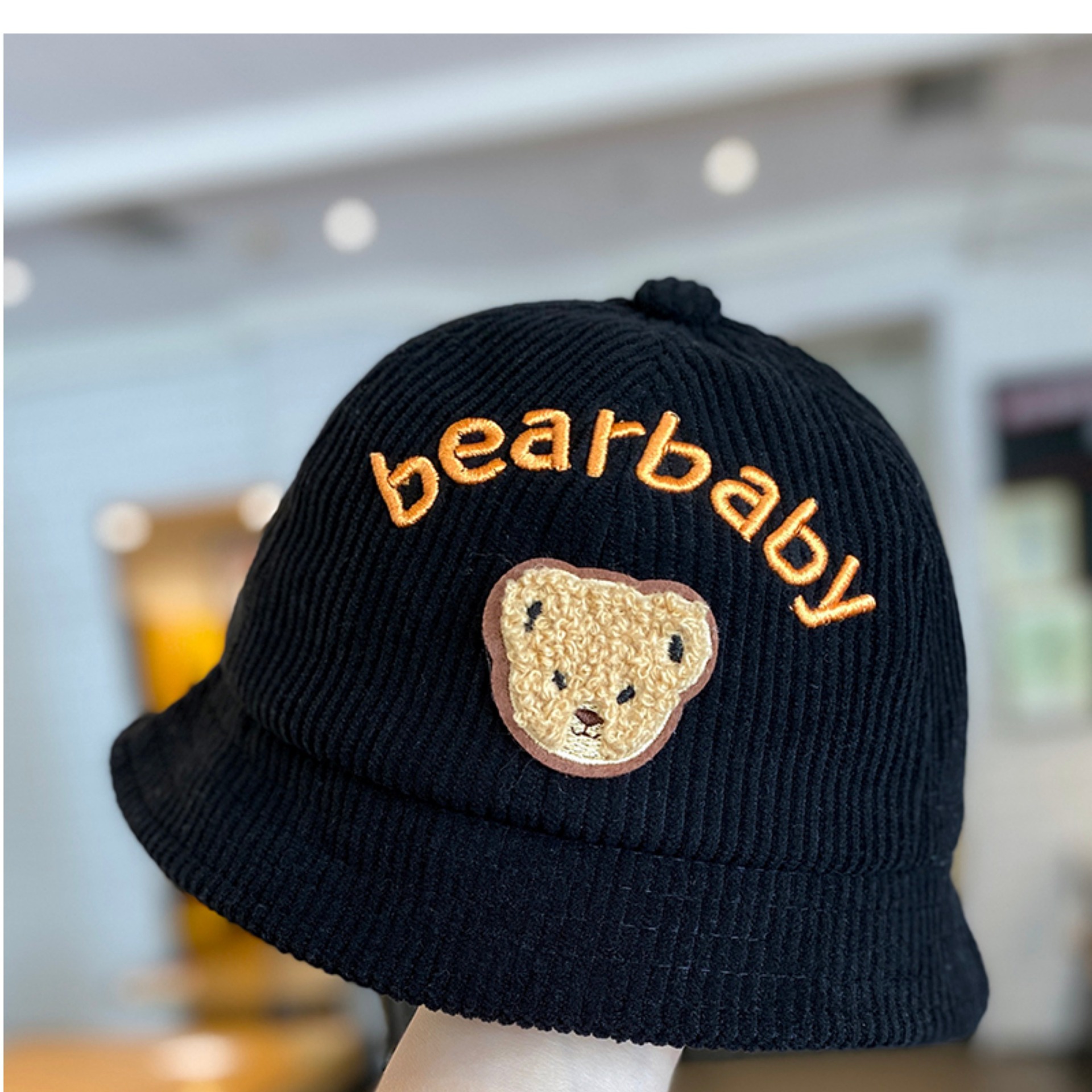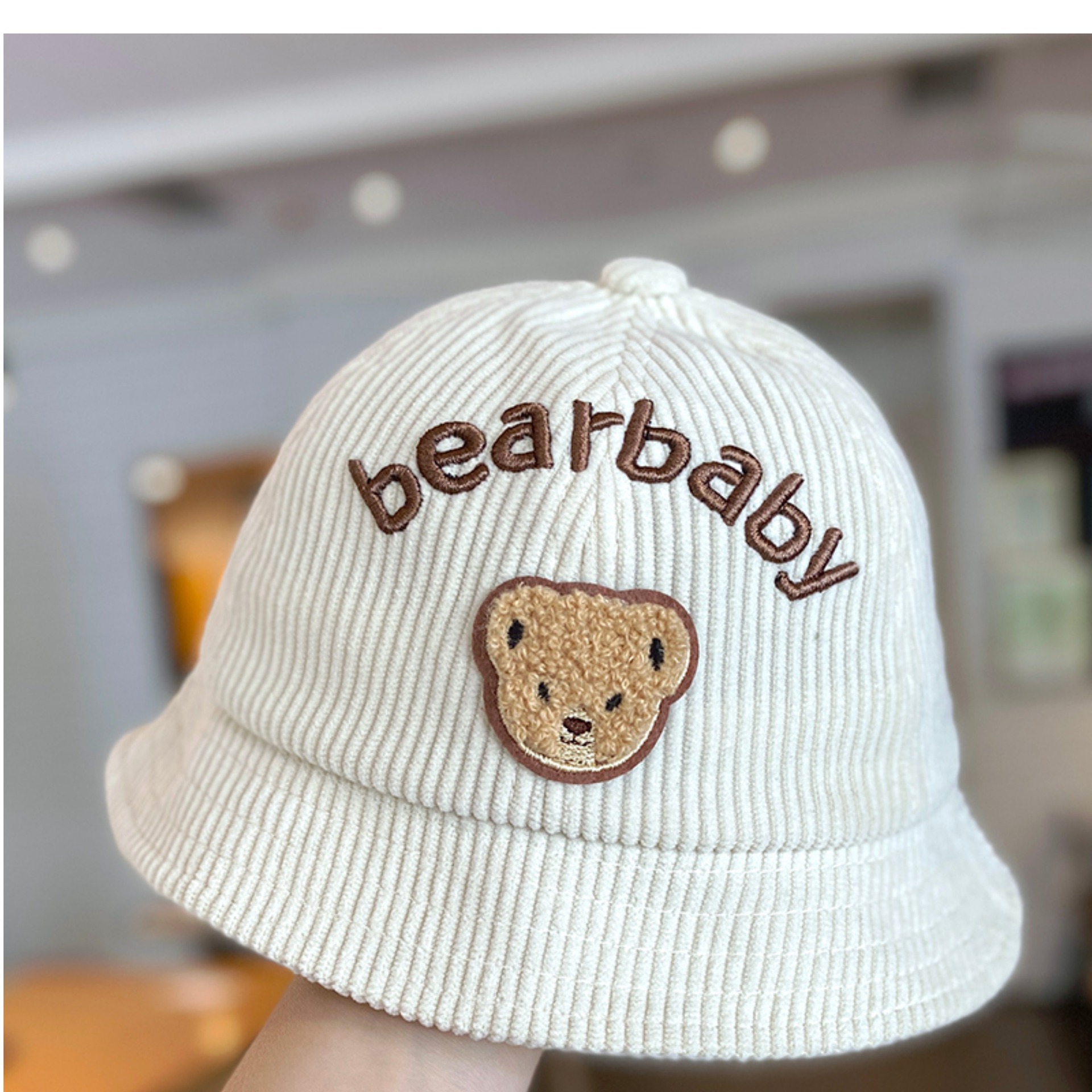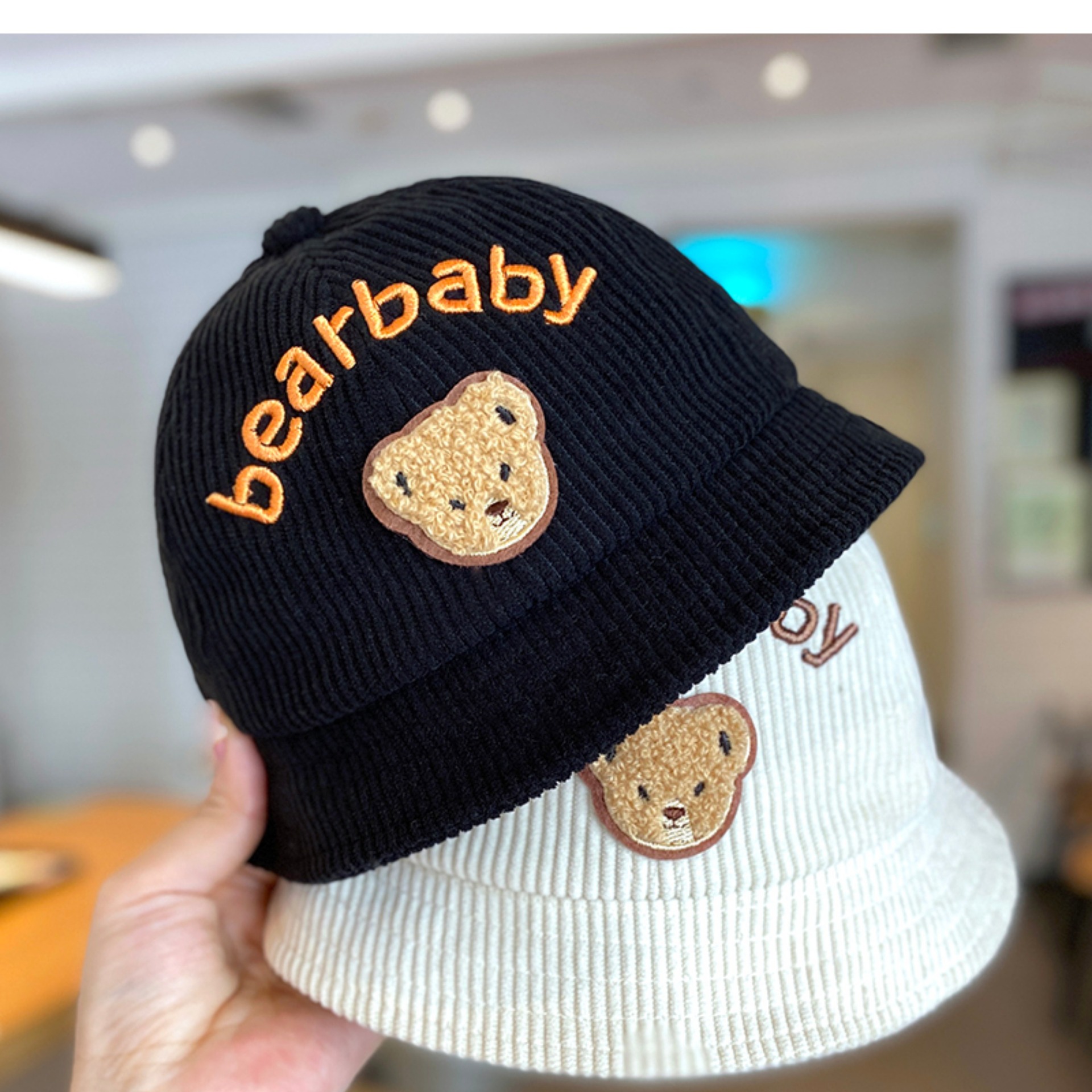 韩版婴儿帽子秋冬季灯芯绒可爱小熊渔夫帽男童女童遮阳百搭盆帽潮
