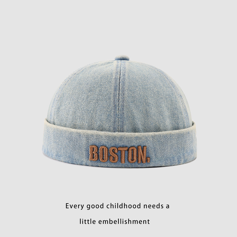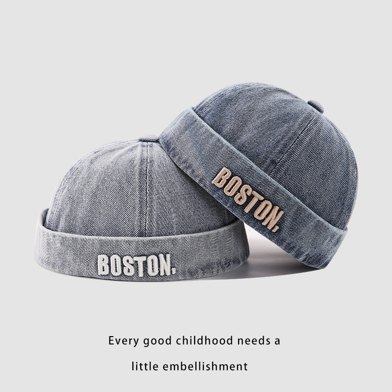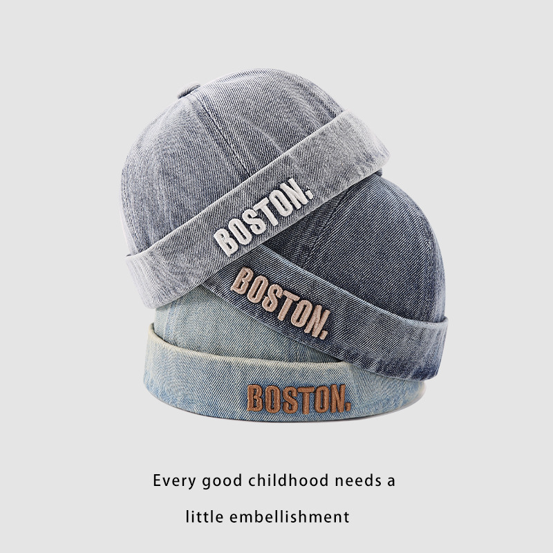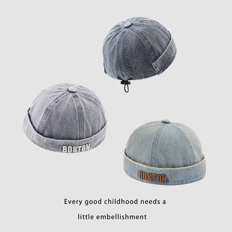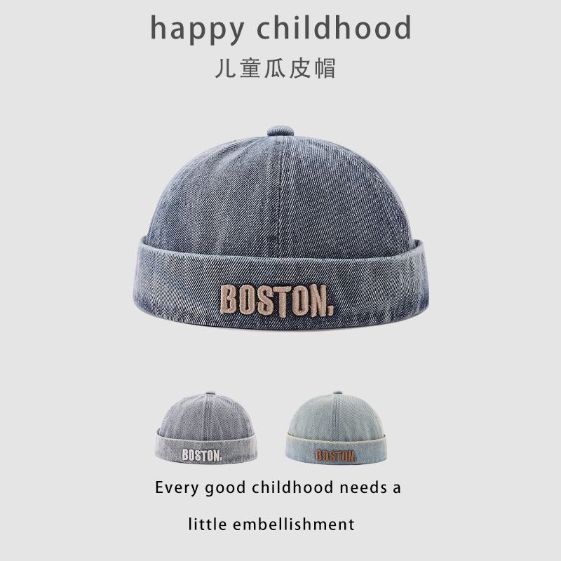 宝宝地主帽春秋新款洋气牛仔帽字母刺绣儿童凹造型男童瓜皮帽潮搭