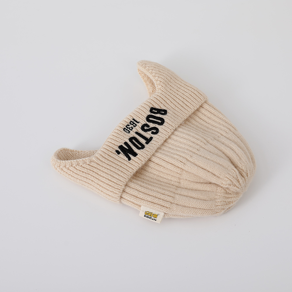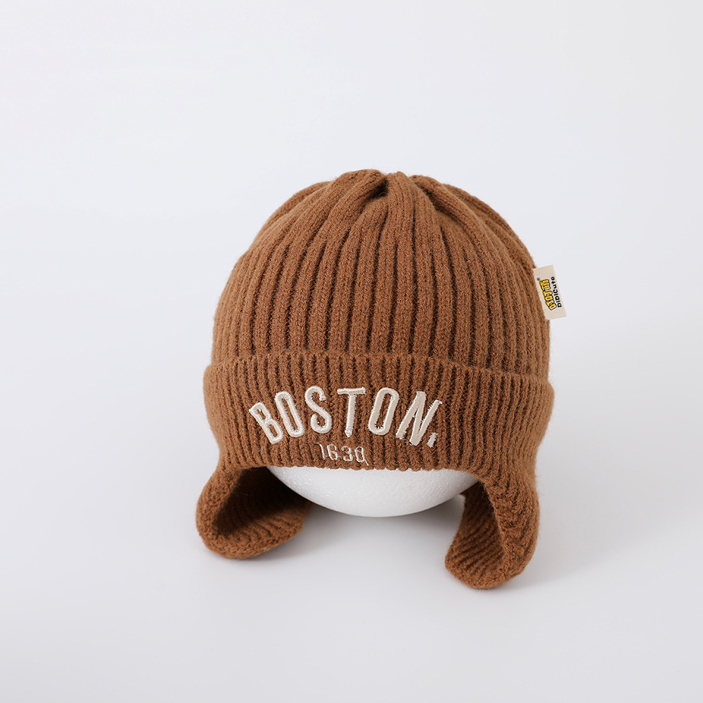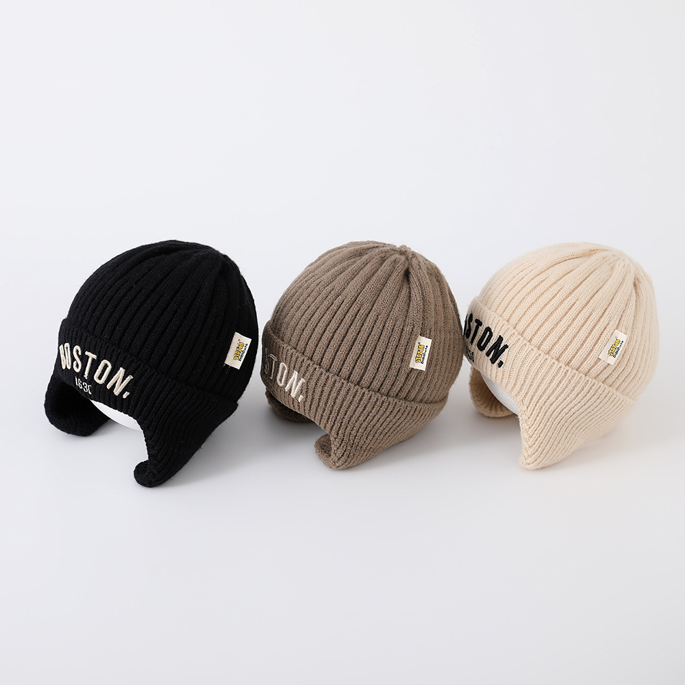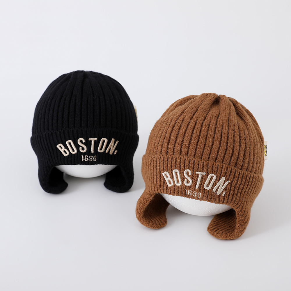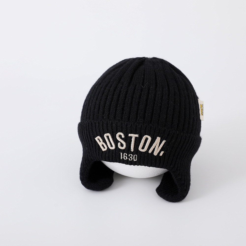 BOSTON婴儿字母儿童毛线帽宝宝针织帽加里布婴儿秋冬款护耳保暖帽