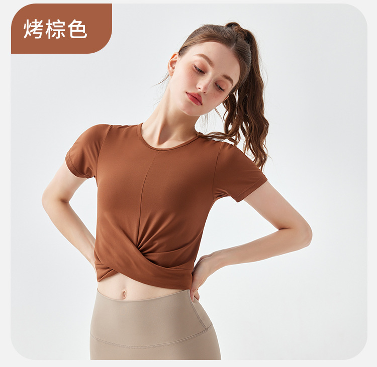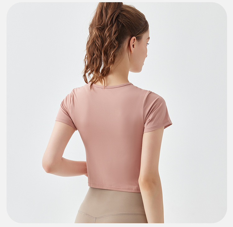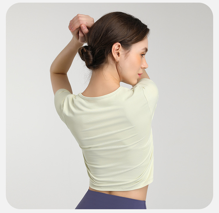 跨境运动瑜伽罩衫夏季瑜伽服上衣跑步速干短袖T恤时尚健身服女