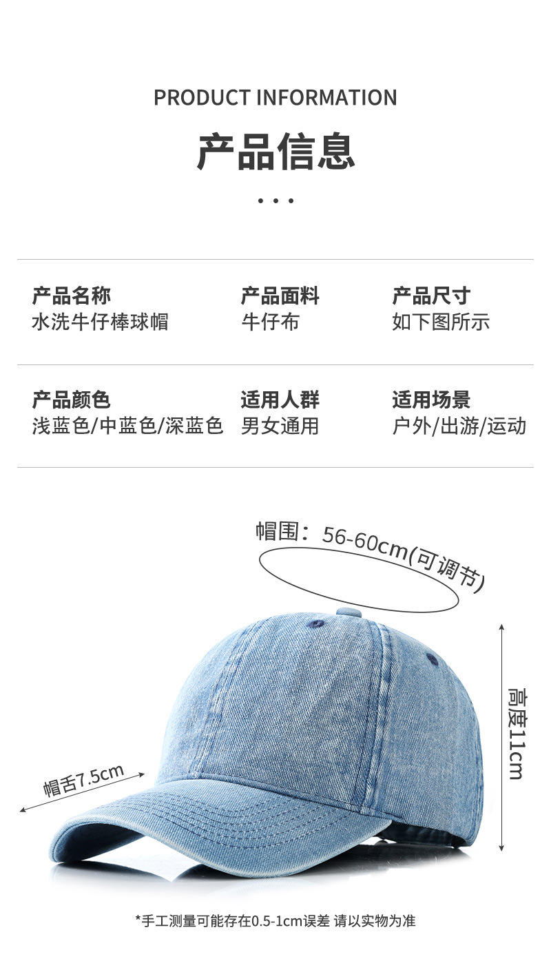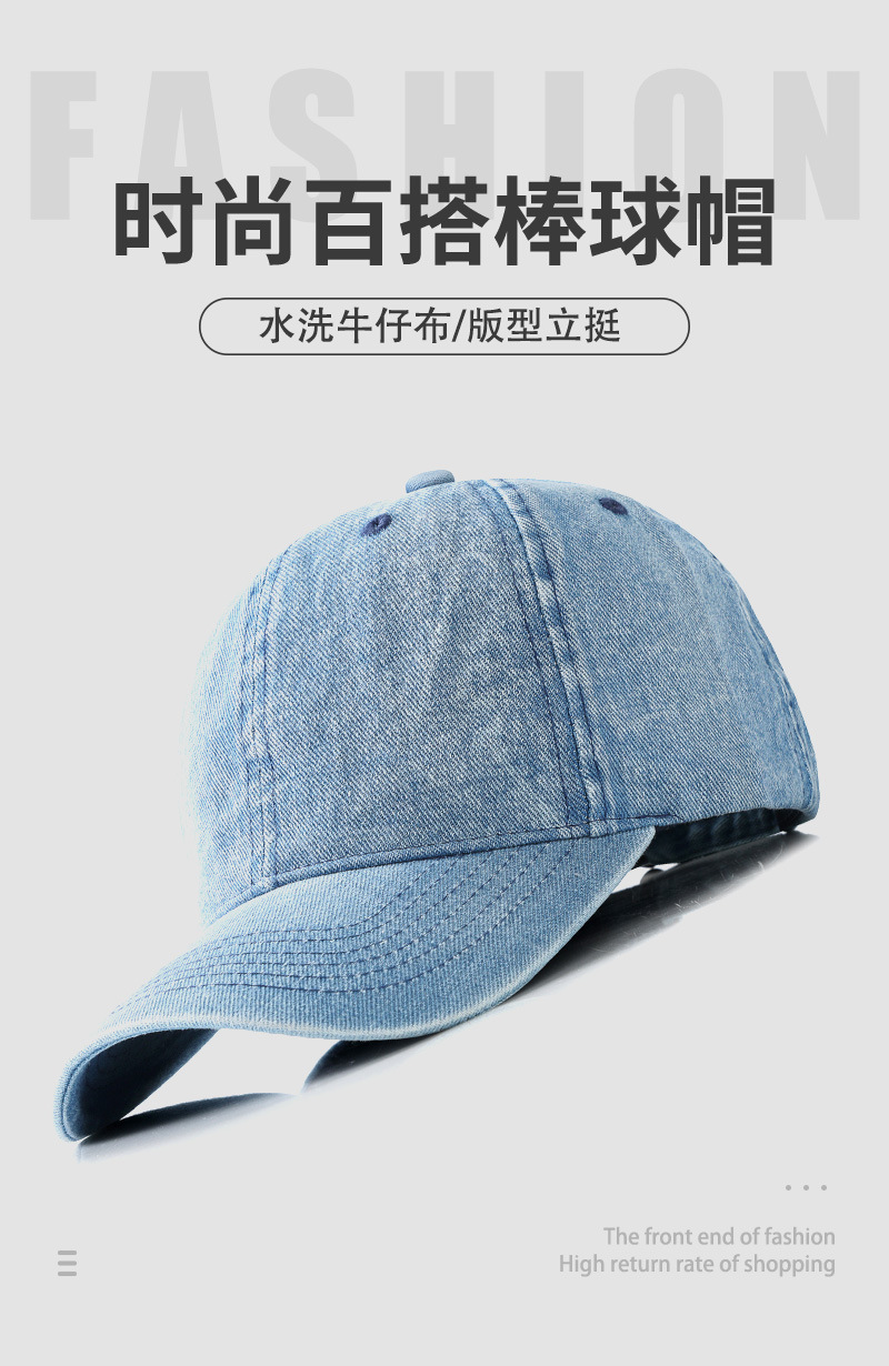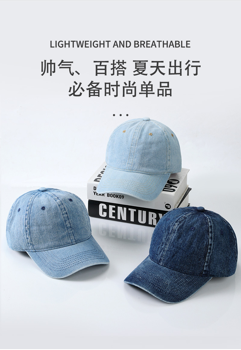 春夏户外休闲韩风男女软顶复古水洗做旧牛仔棒球帽情侣逛街鸭舌帽