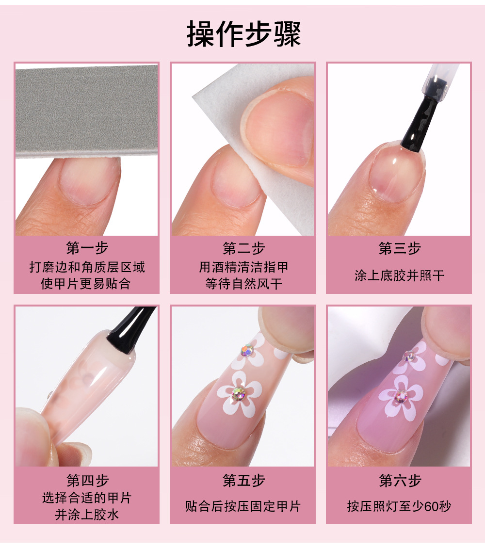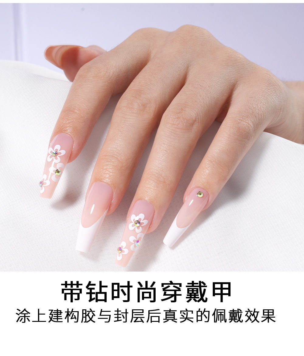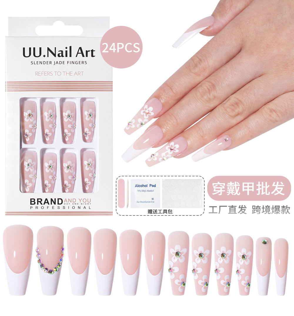 跨境法式手工穿戴甲长梯甜美高级感可拆卸贴片假指甲长款预制美甲