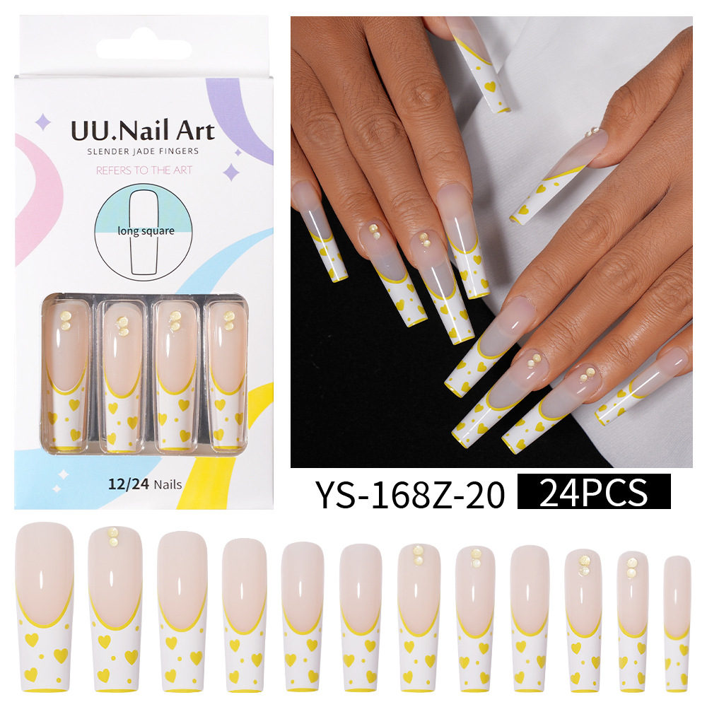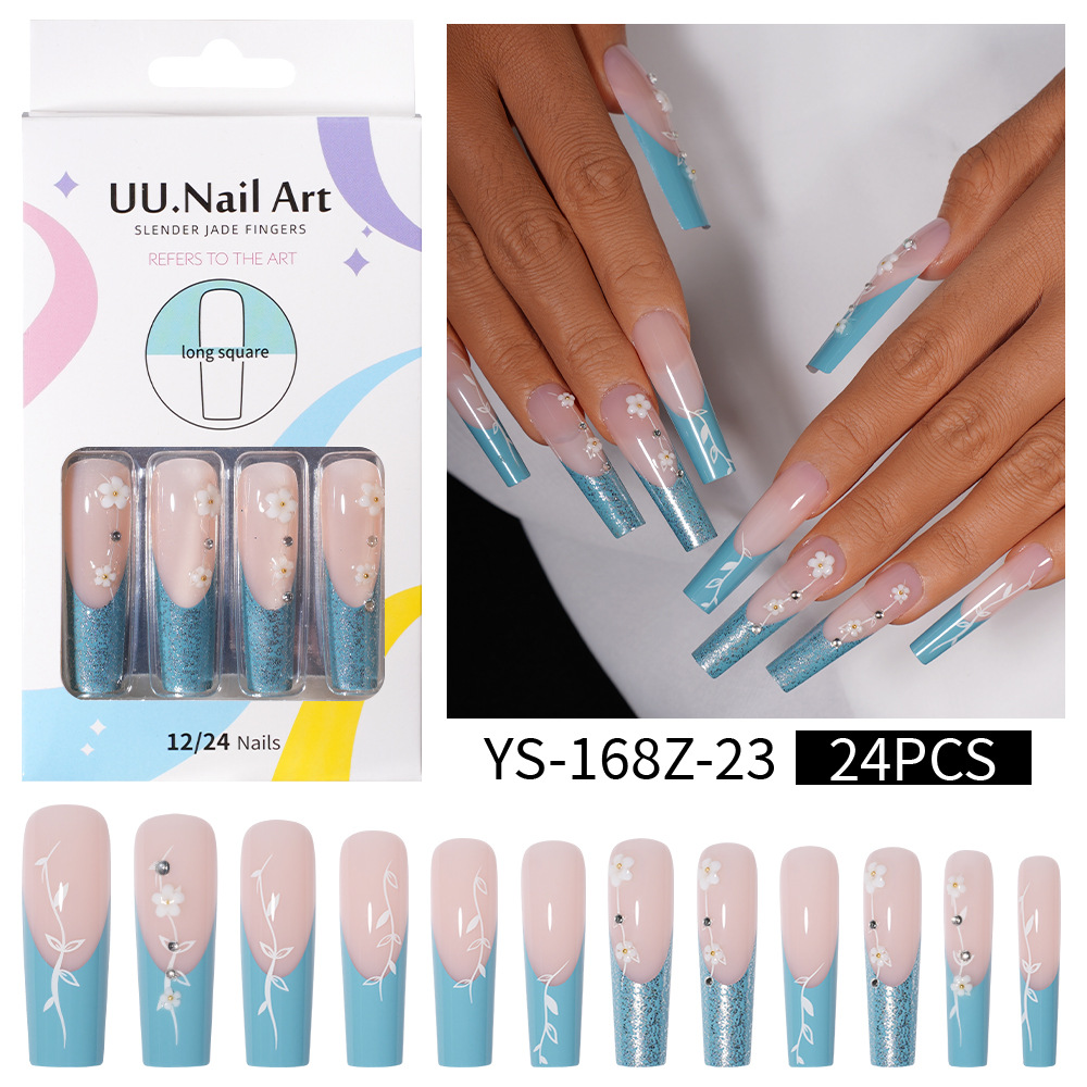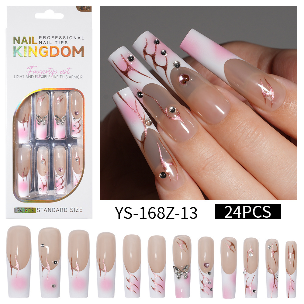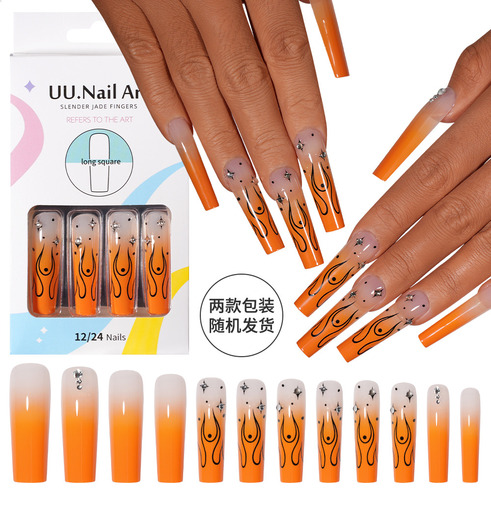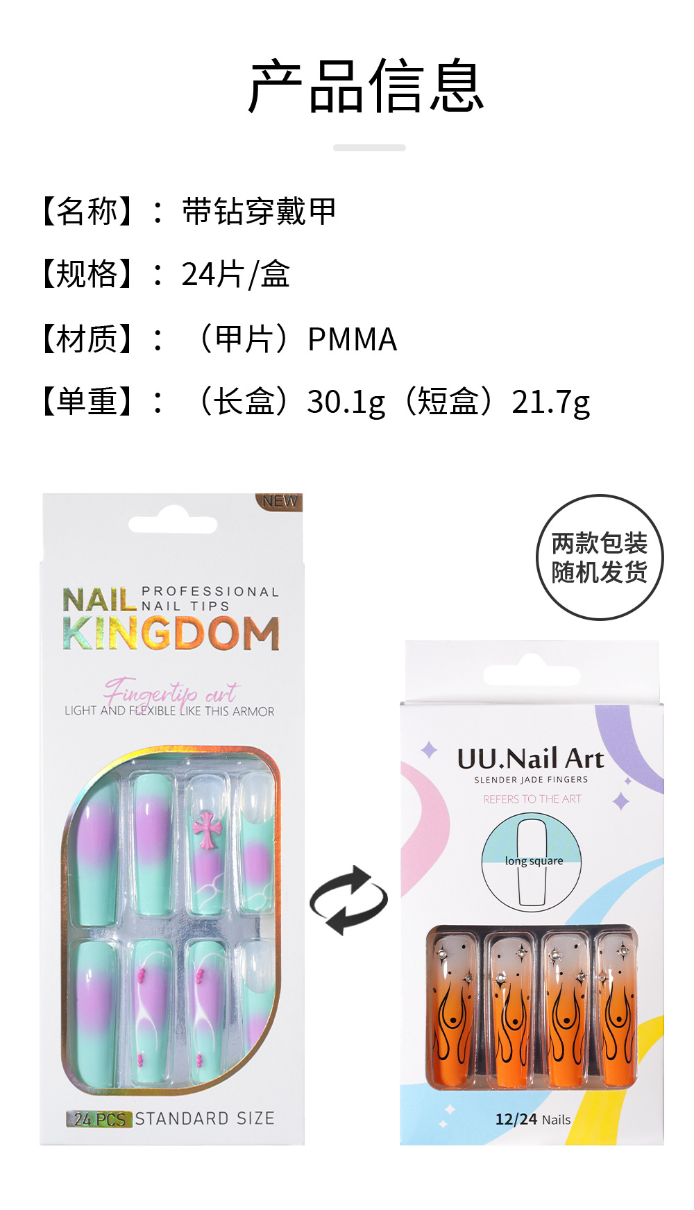 跨境新款长款穿戴甲 法式百搭贴片美甲可拆卸预制假指甲穿戴甲片