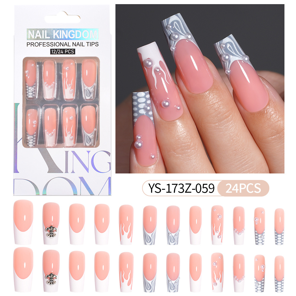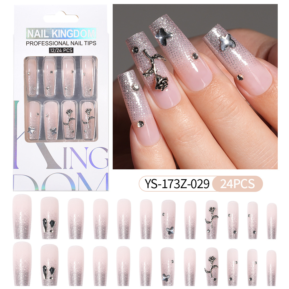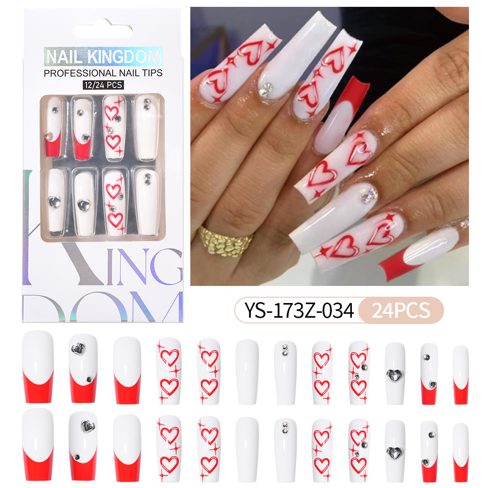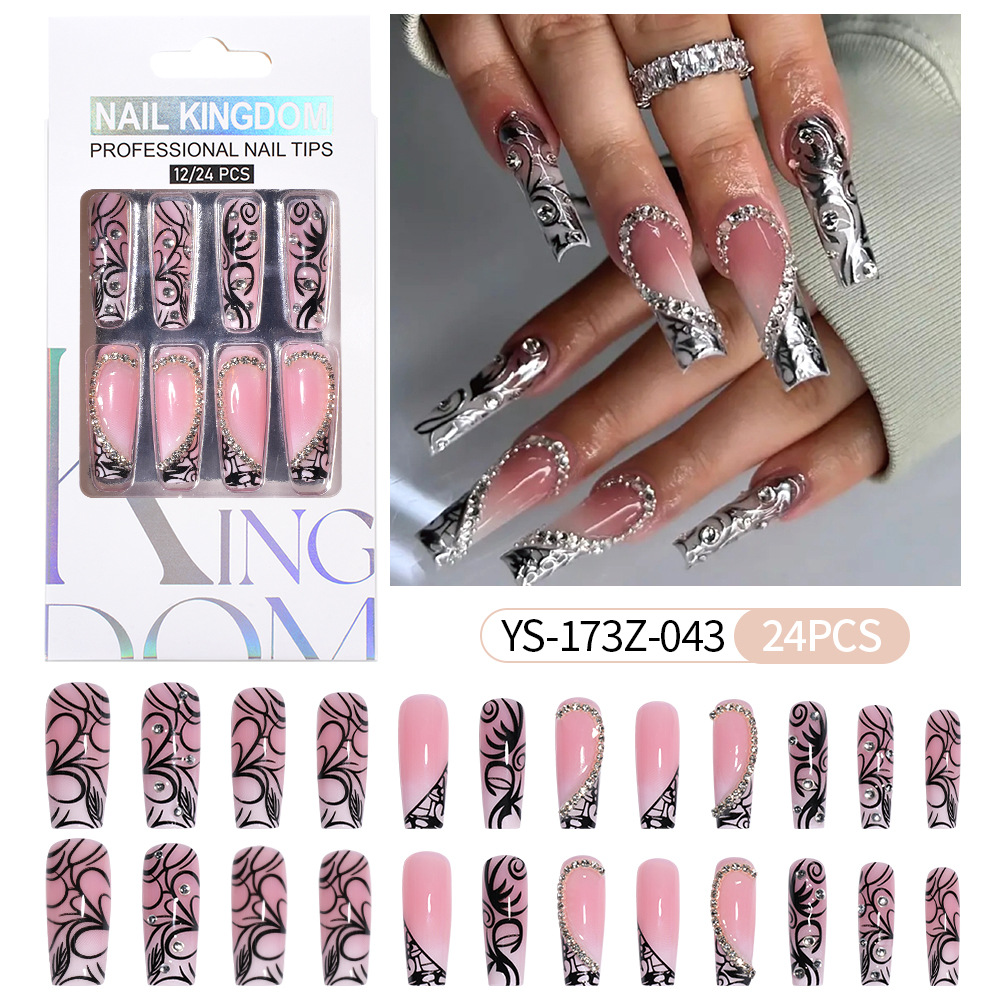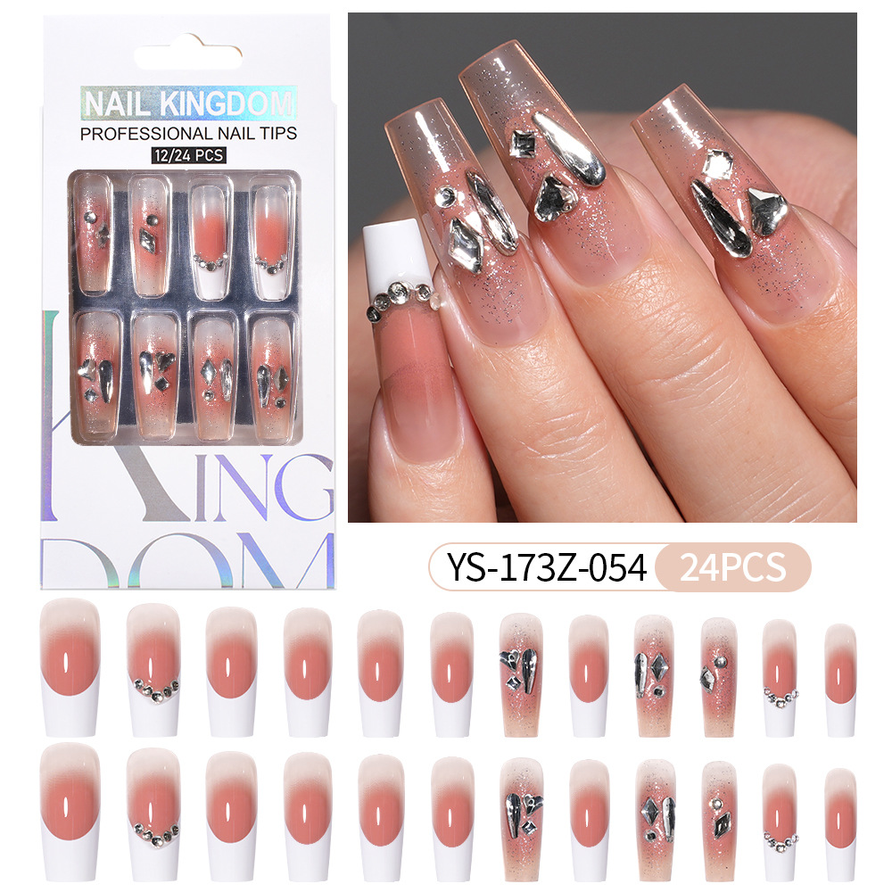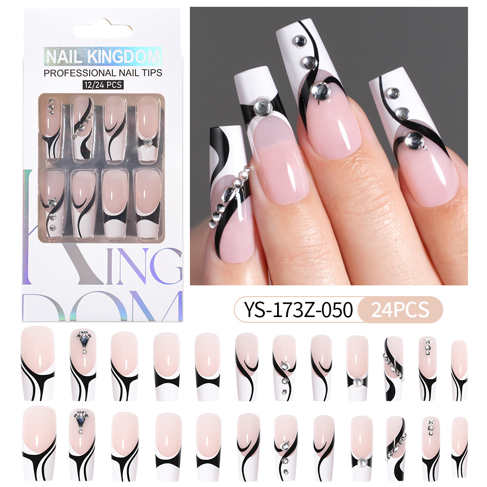 穿戴甲欧美热卖假指甲贴片延长甲辣妹中长方形可拆卸24片带钻美甲
