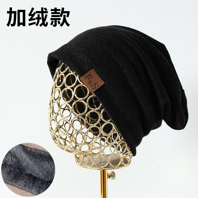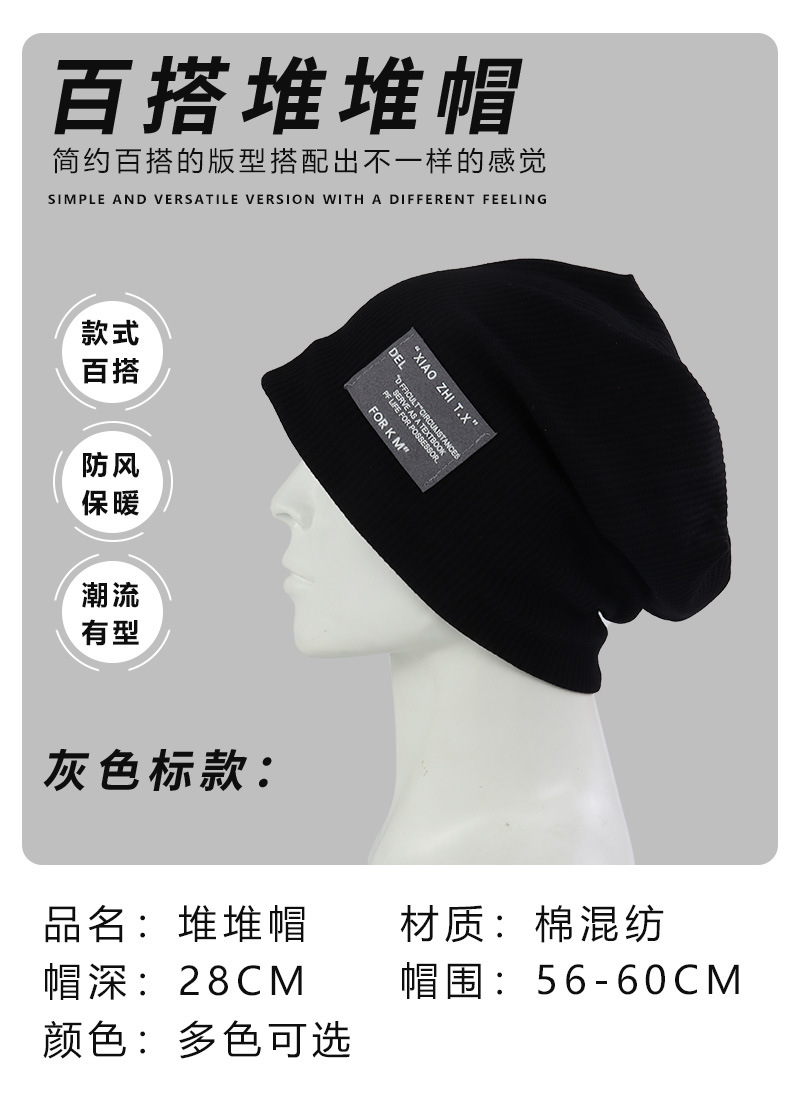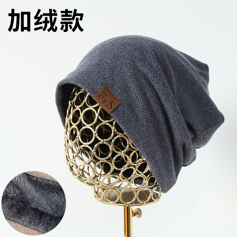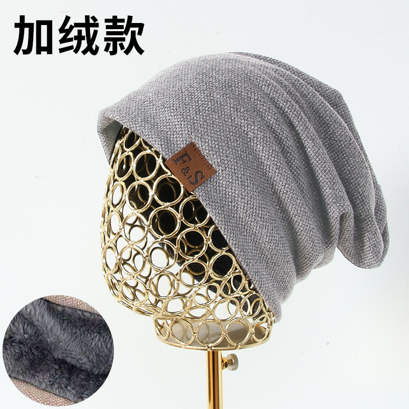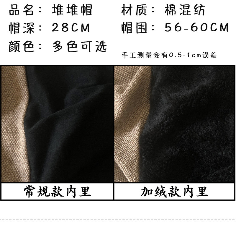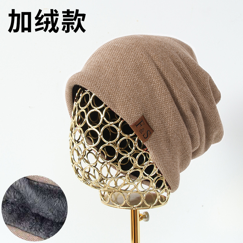 新款堆堆帽女加绒保暖套头帽秋冬季月子帽薄款冷帽韩版包头帽子男