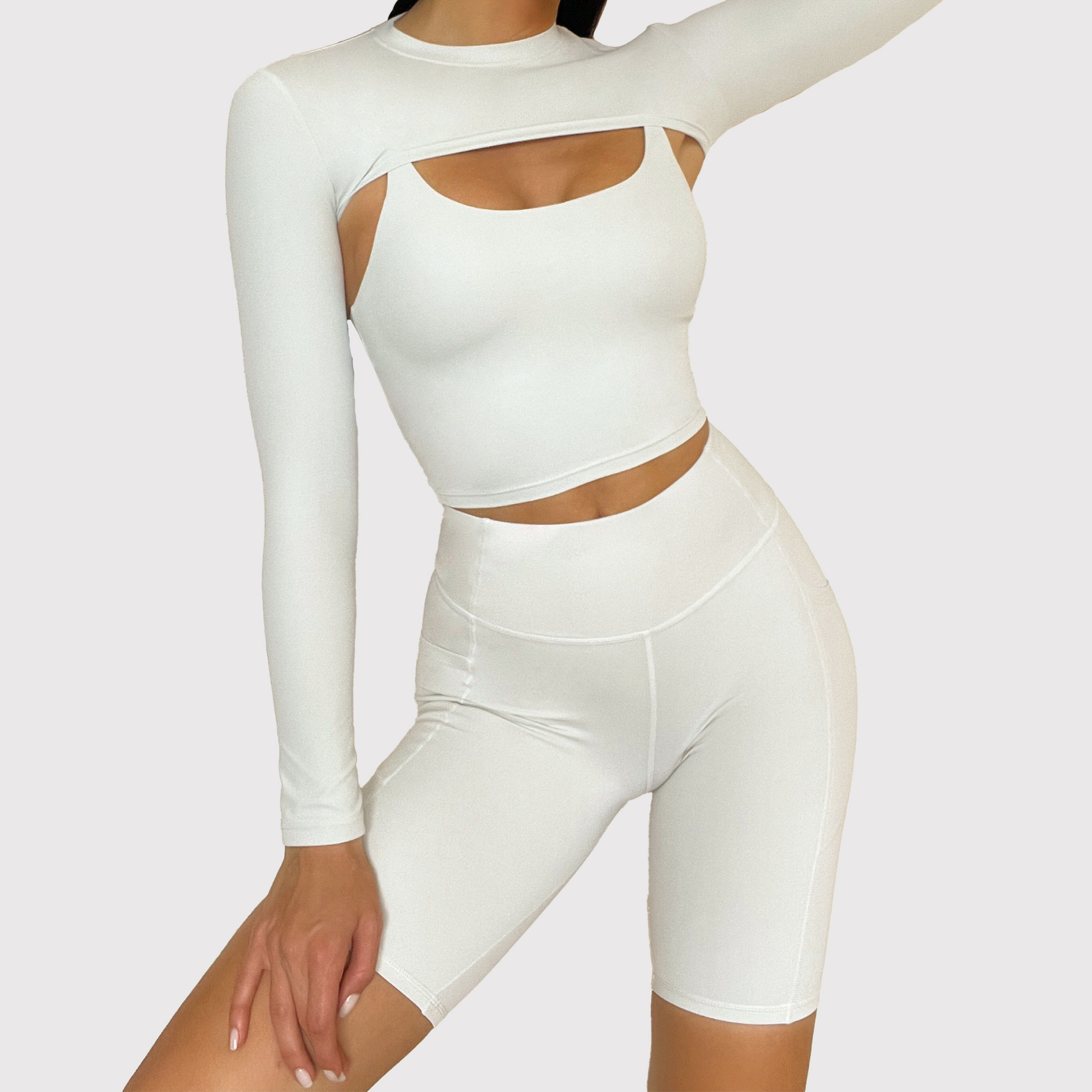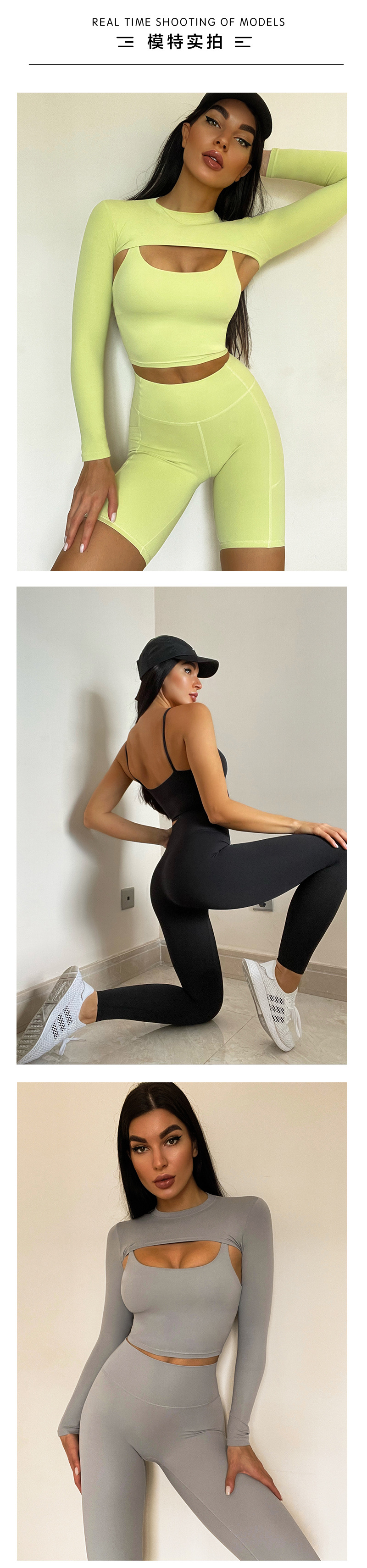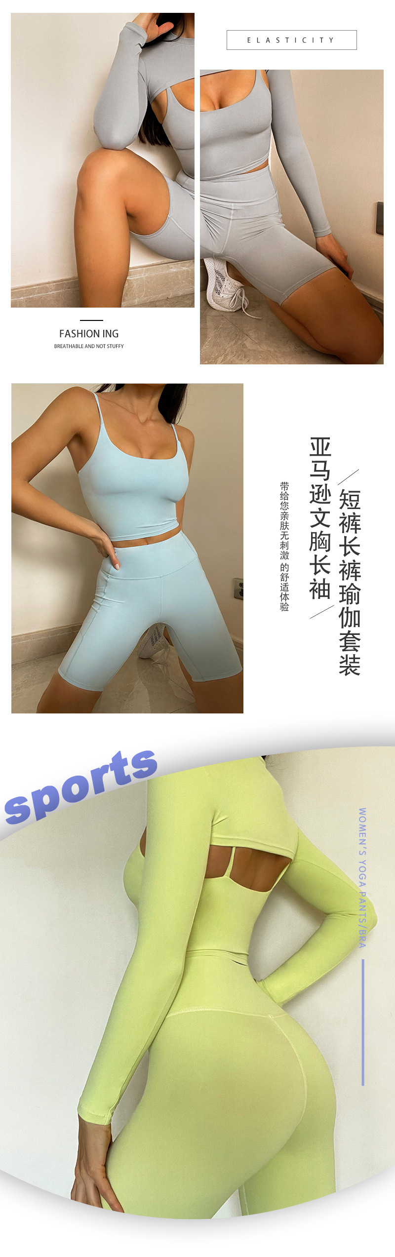 秋冬亚马逊文胸长袖短裤长裤瑜伽套装跑步运动短裤四件套瑜伽服女