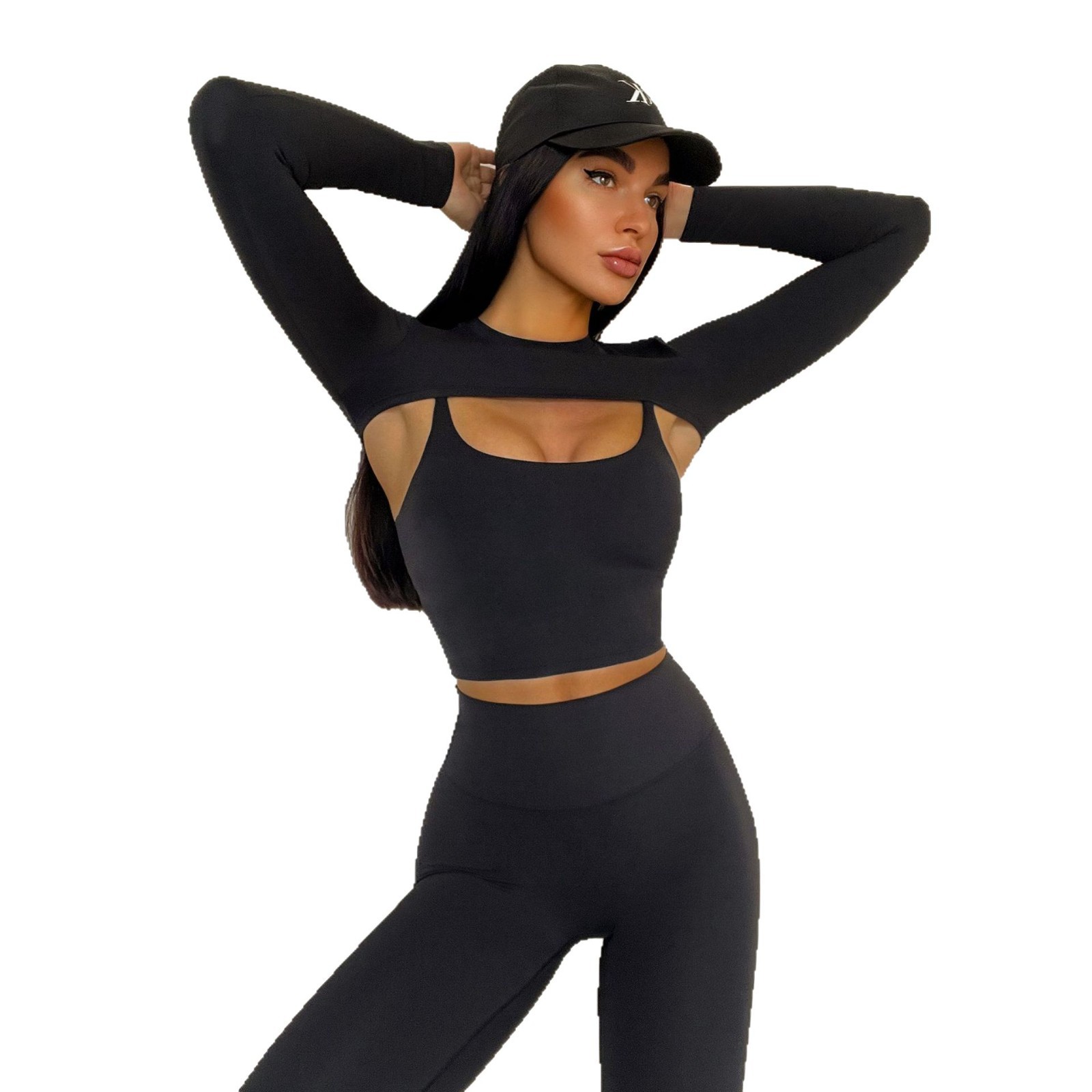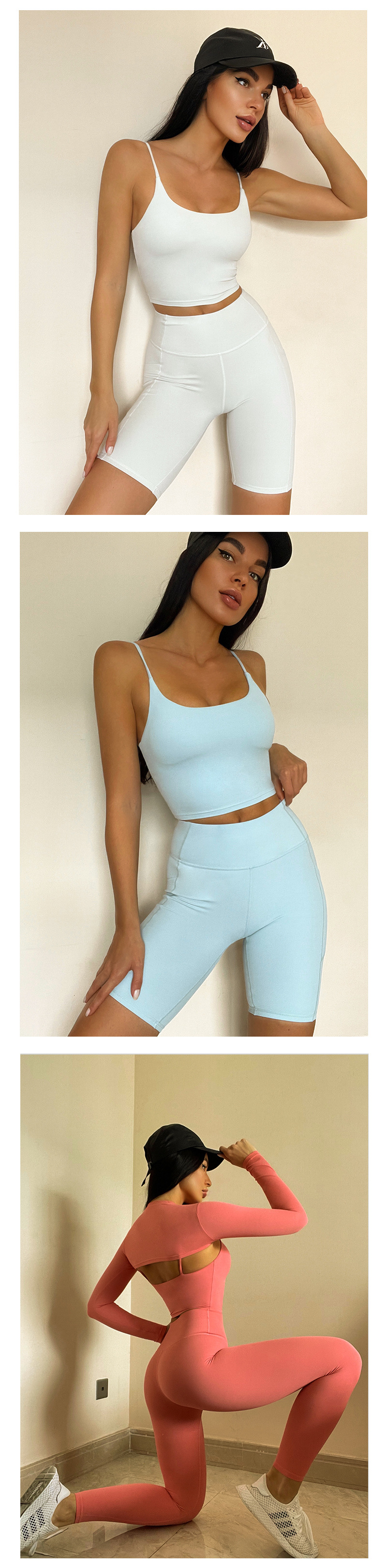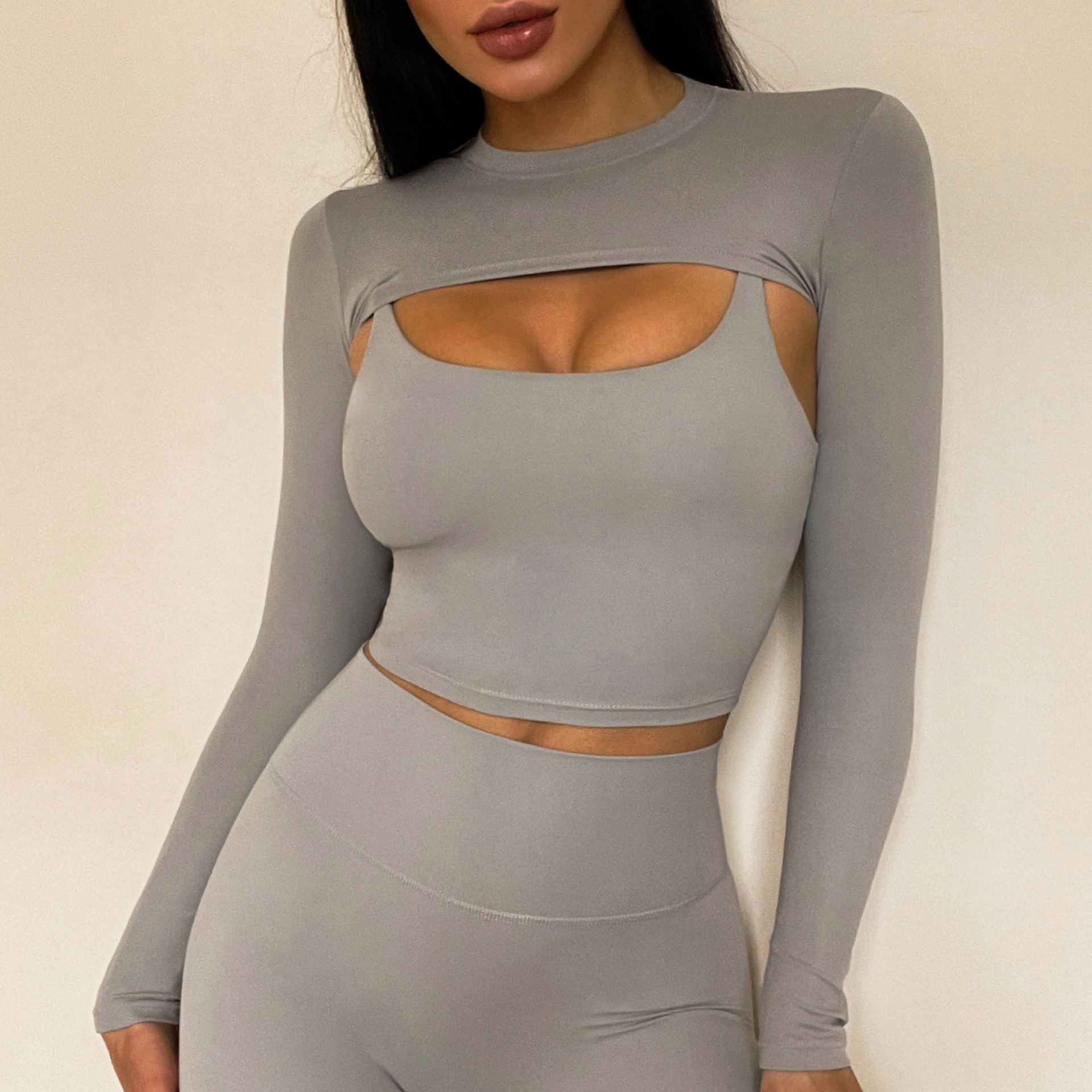 秋冬亚马逊文胸长袖短裤长裤瑜伽套装跑步运动短裤四件套瑜伽服女