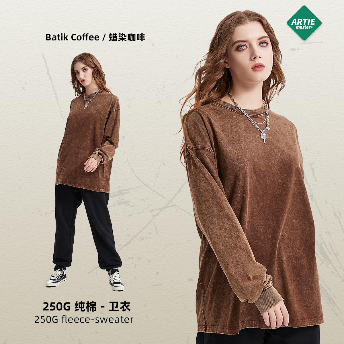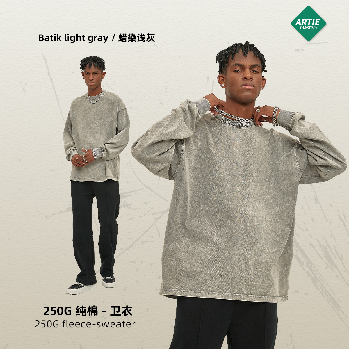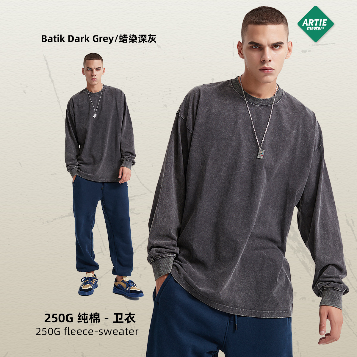 ARTIE男装丨潮牌新款蜡染250G长袖t恤 10色秋冬纯色水洗做旧男T恤