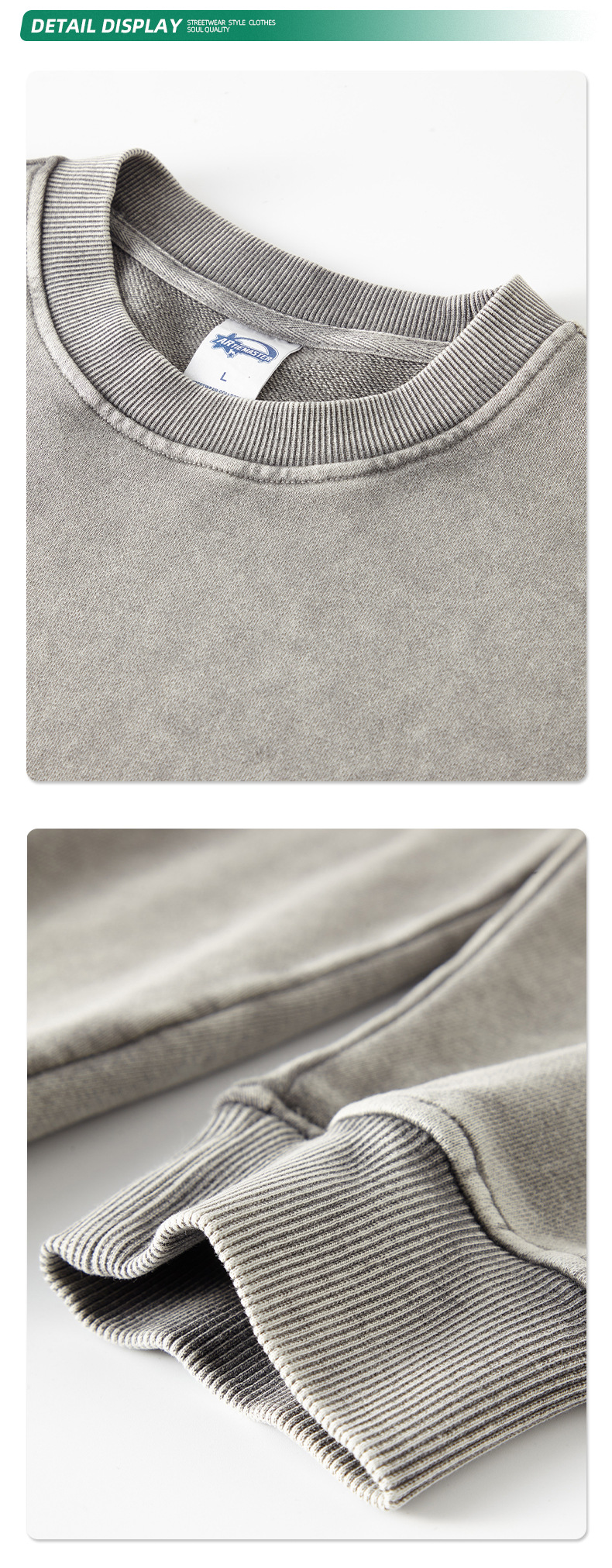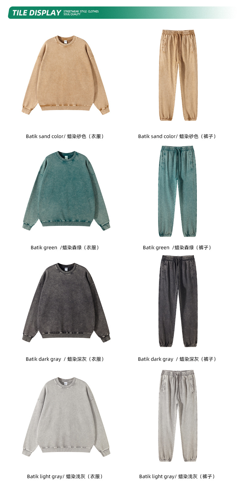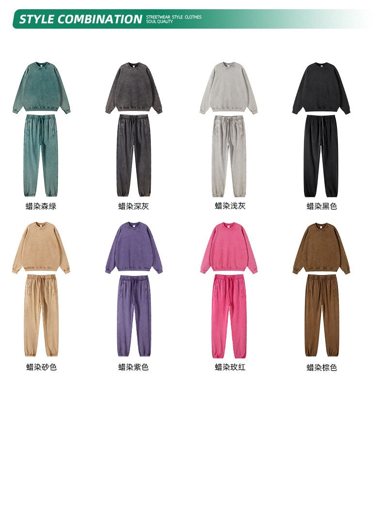 2024秋冬新品染色做旧泛白薄款圆领卫衣卫裤套装潮牌洗水卫衣裤