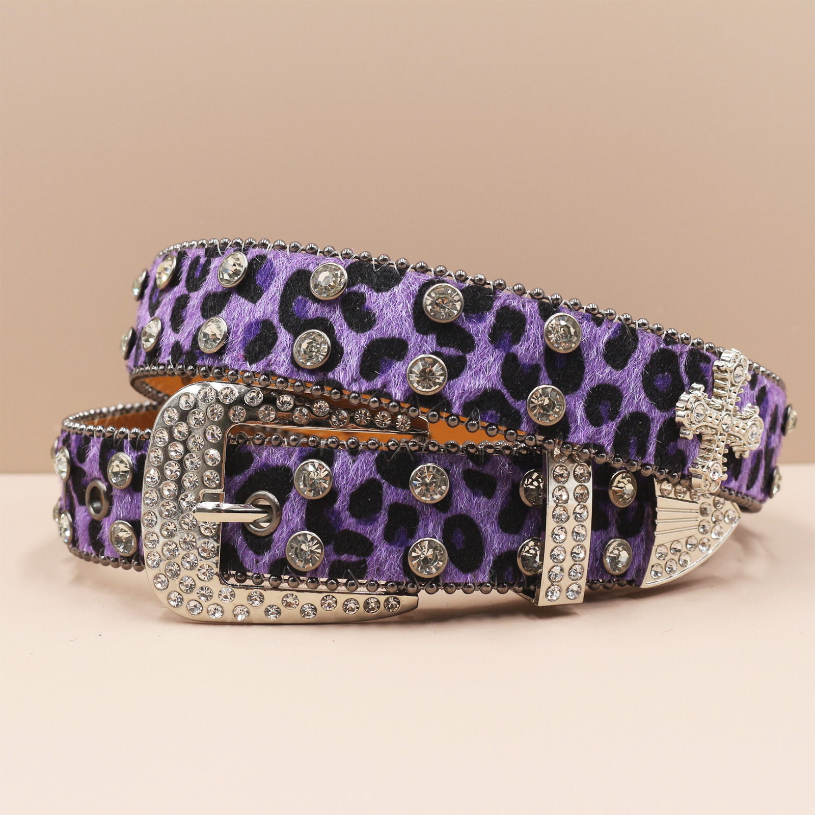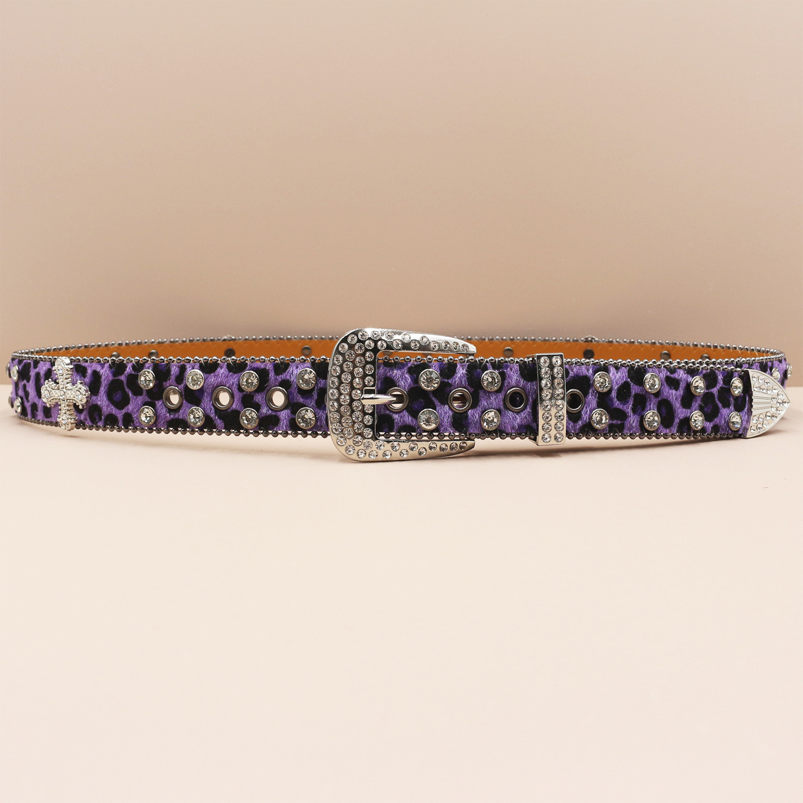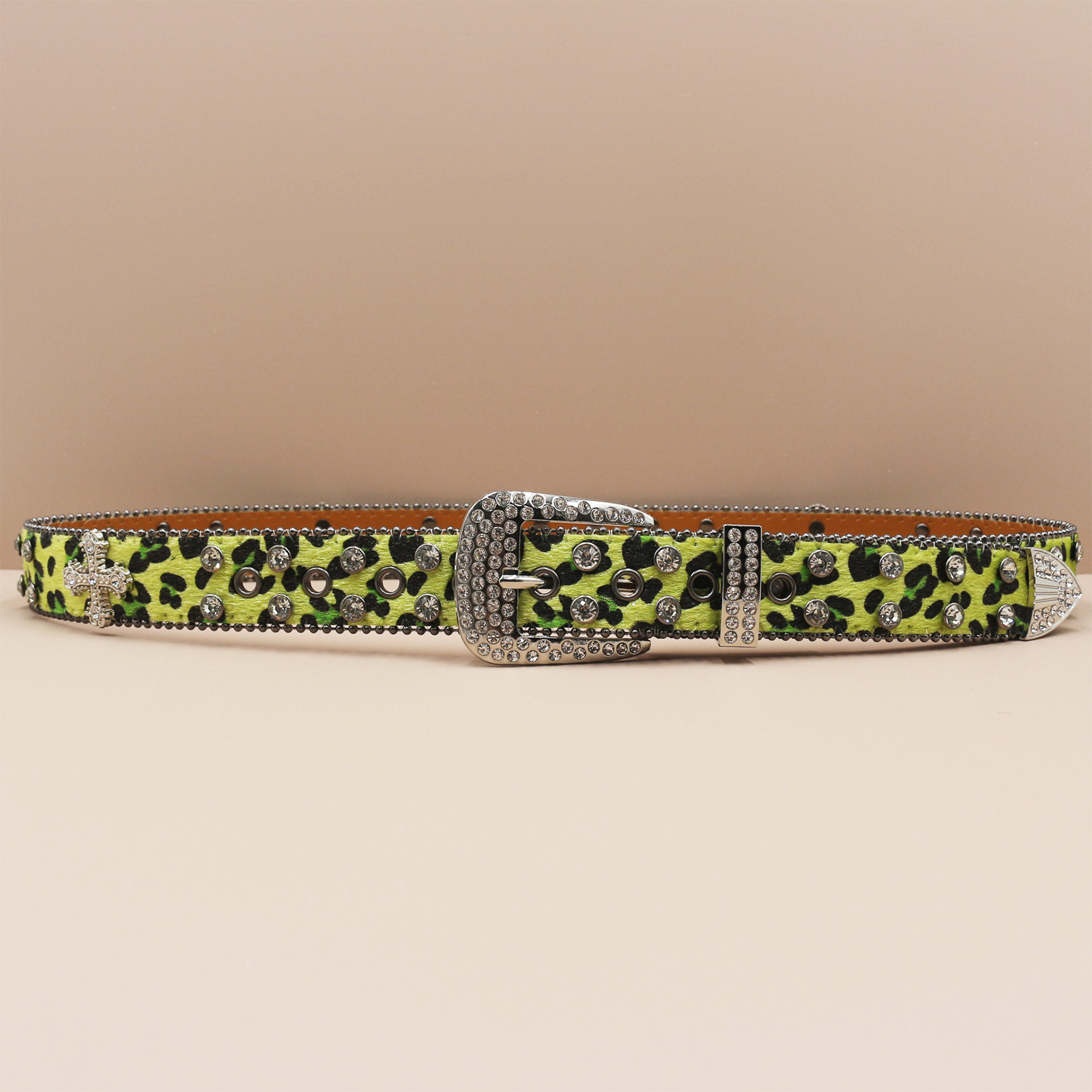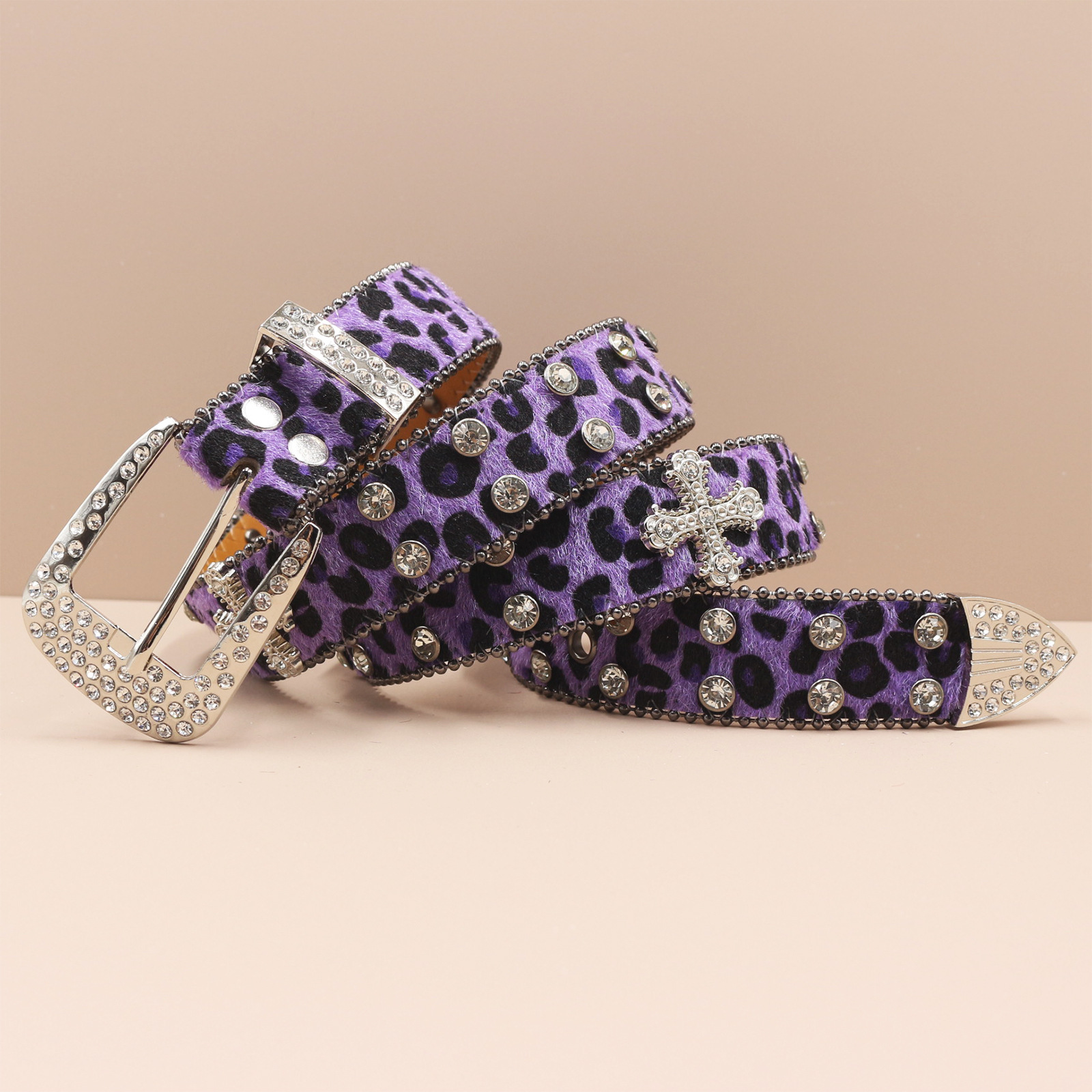 十字架时尚腰带Y2K豹纹西部水钻腰带个性牛仔女铆钉牛仔裤裤腰带