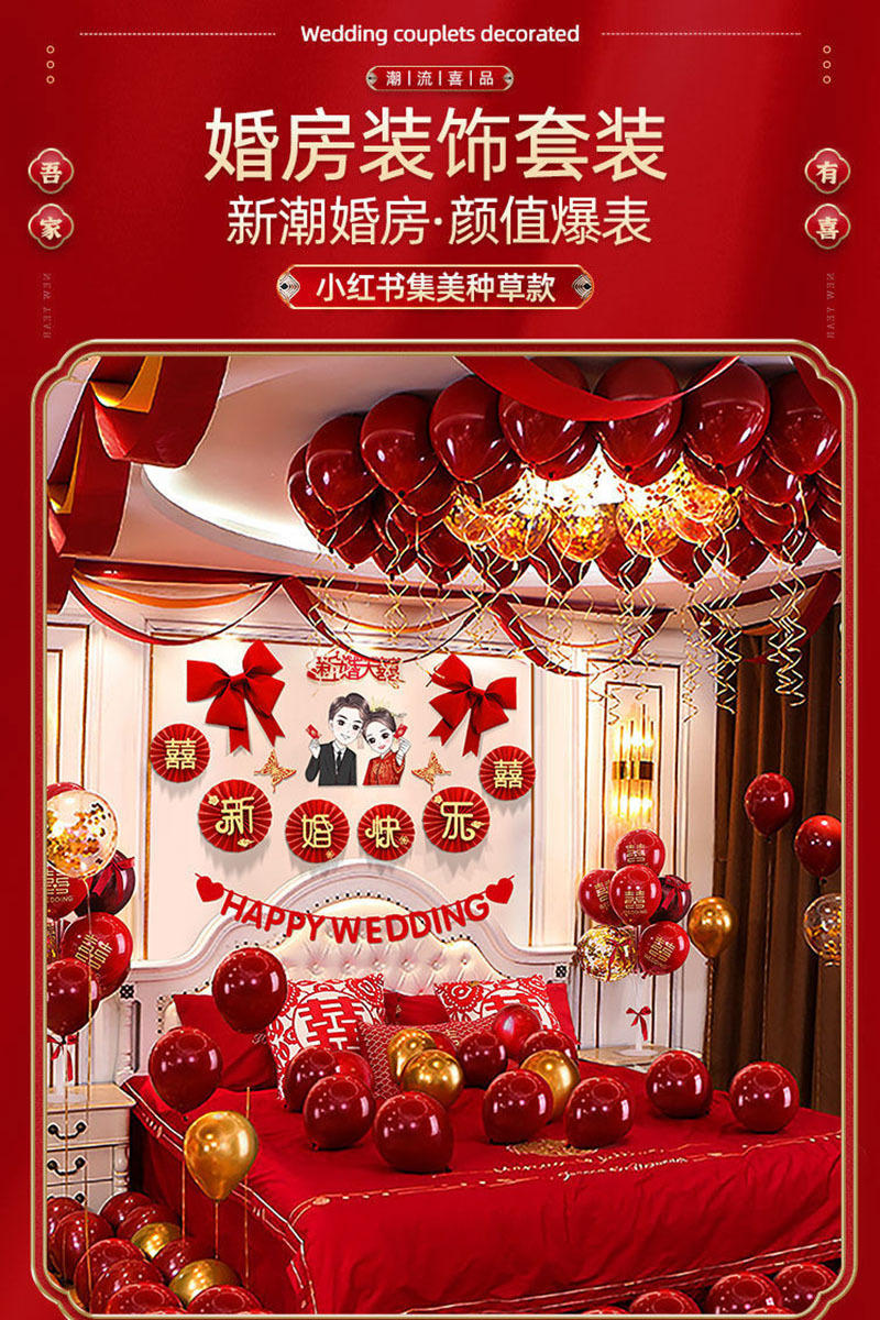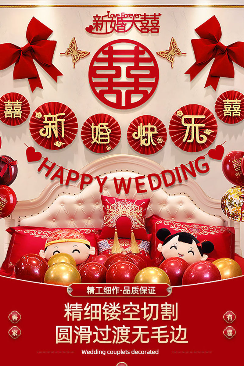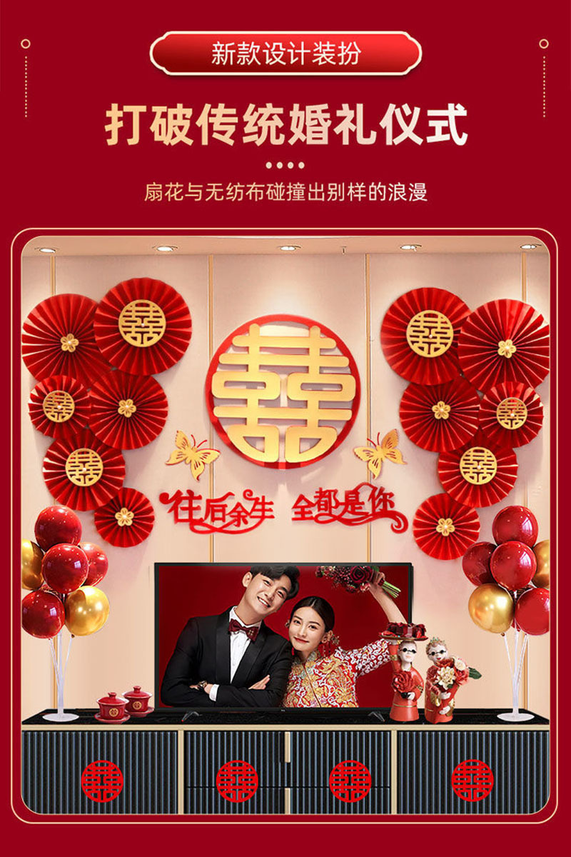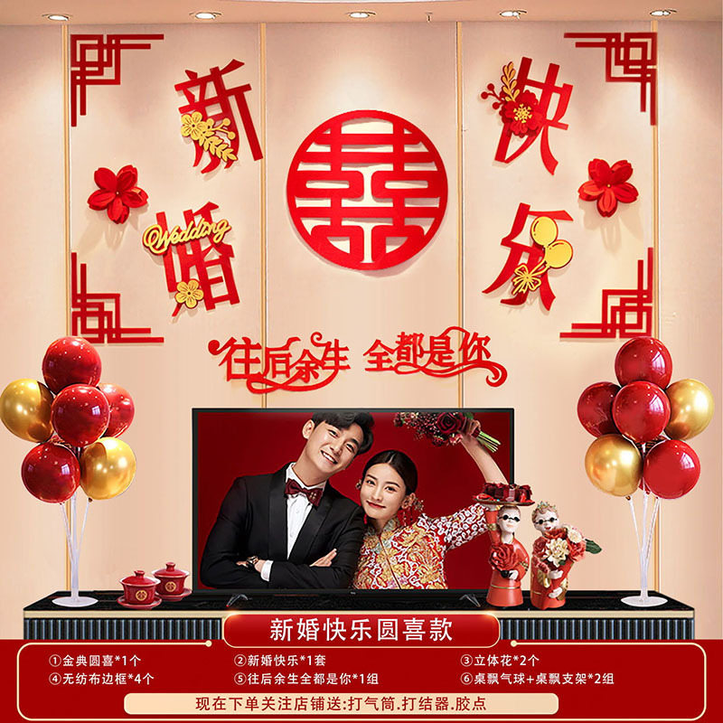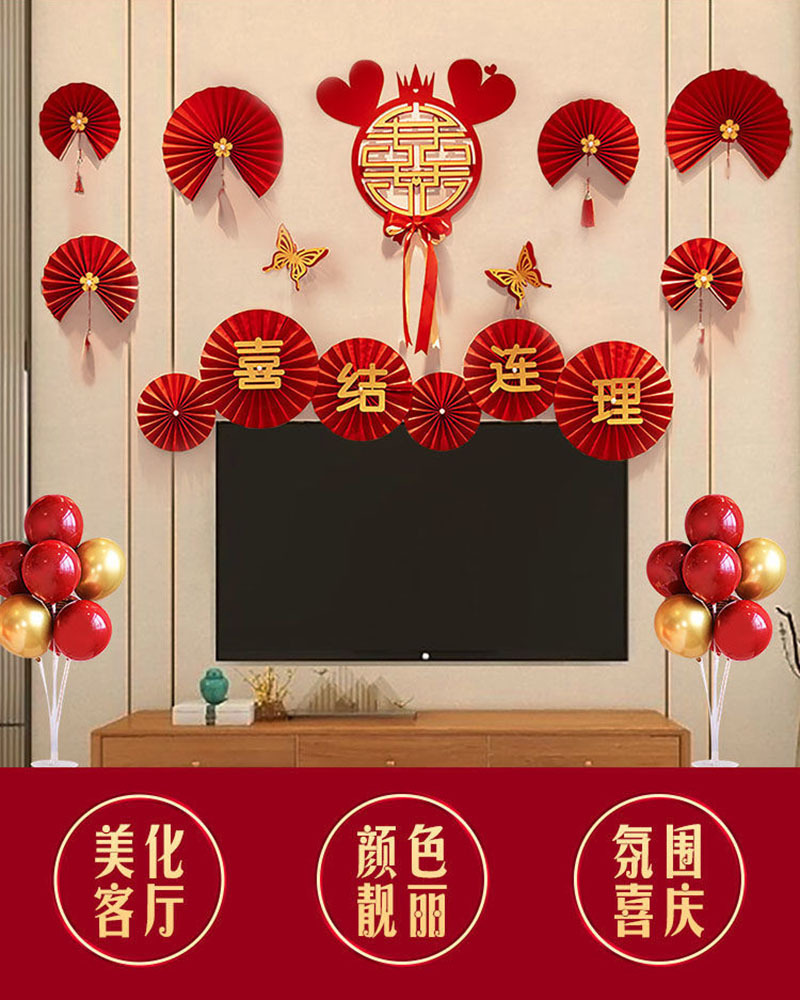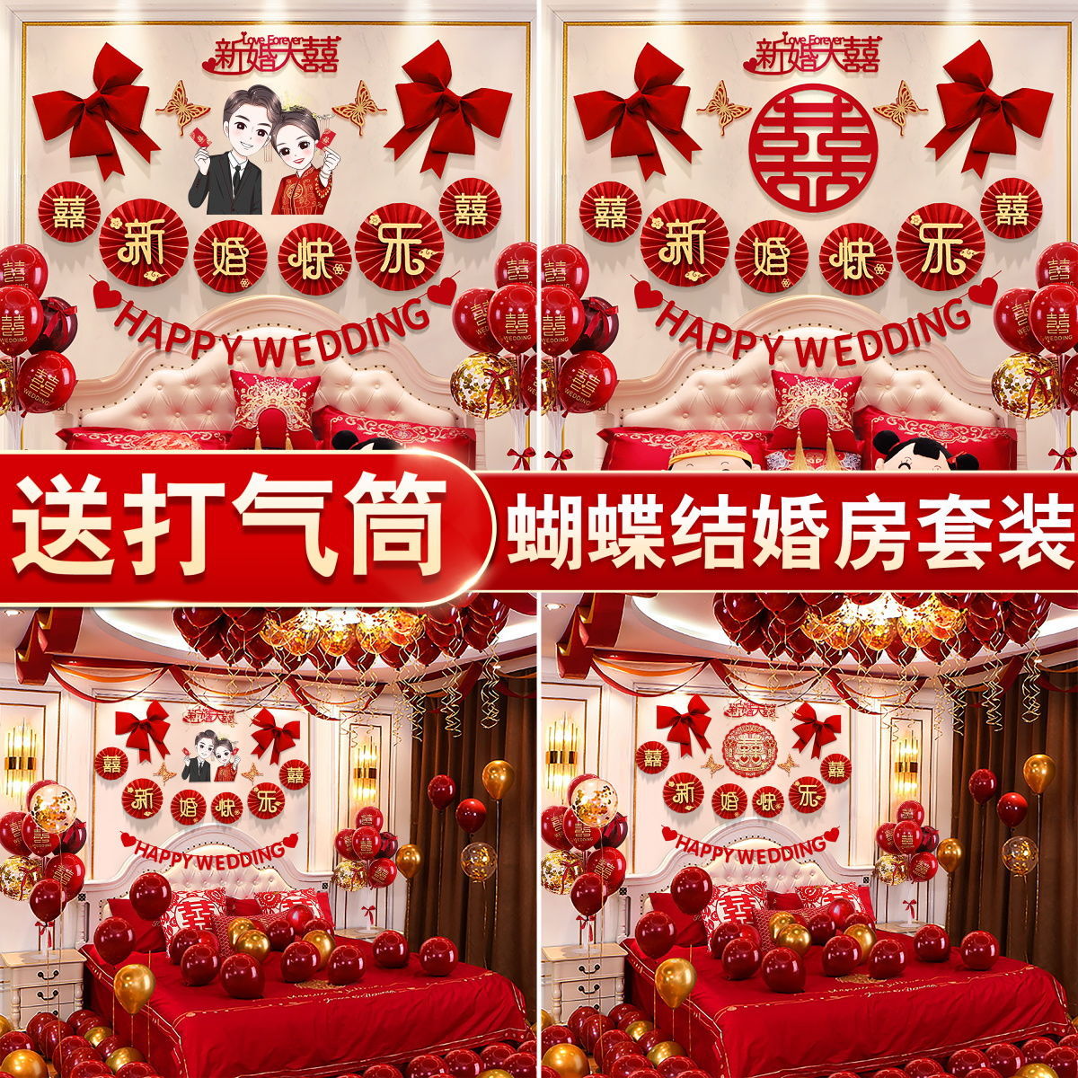 婚房布置蝴蝶结气球套装结婚房间卧室客厅电视背景墙拉花婚庆装饰