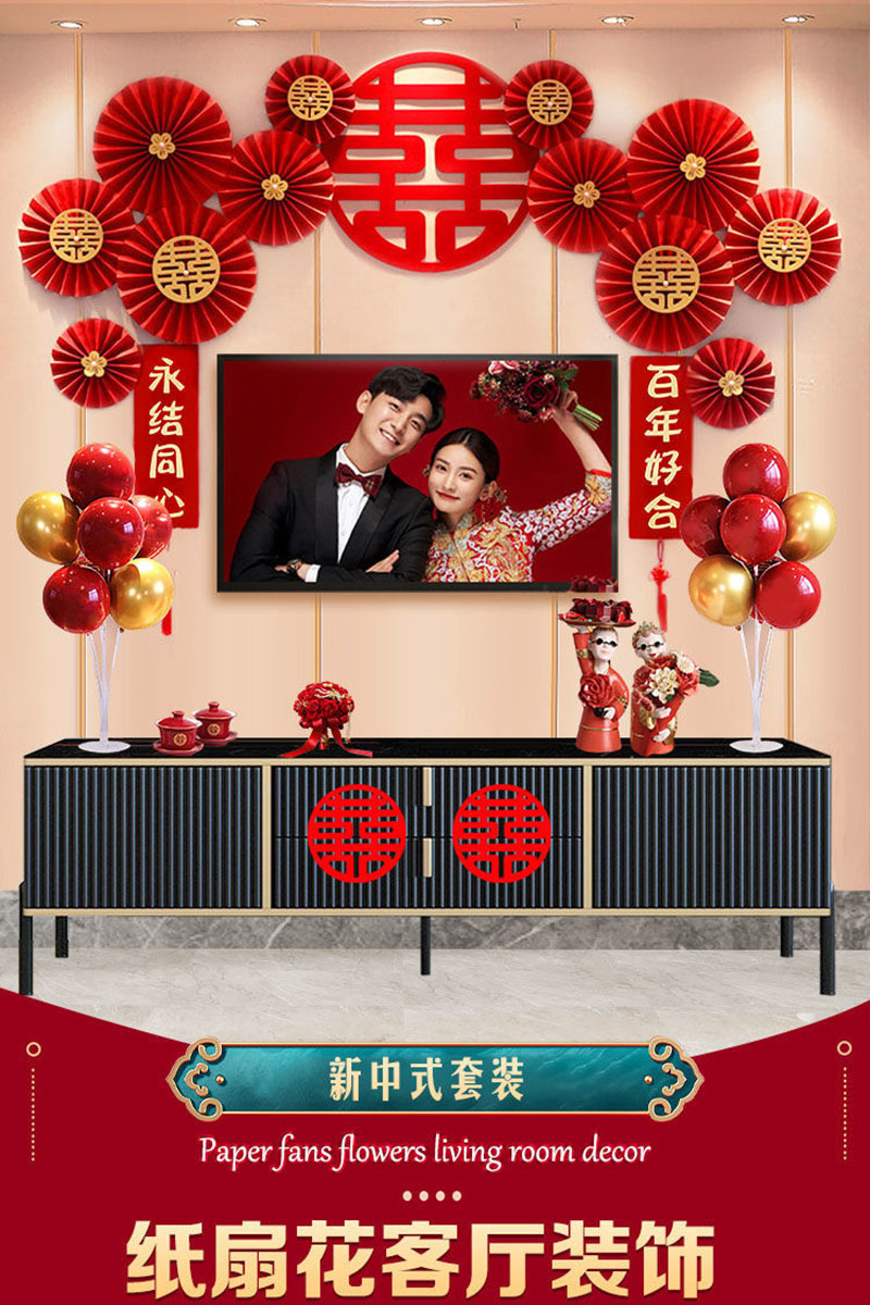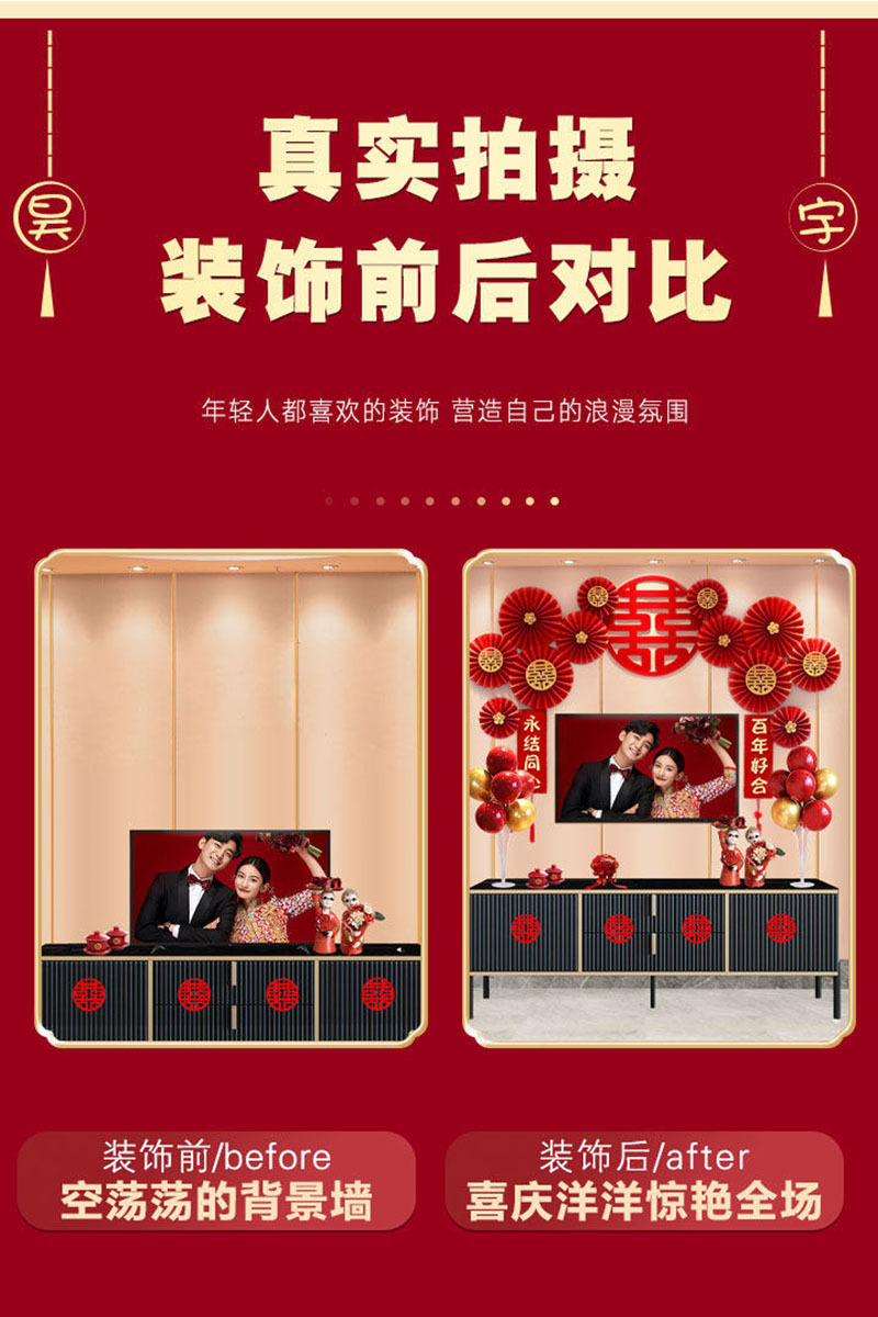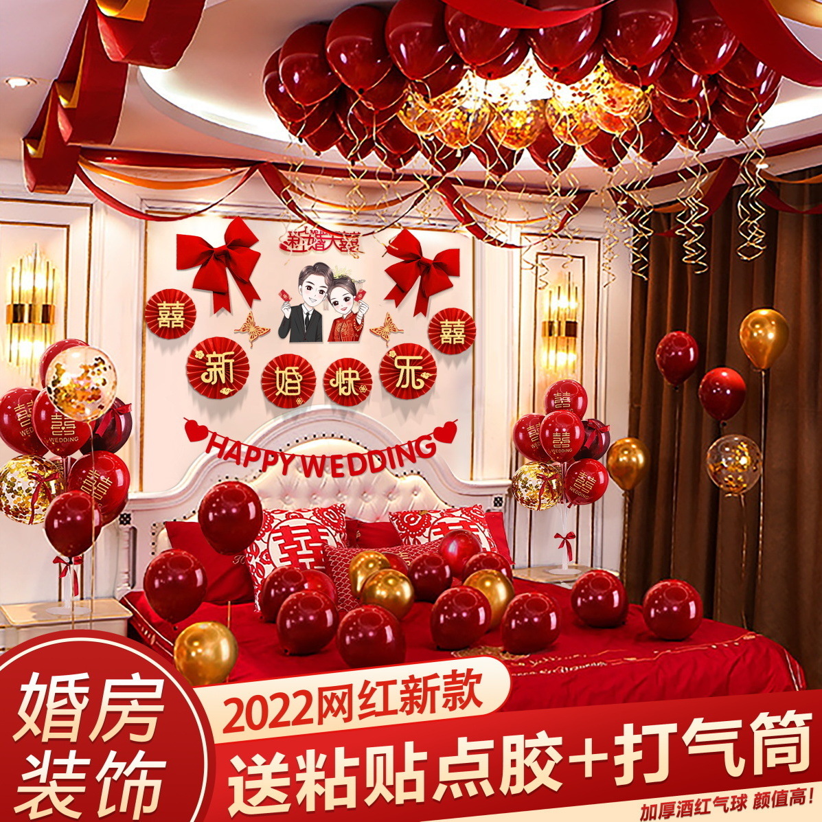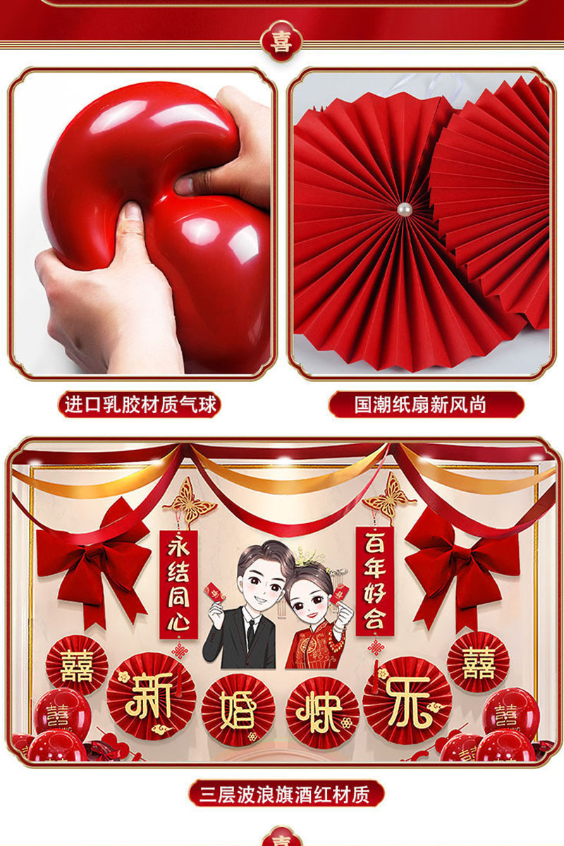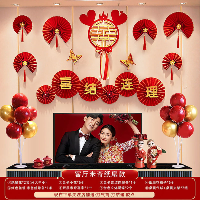 婚房布置蝴蝶结气球套装结婚房间卧室客厅电视背景墙拉花婚庆装饰