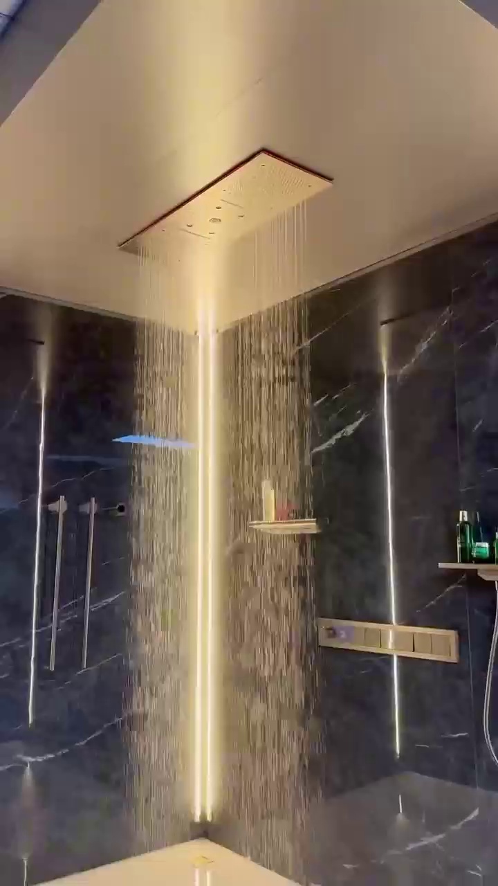 暗装花洒淋浴套装嵌入隐藏吊顶天幕多功能入墙式预埋数显全铜恒温