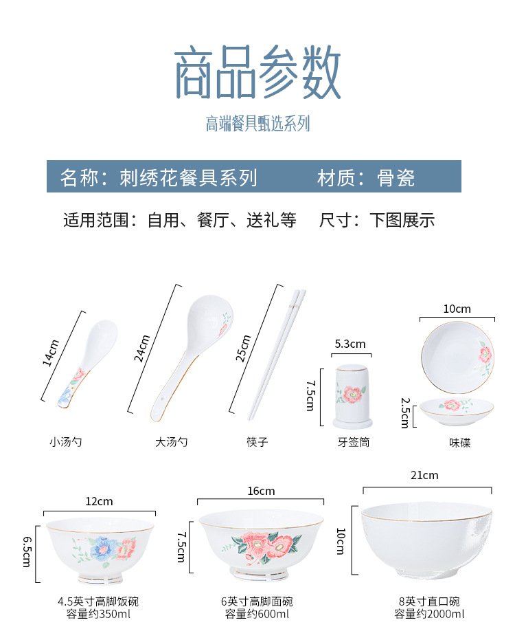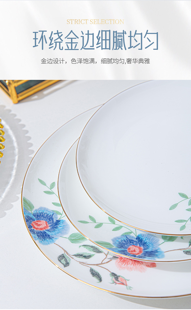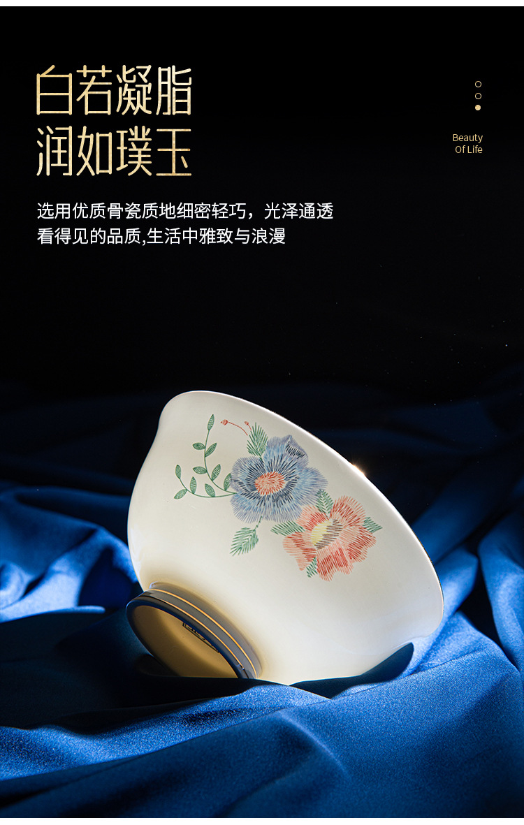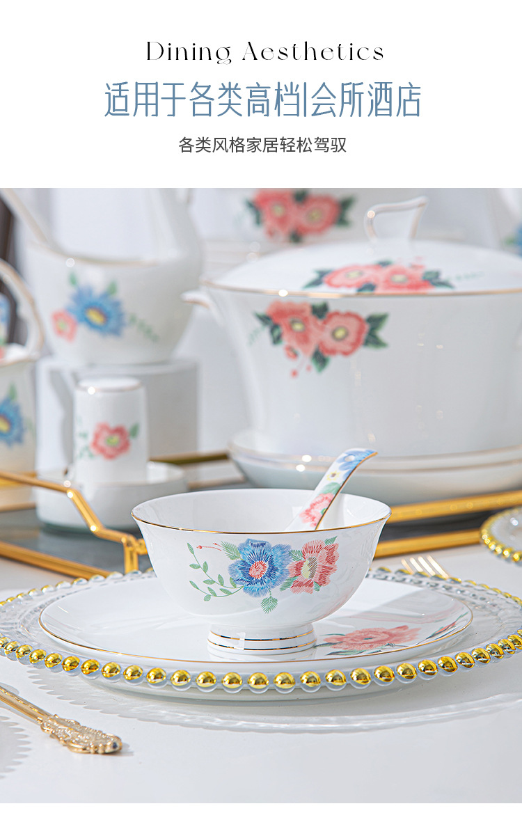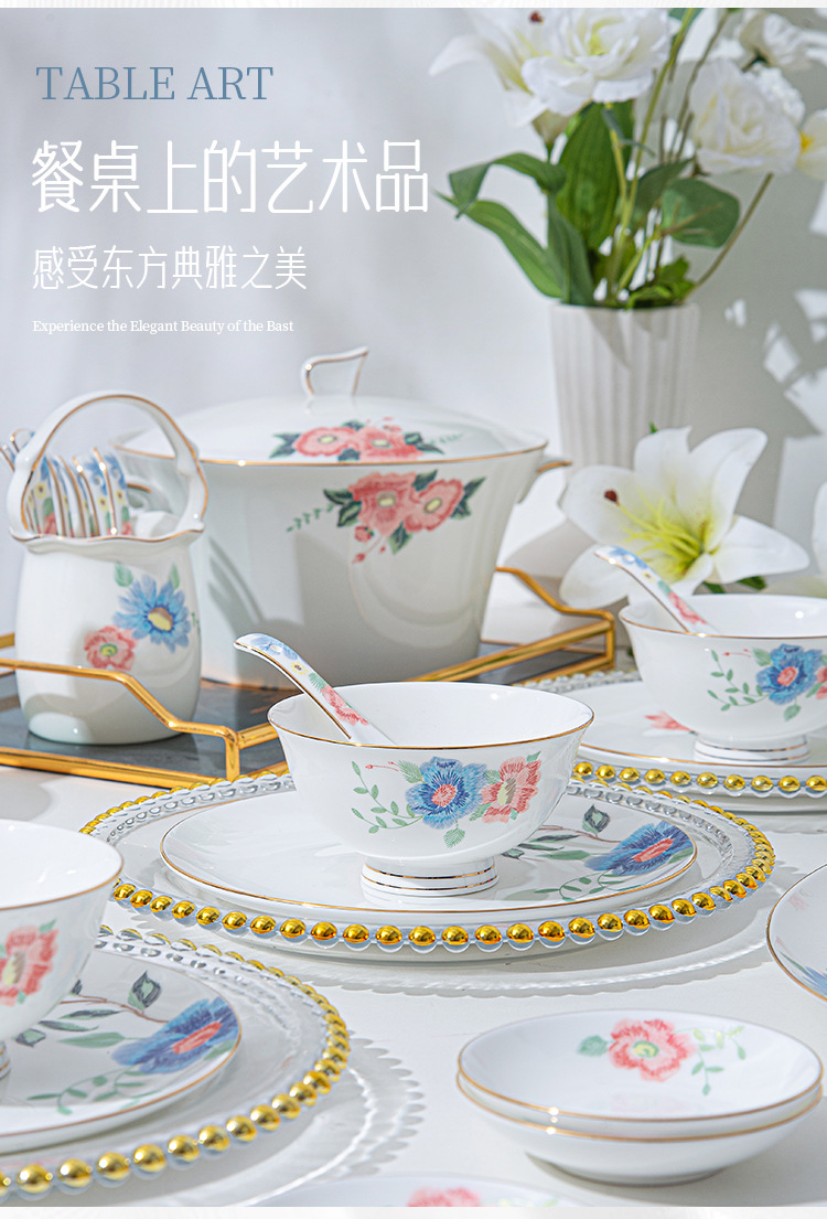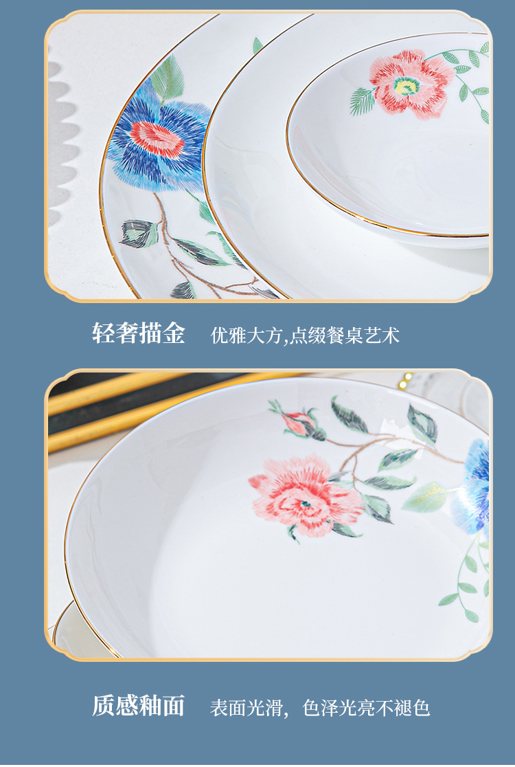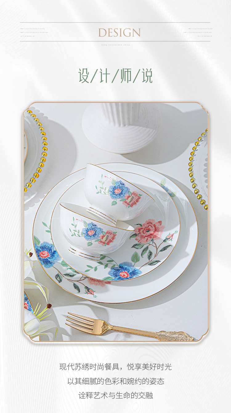 餐具套装乔迁送礼礼物陶瓷碗碟盘高档骨瓷家用刺绣新中式整套碗盘