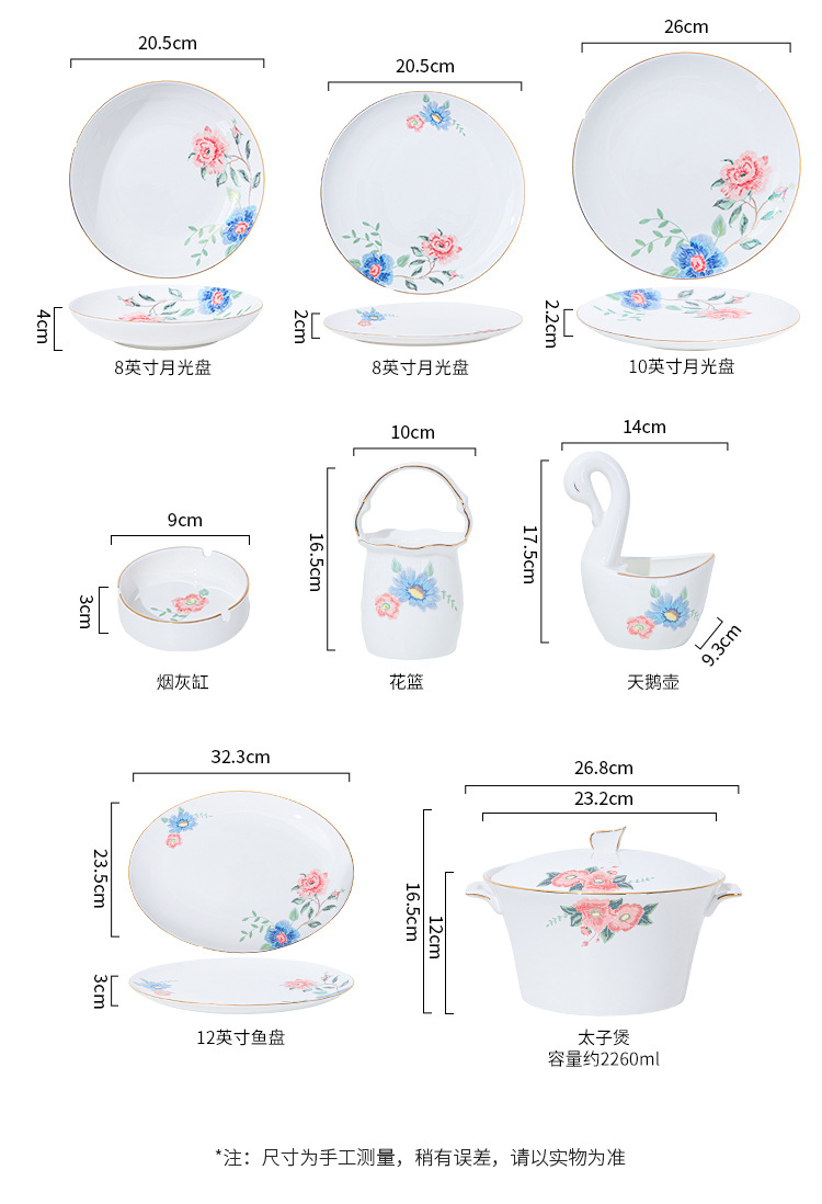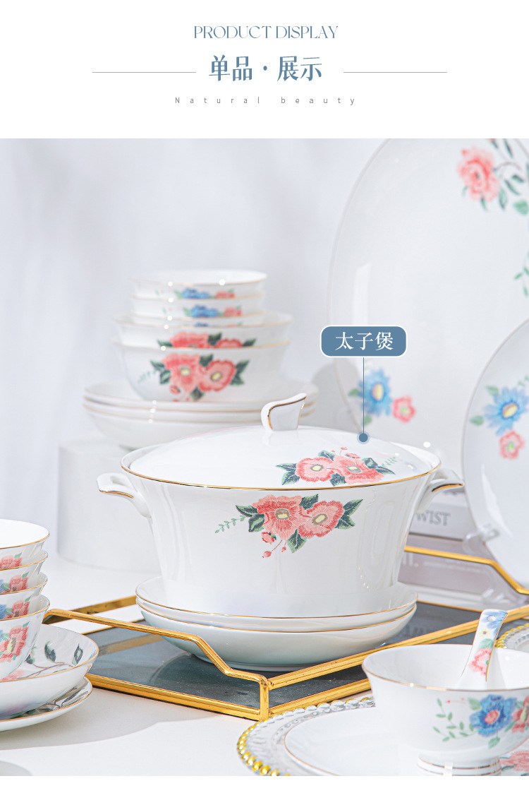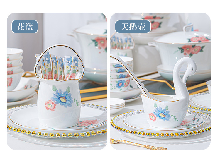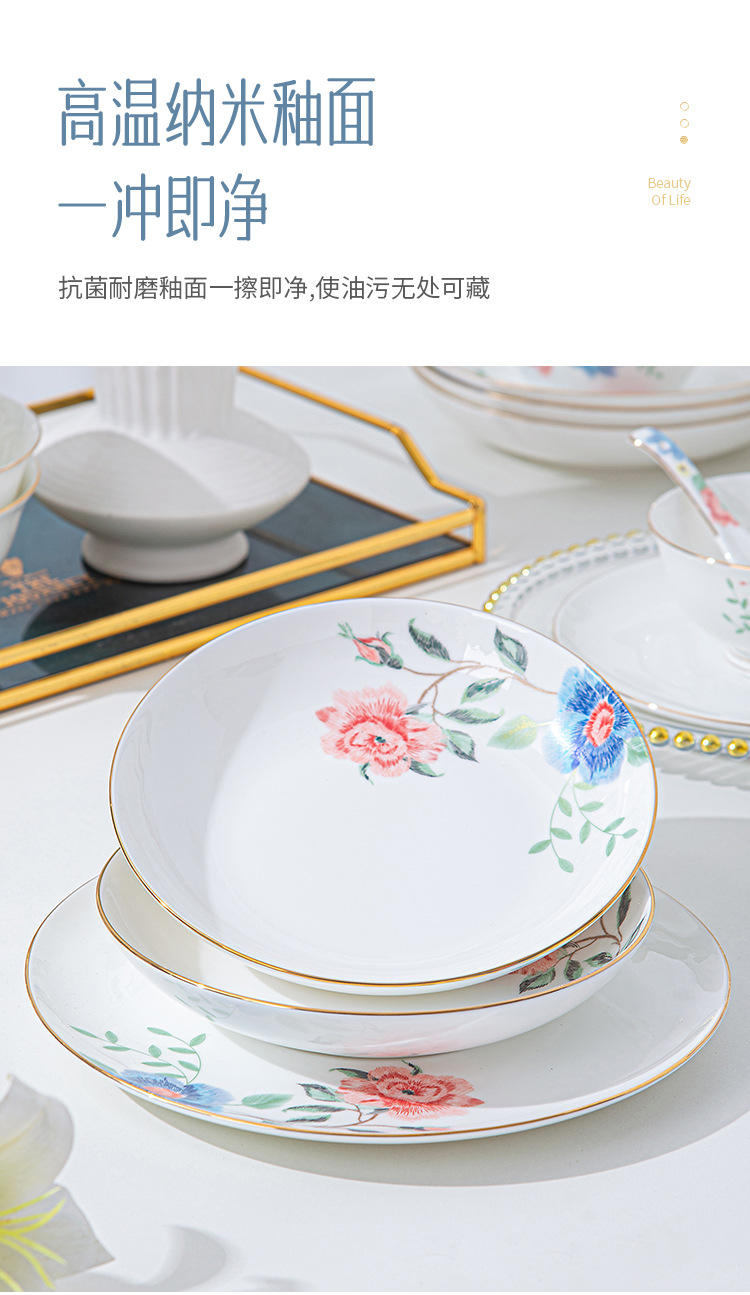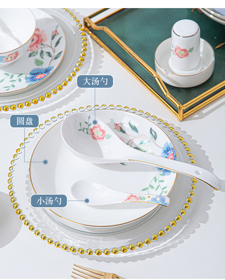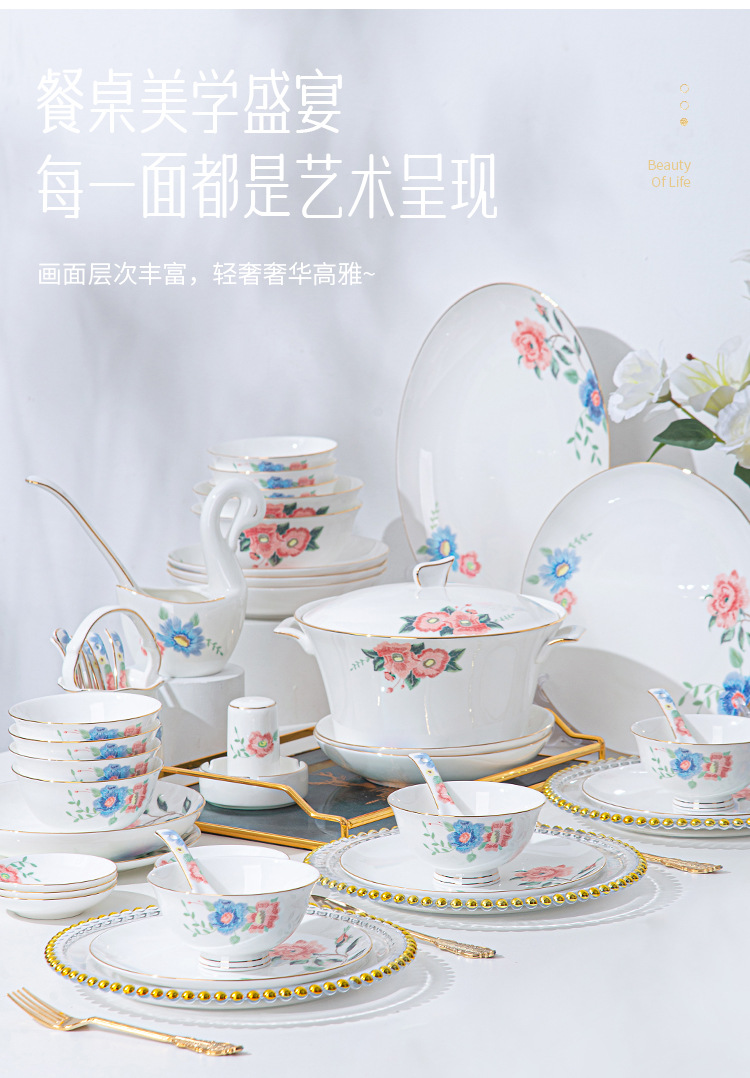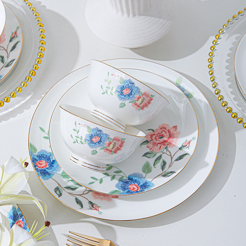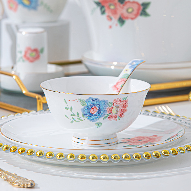 餐具套装乔迁送礼礼物陶瓷碗碟盘高档骨瓷家用刺绣新中式整套碗盘