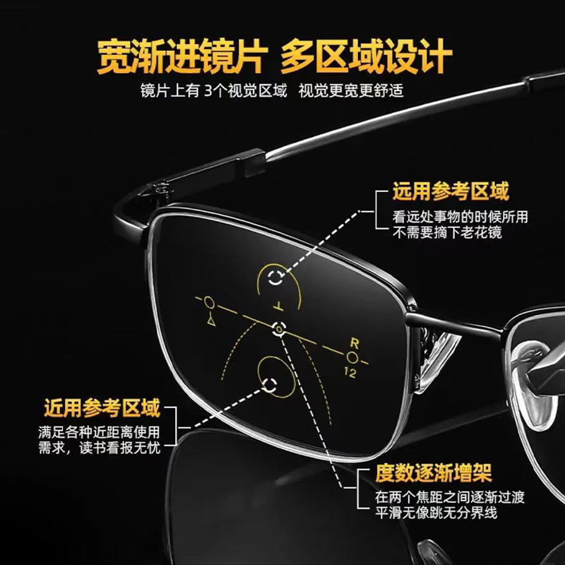 厂家批发变色远近两用男老花镜渐进多焦点智能变焦防蓝光老花眼镜
