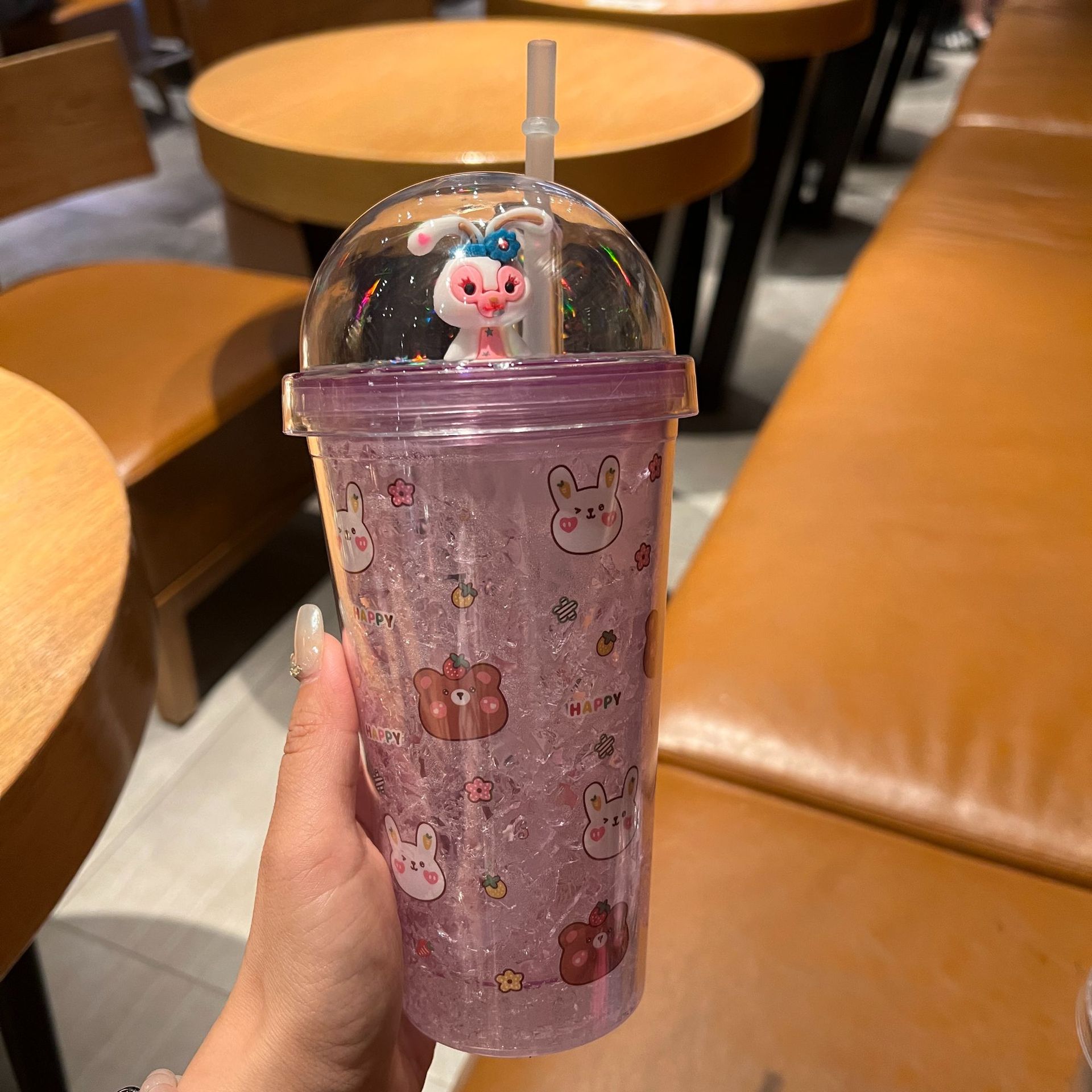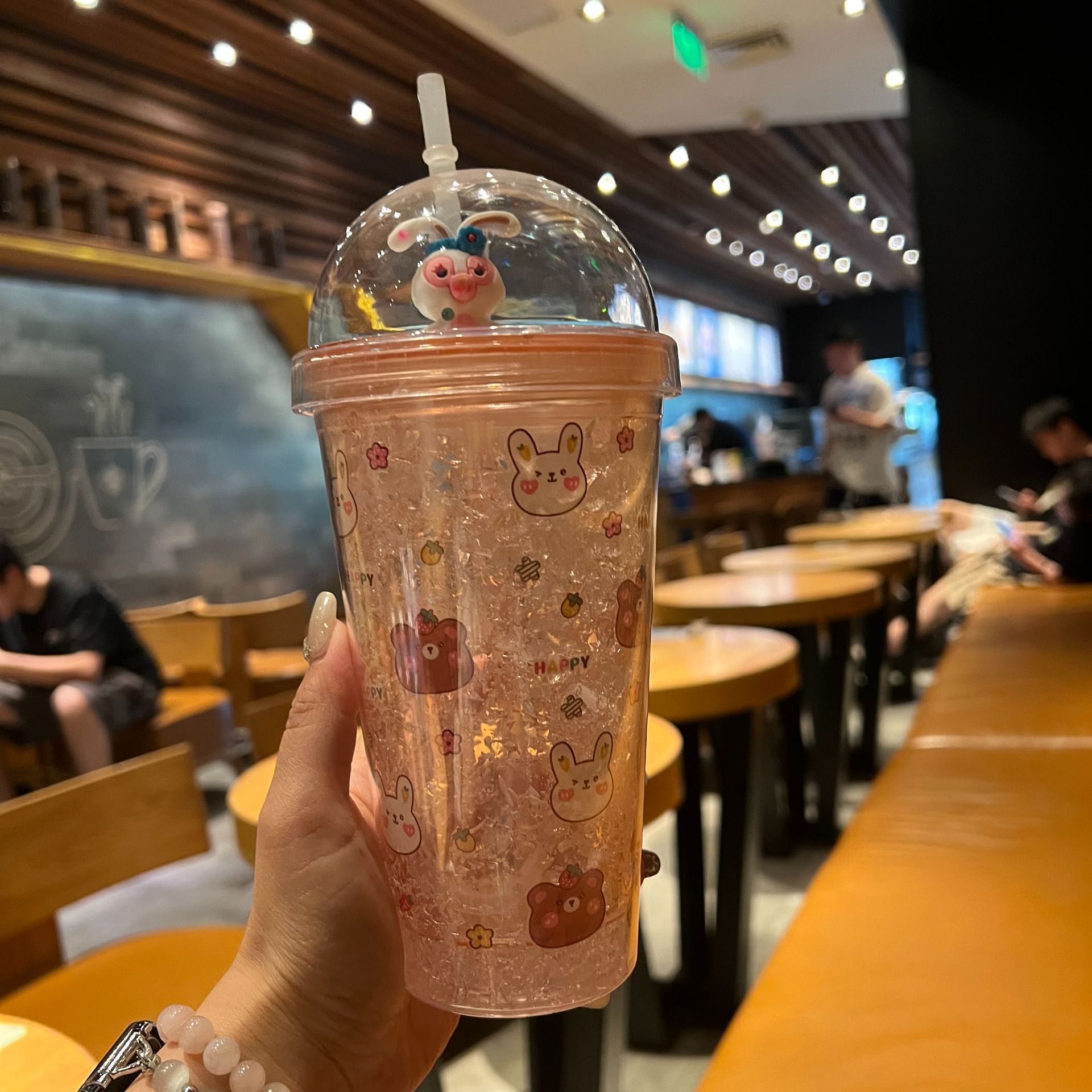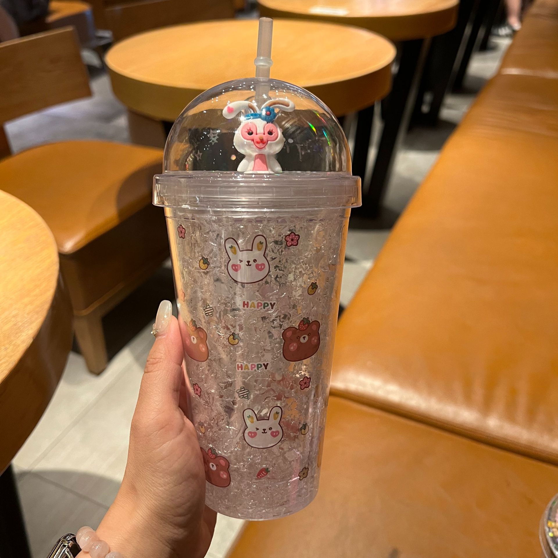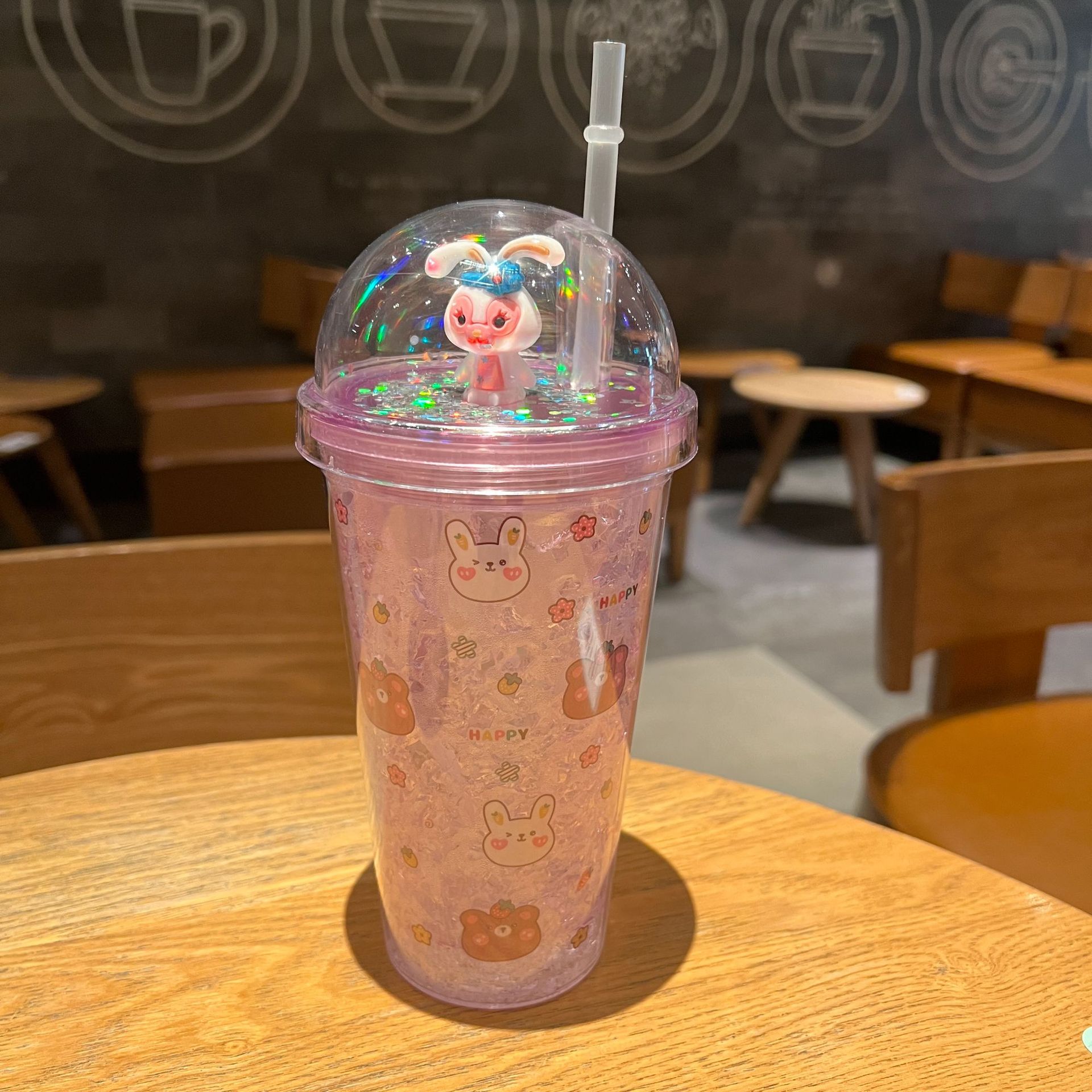 跨境新款高颜值夏季网红萌熊卡通兔子塑料水杯吸管水杯双层碎冰杯
