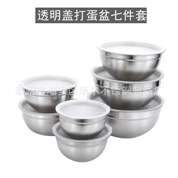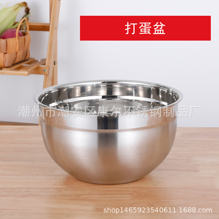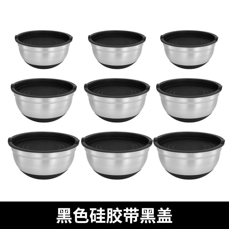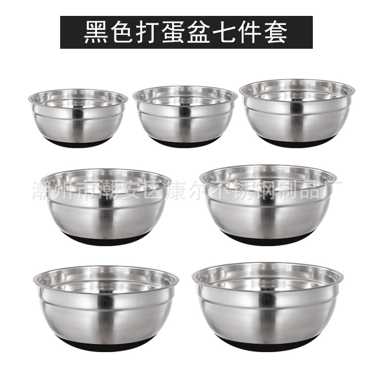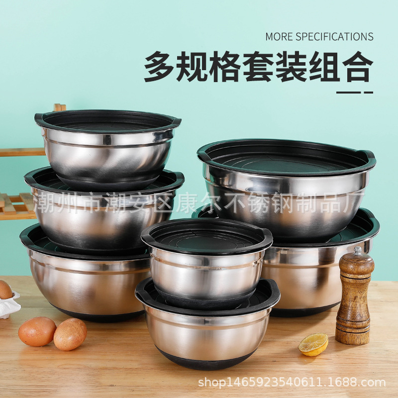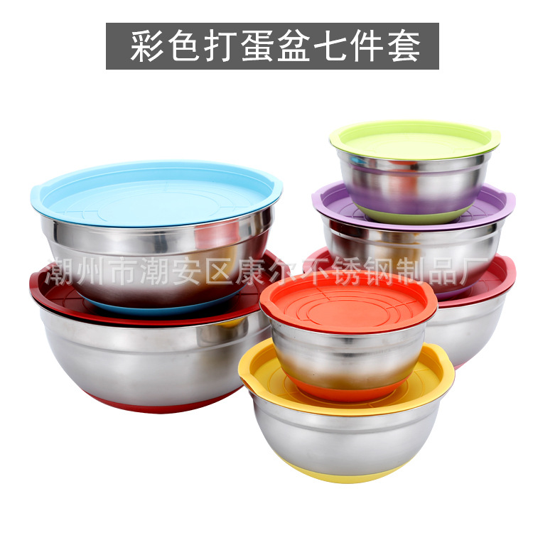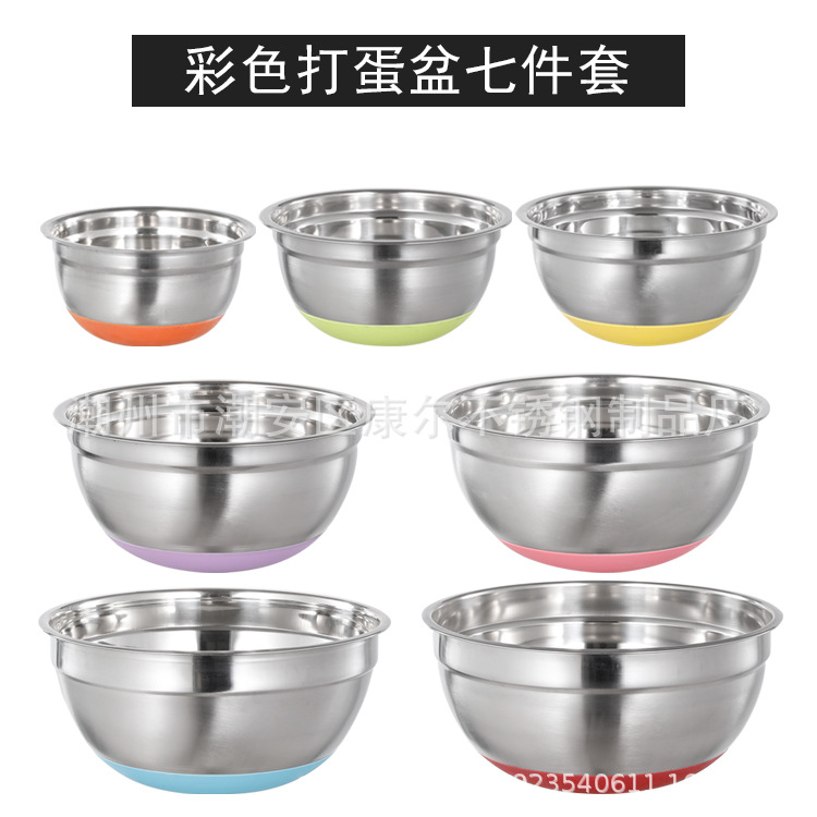 厂家直销不锈钢加厚打蛋盆带彩色硅胶底防滑手柄刻度沙拉盆碗烘培