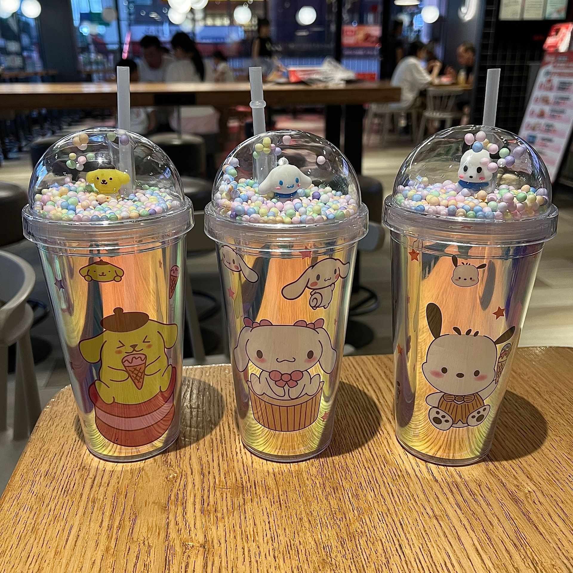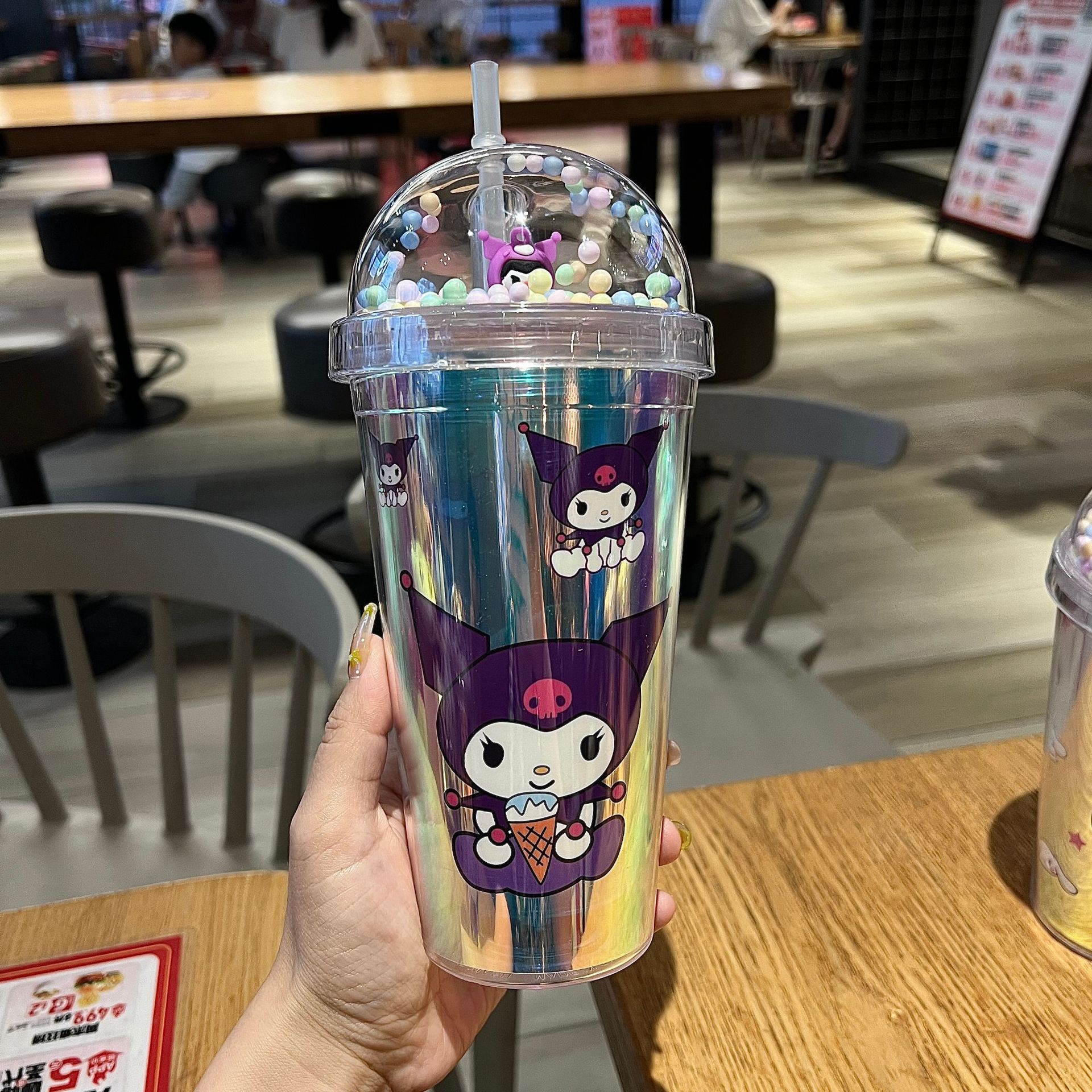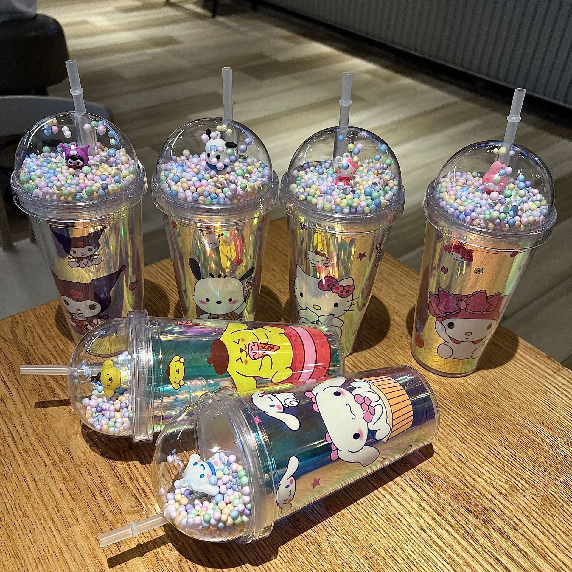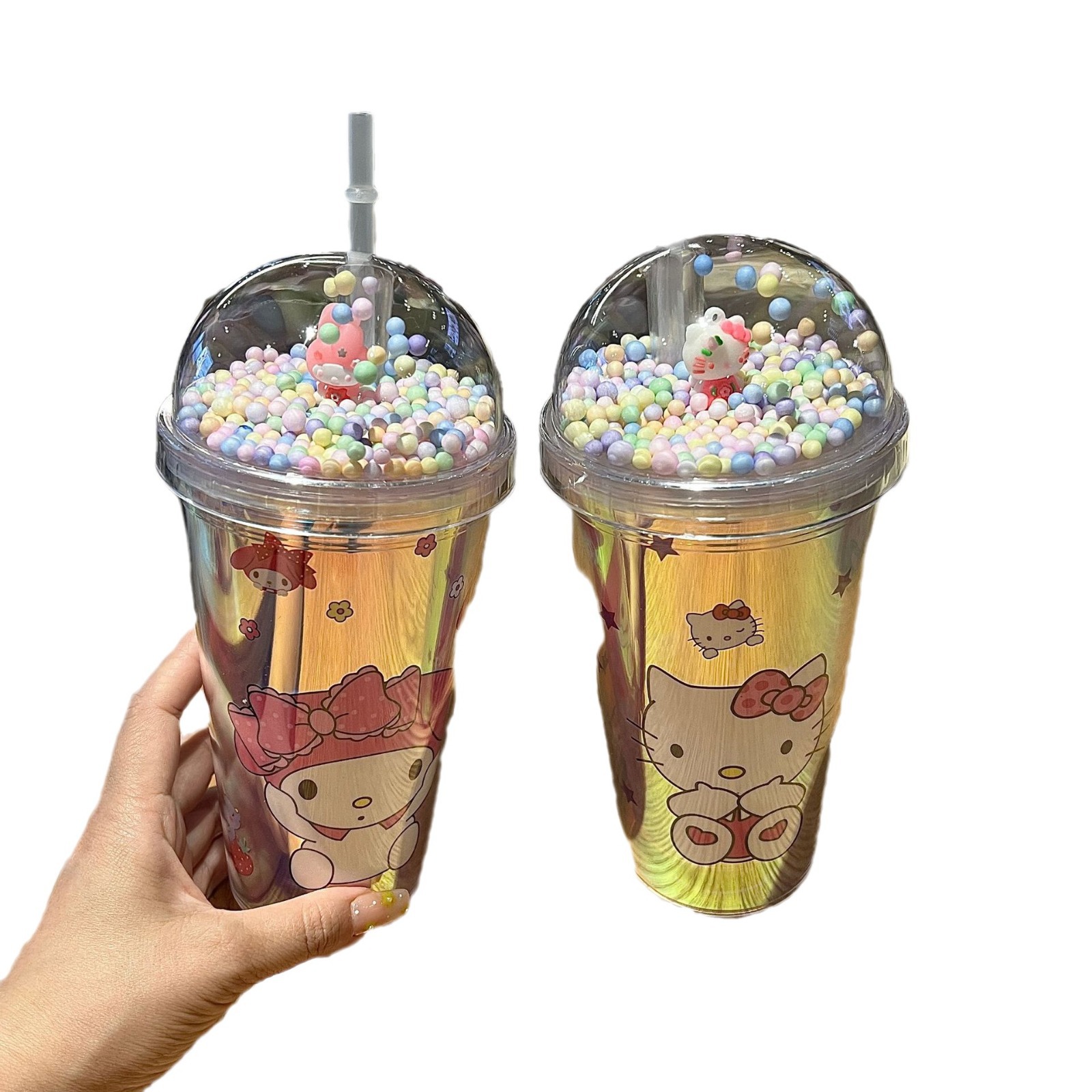 塑料吸管冰杯酷洛米卡通塑料水杯双层杯亮片碎冰杯跨境新款高颜值