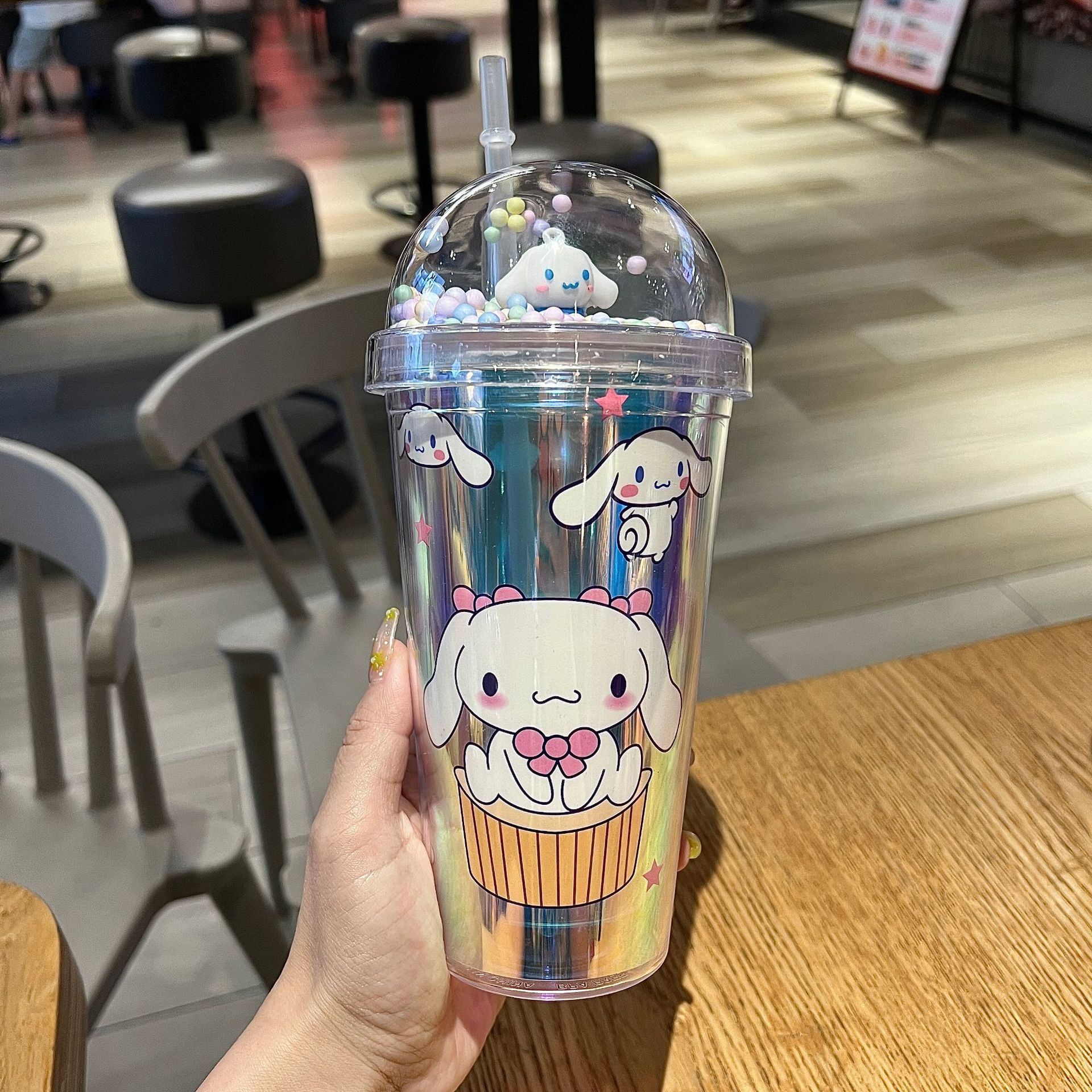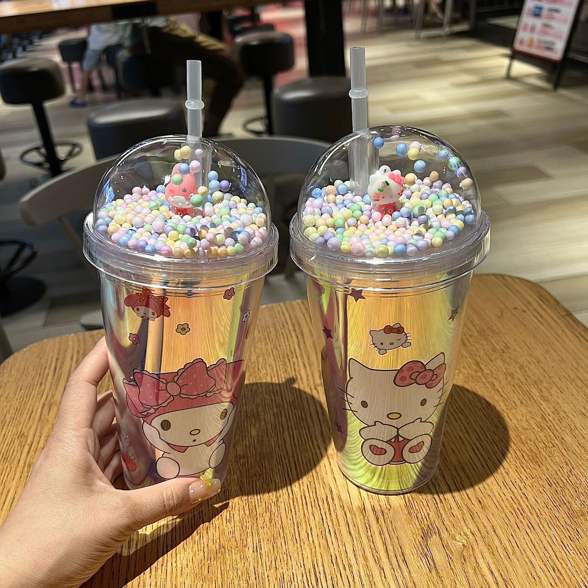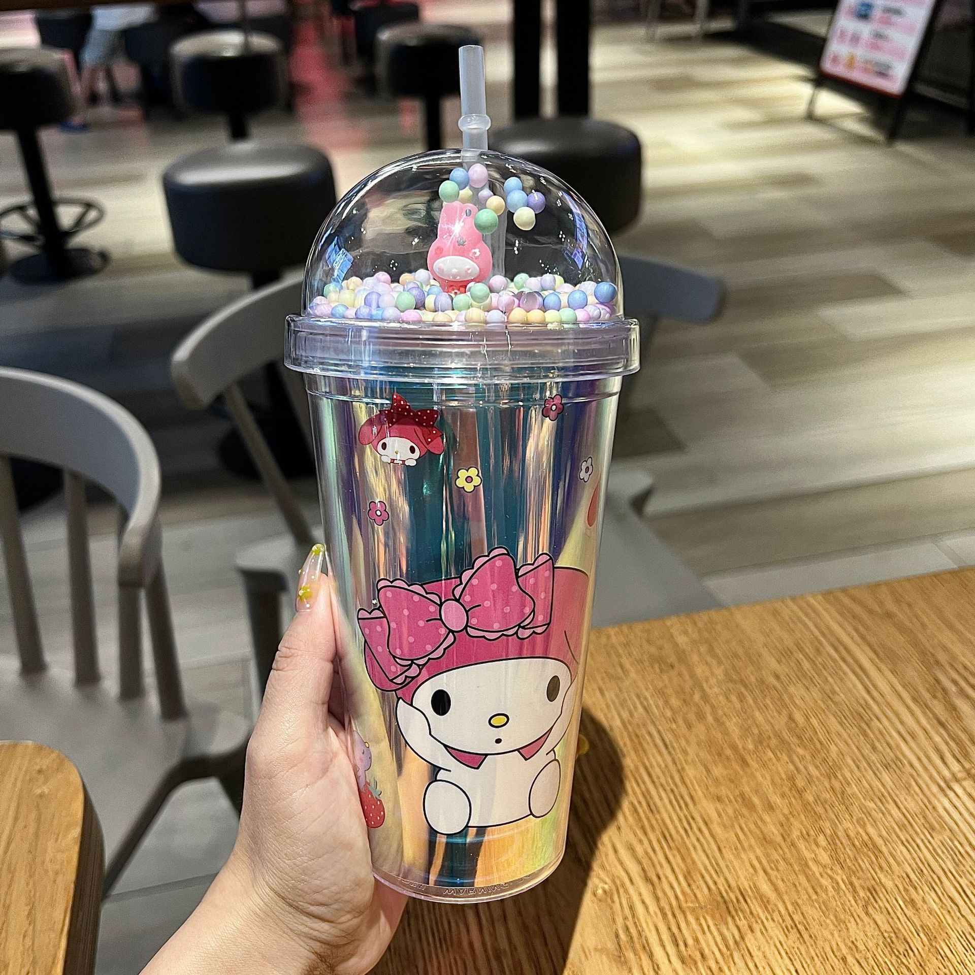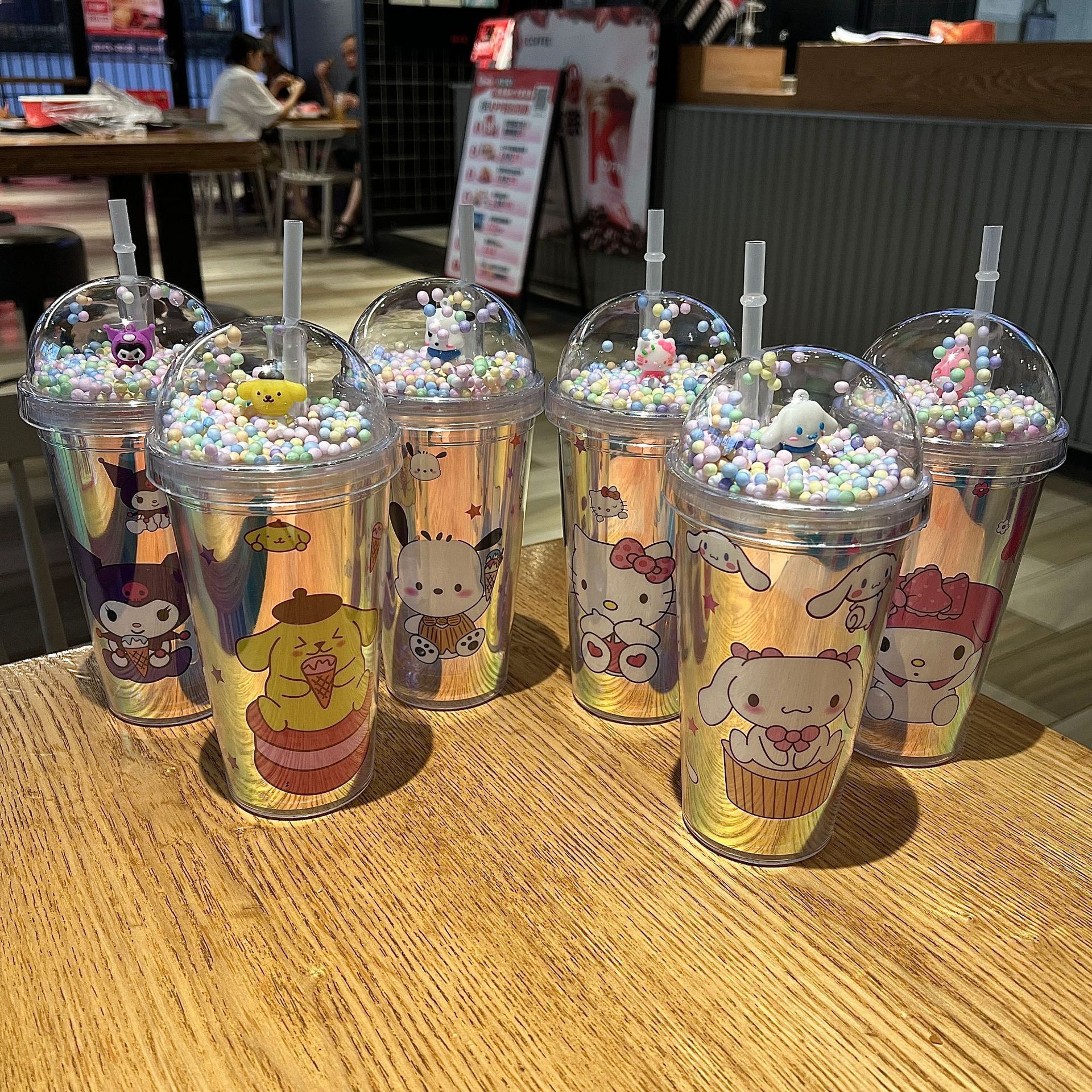 塑料吸管冰杯酷洛米卡通塑料水杯双层杯亮片碎冰杯跨境新款高颜值