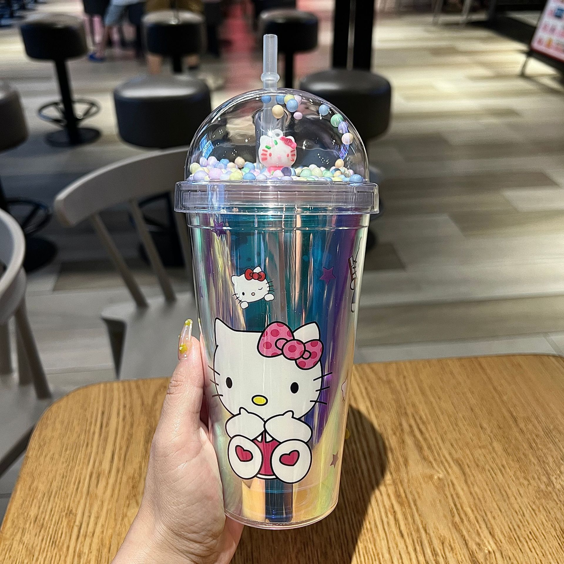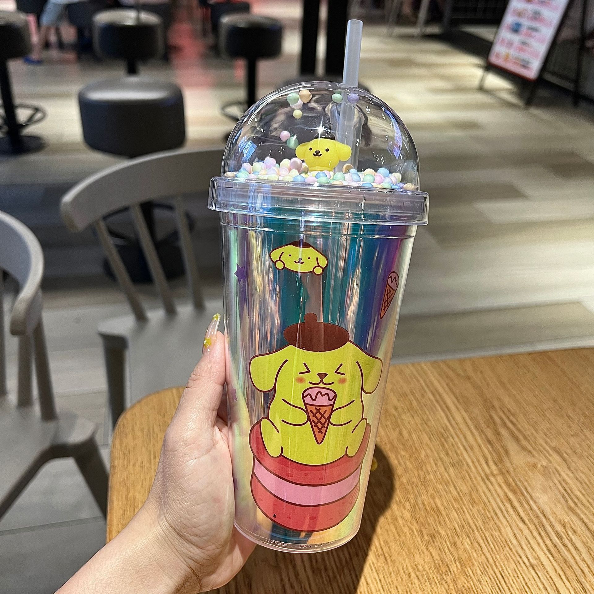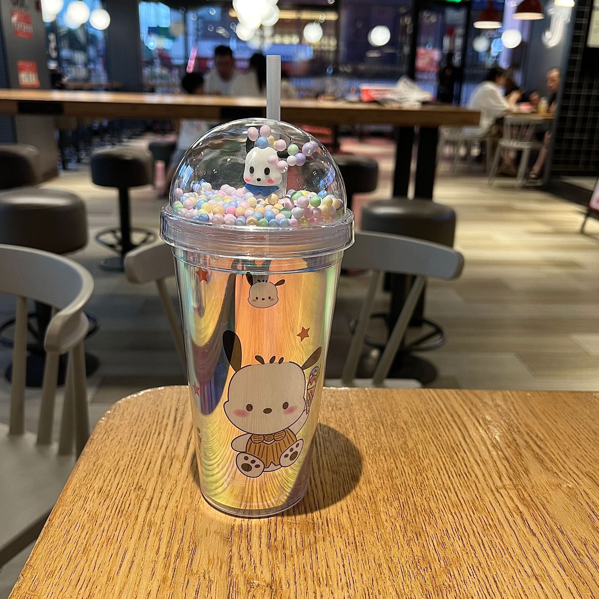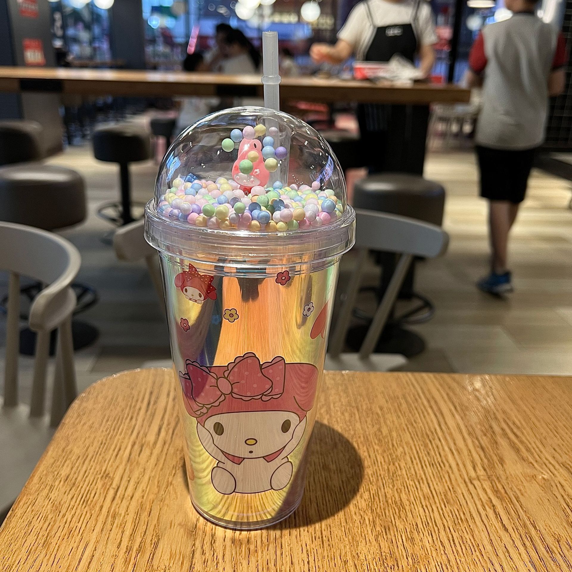 塑料吸管冰杯酷洛米卡通塑料水杯双层杯亮片碎冰杯跨境新款高颜值