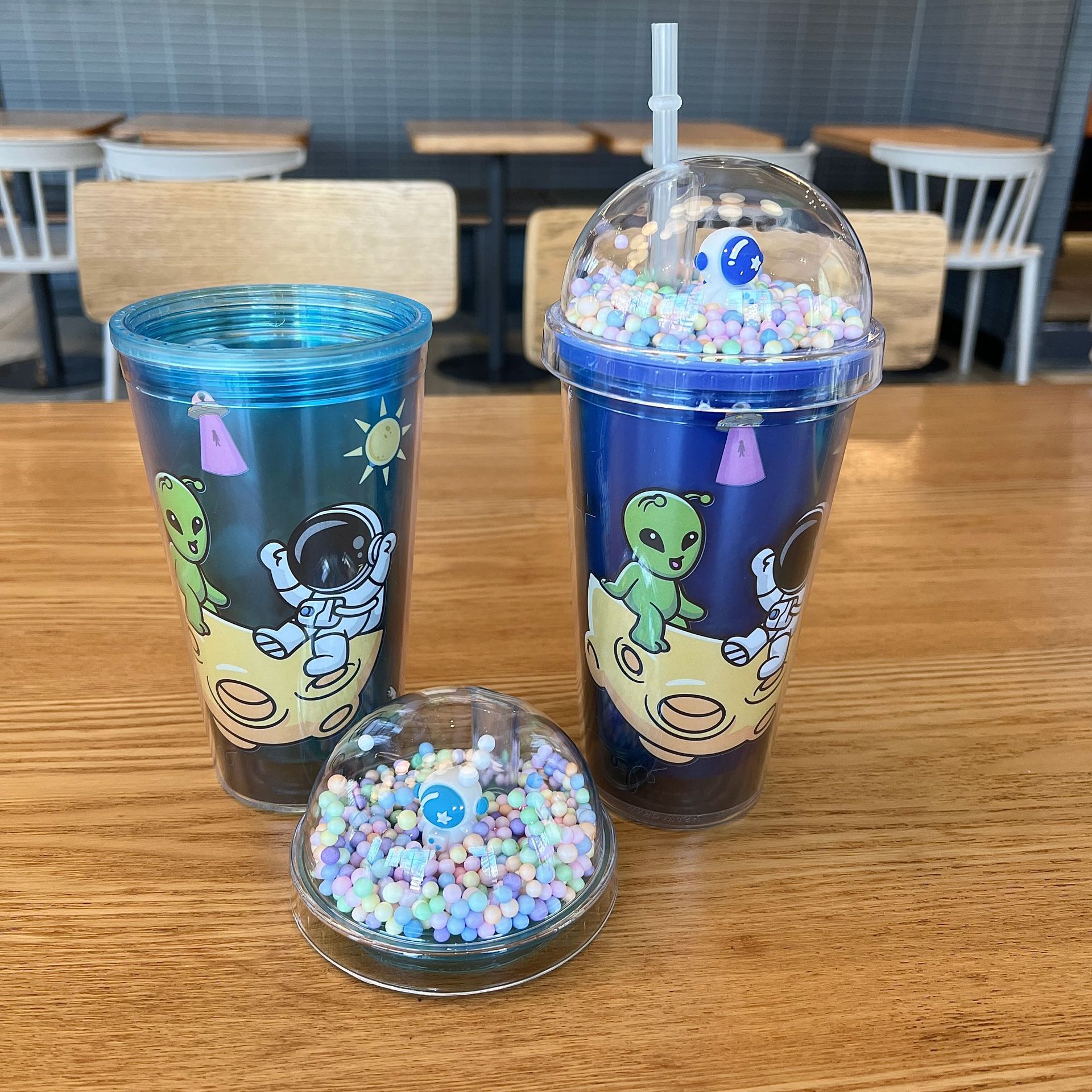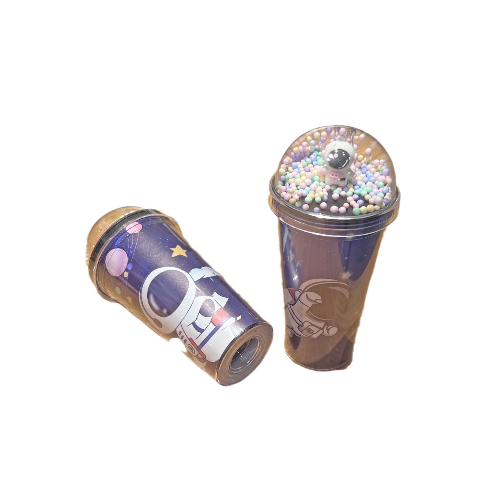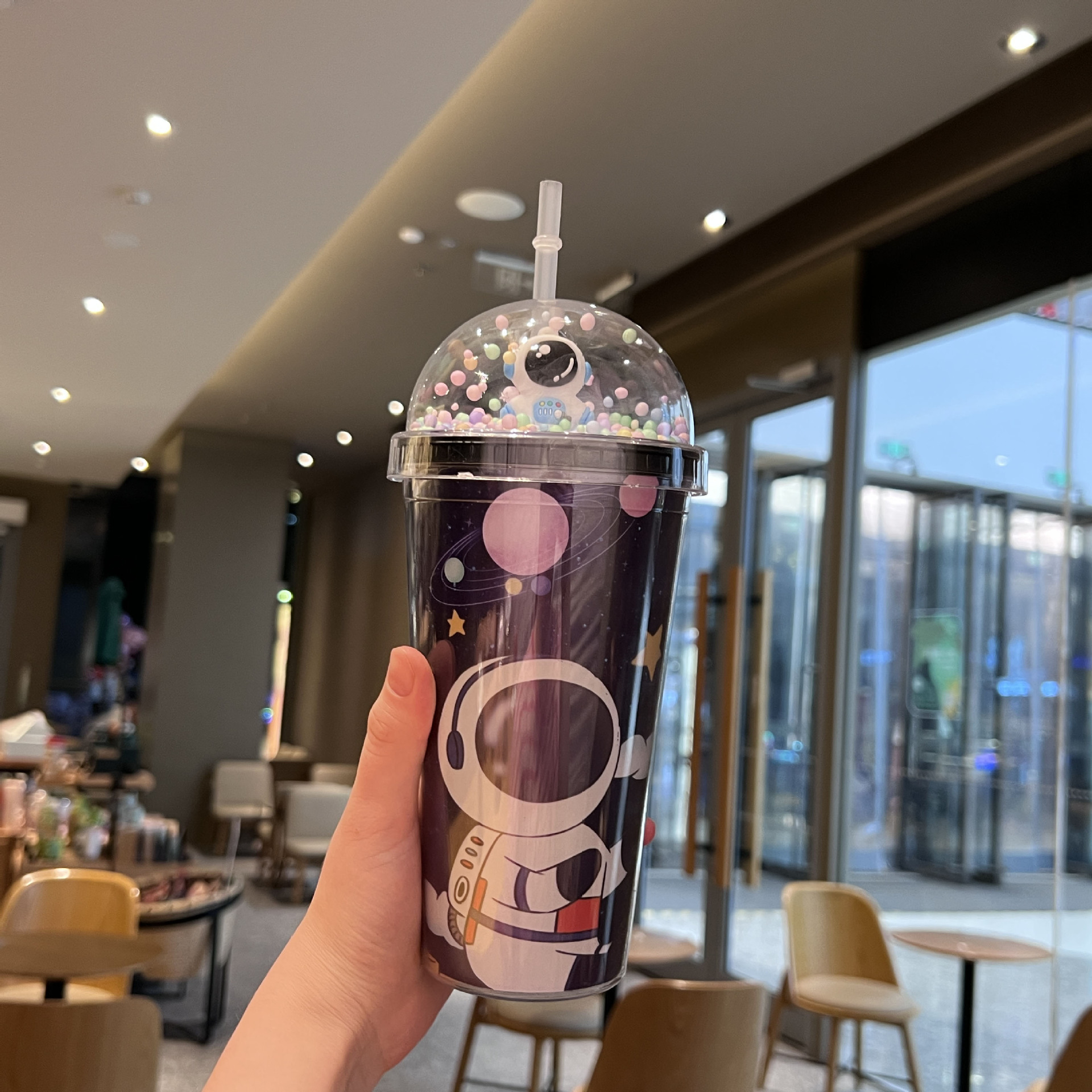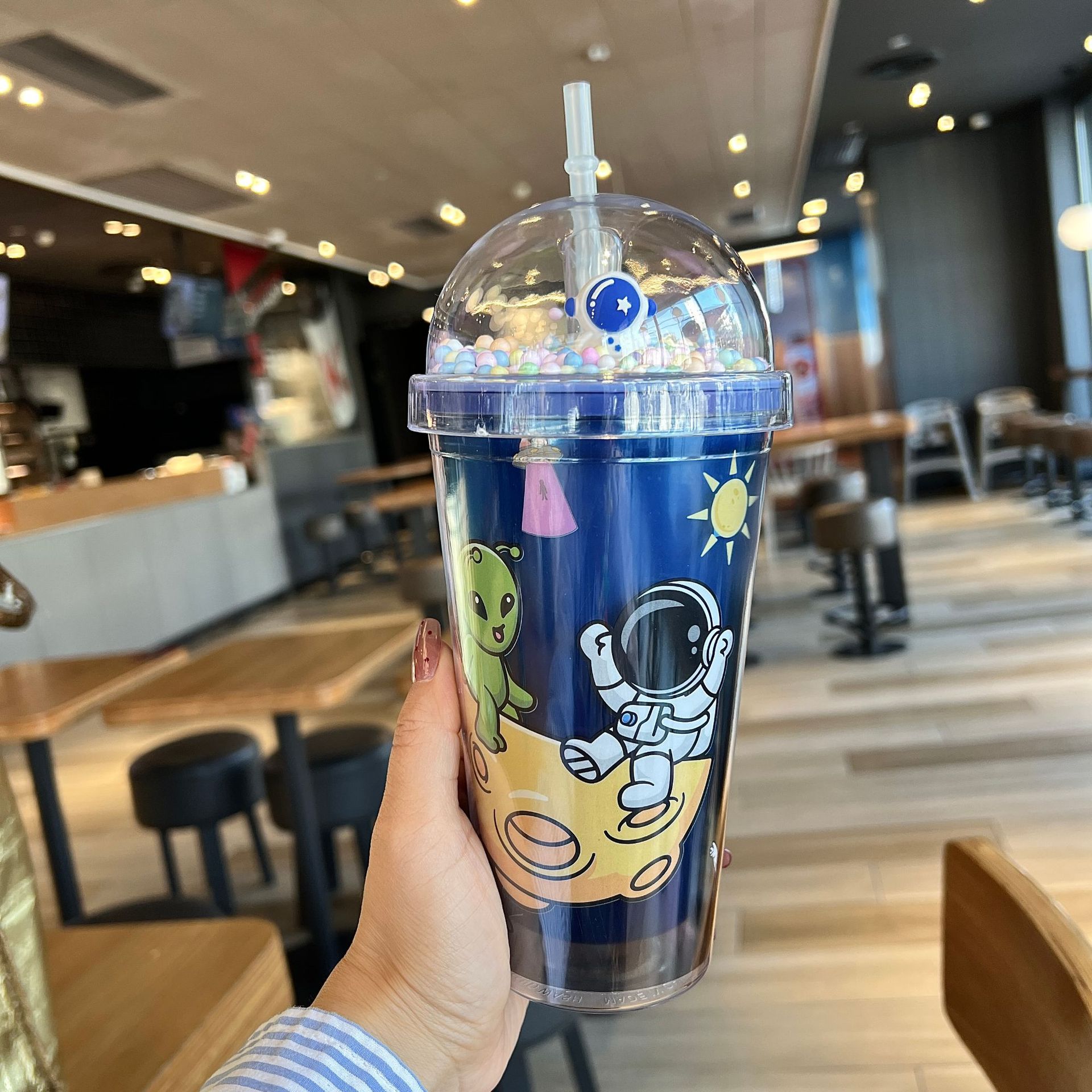 跨境新款高颜值宇航员网红太空人卡通塑料水杯吸管水杯双层碎冰杯