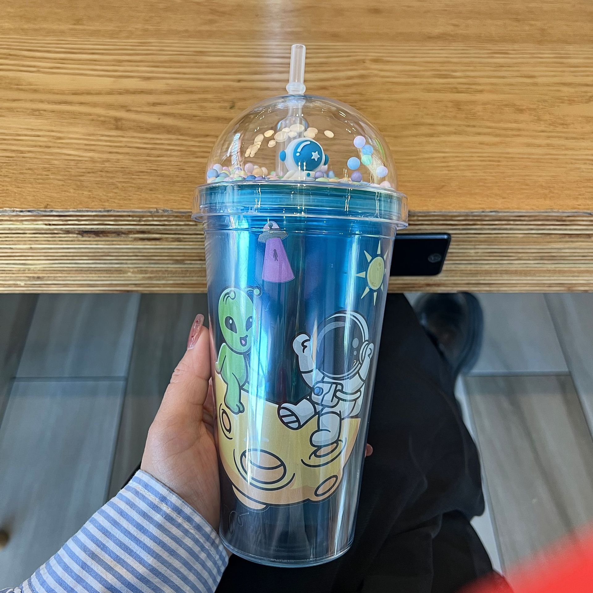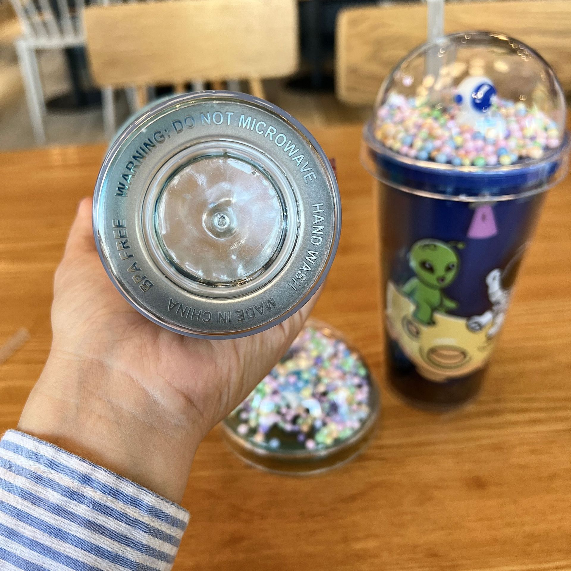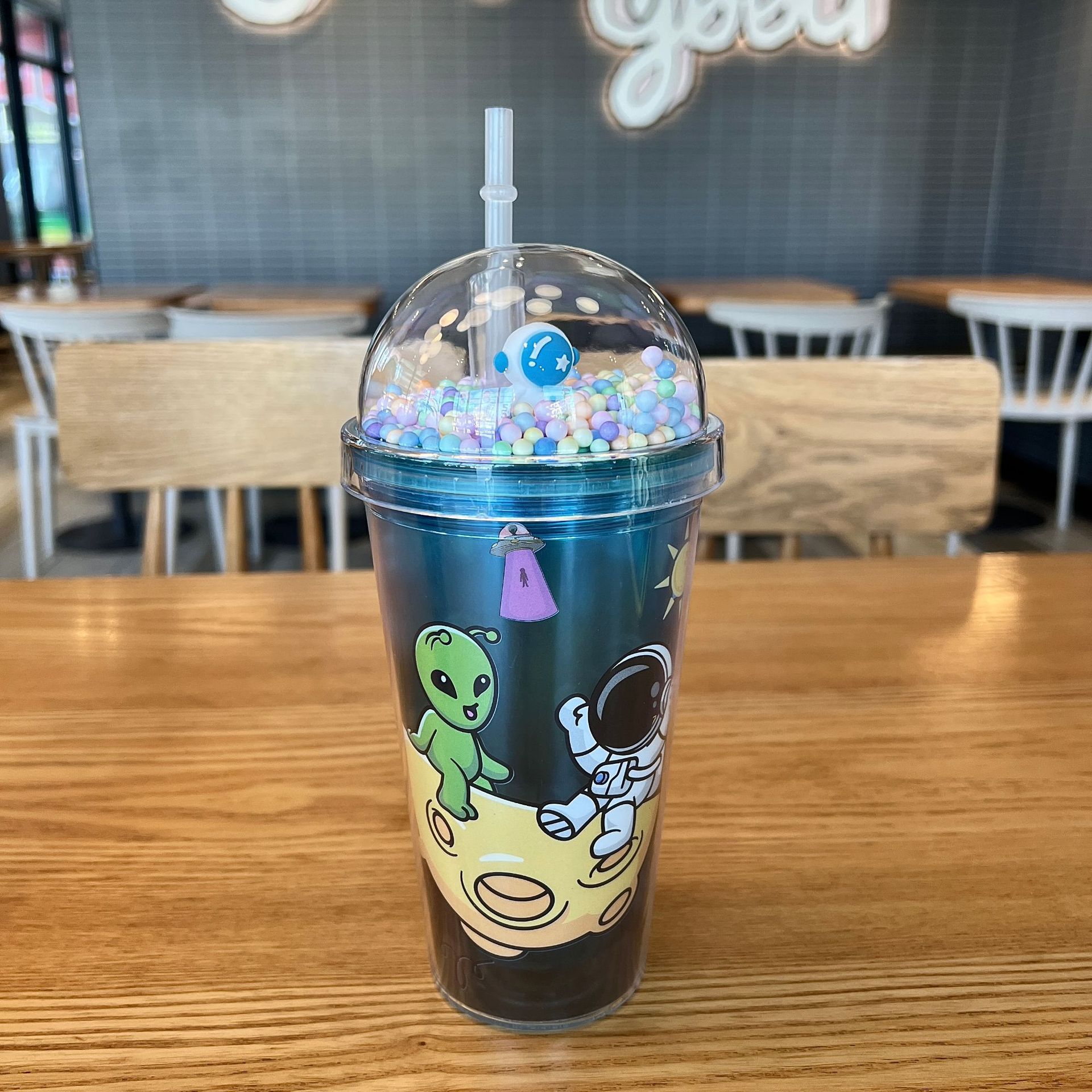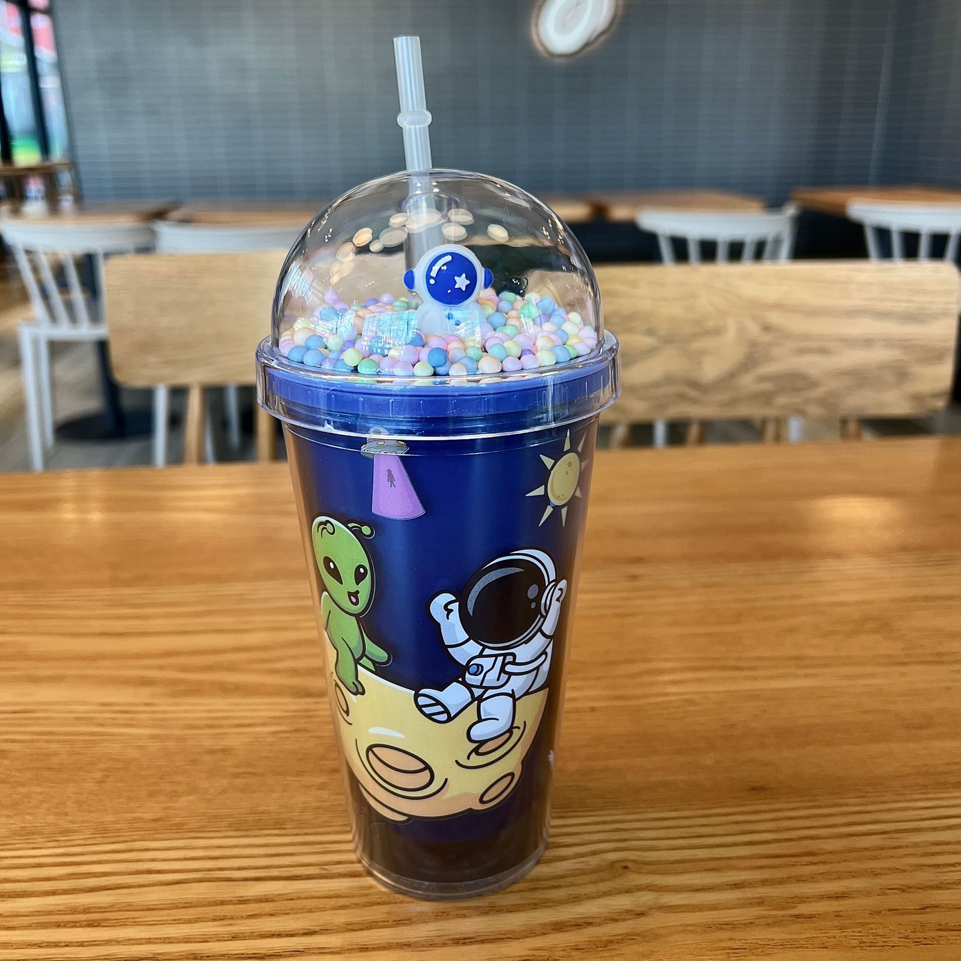 跨境新款高颜值宇航员网红太空人卡通塑料水杯吸管水杯双层碎冰杯