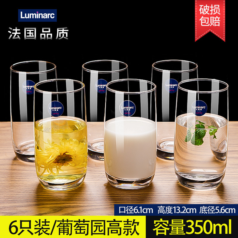 乐美雅玻璃杯家用耐热加厚茶杯玻璃水杯套装透明6只装喝水杯家用