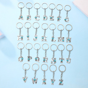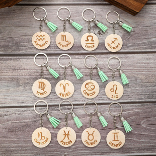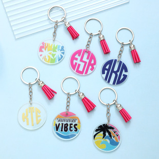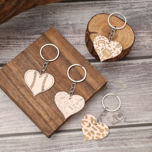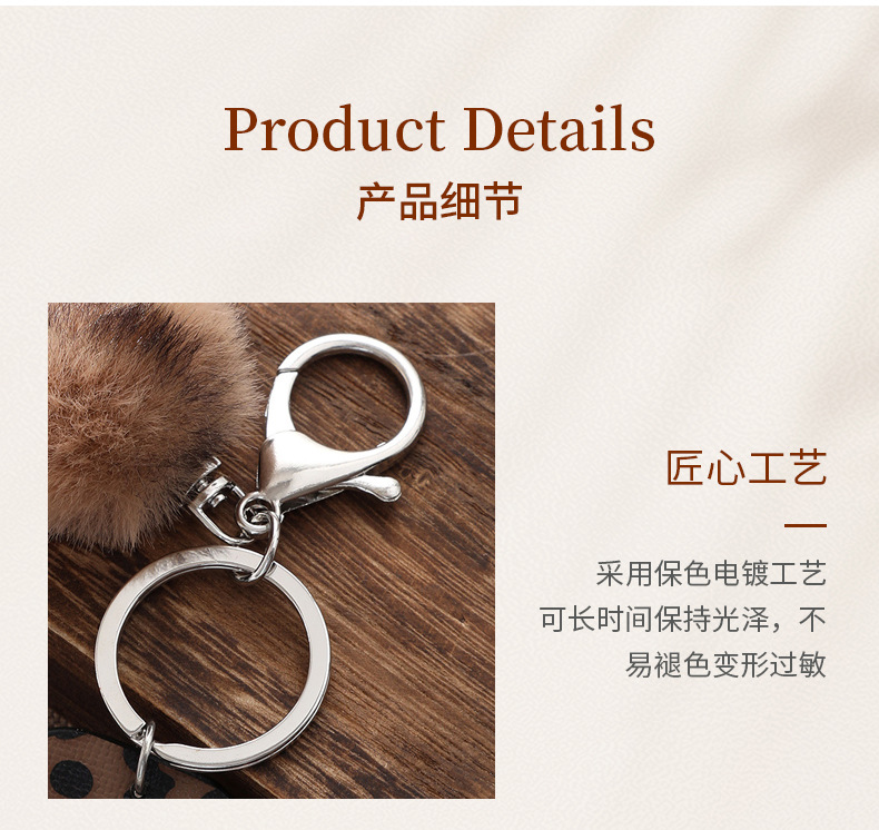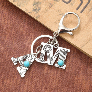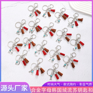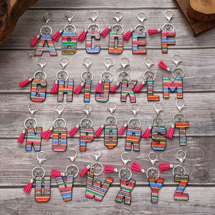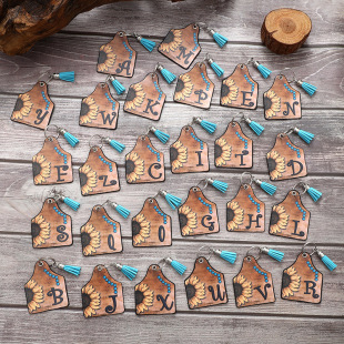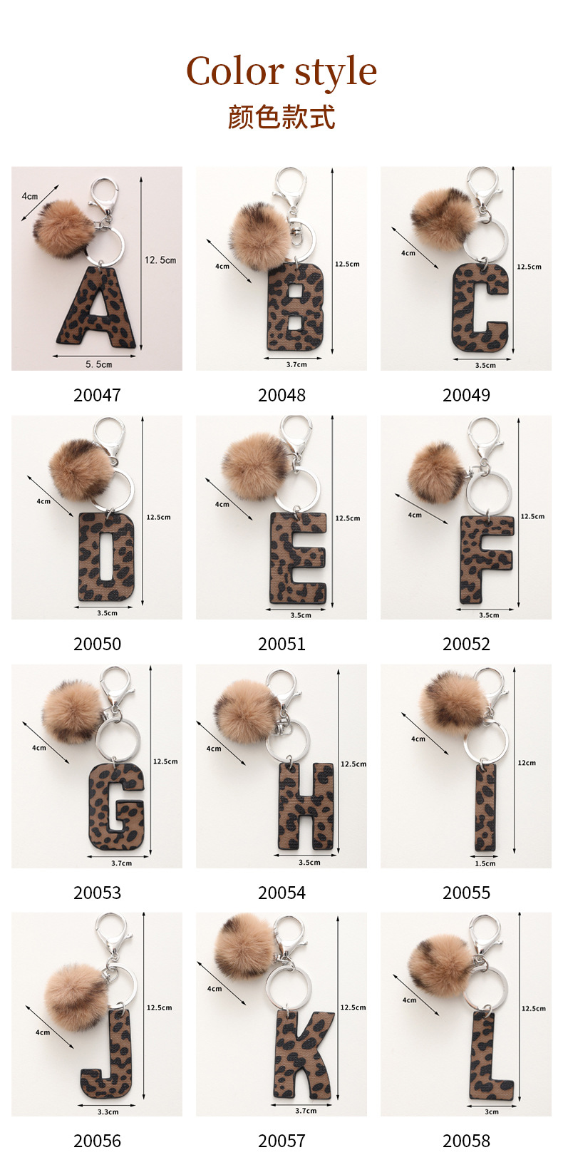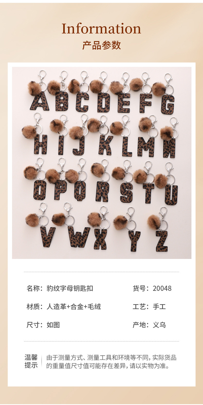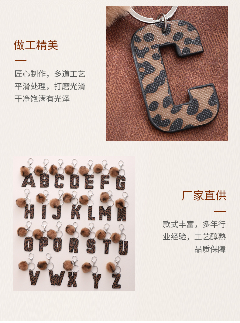 西部牛仔风豹纹油边字母皮革钥匙扣汽车挂件毛绒球配件跨境亚马逊