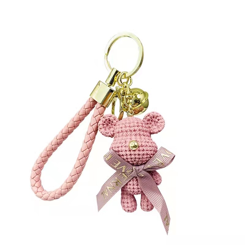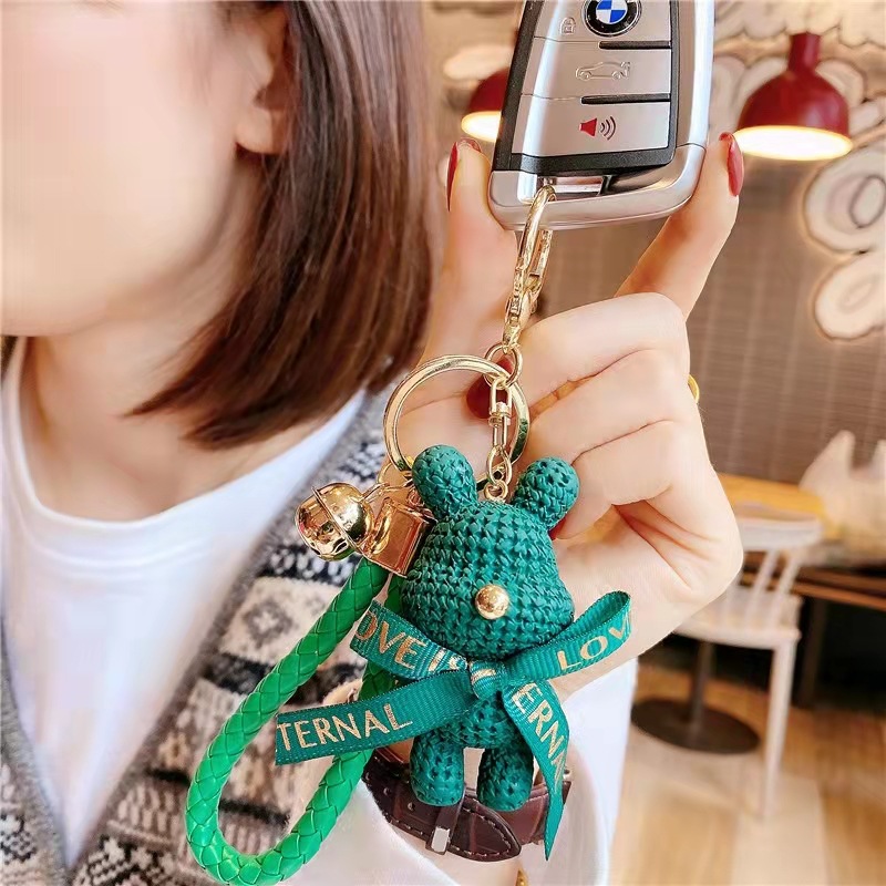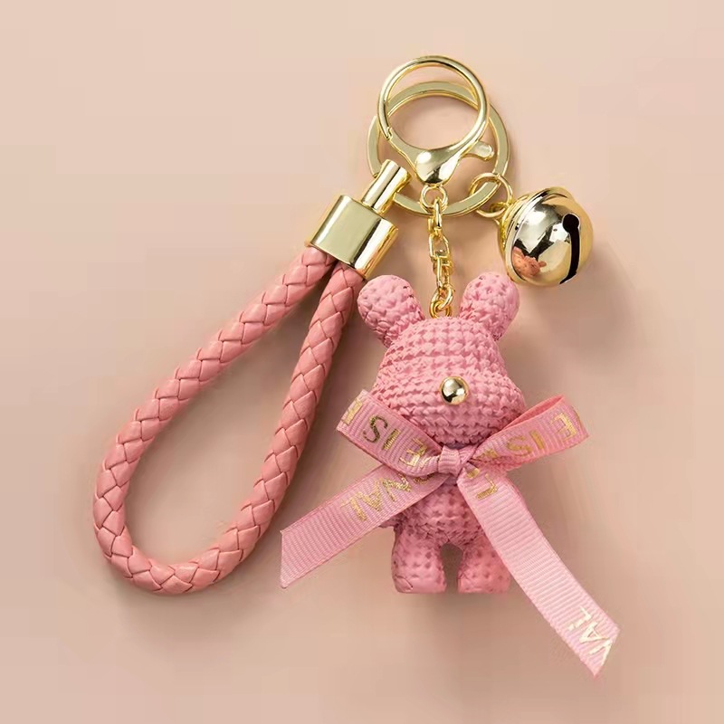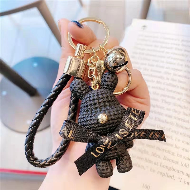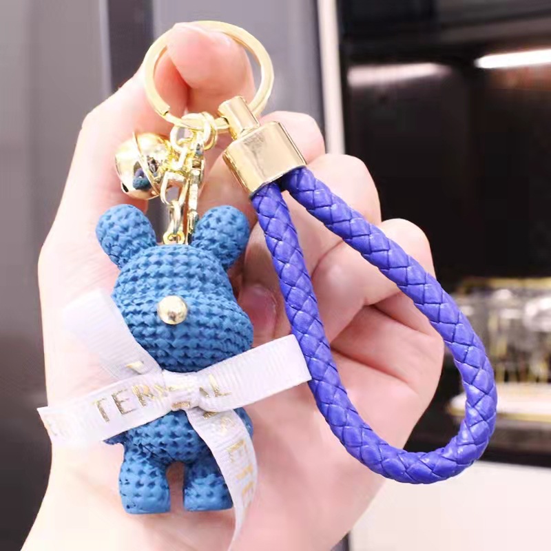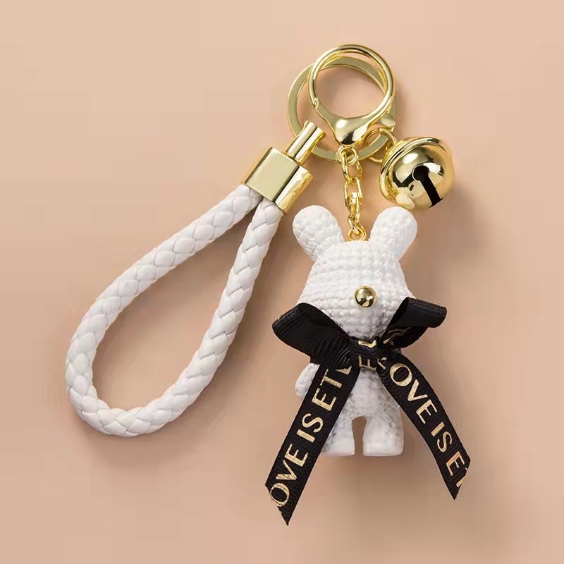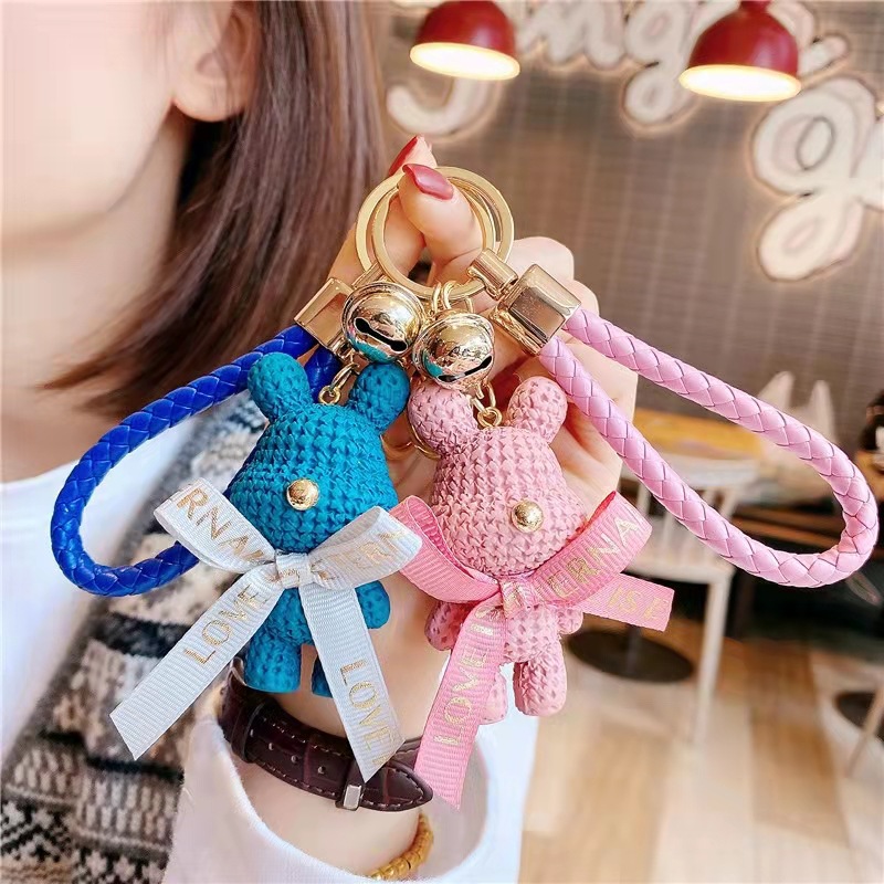 网红树脂毛线领结熊钥匙扣领结兔汽车钥匙链情侣礼物钥匙挂饰批发