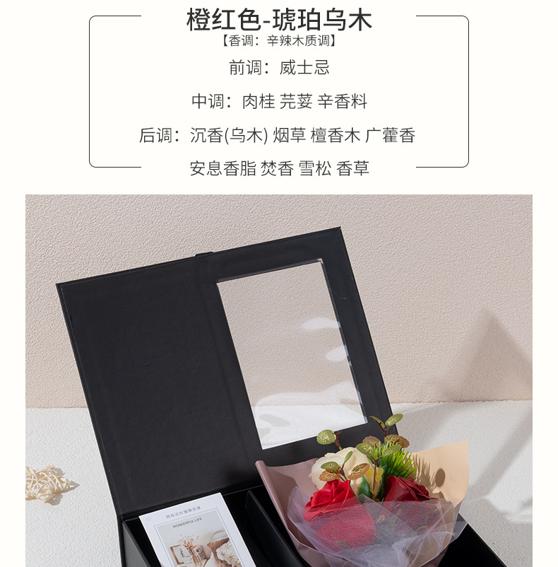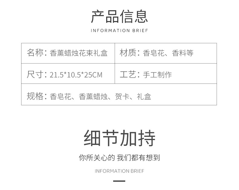 香皂花束,纯手工包装。花束与盒子配件批次不同会有差异,尺寸不变,工艺配件以实物为准. 礼盒重量较重,路上发生轻微折痕褶皱属于正常现象.