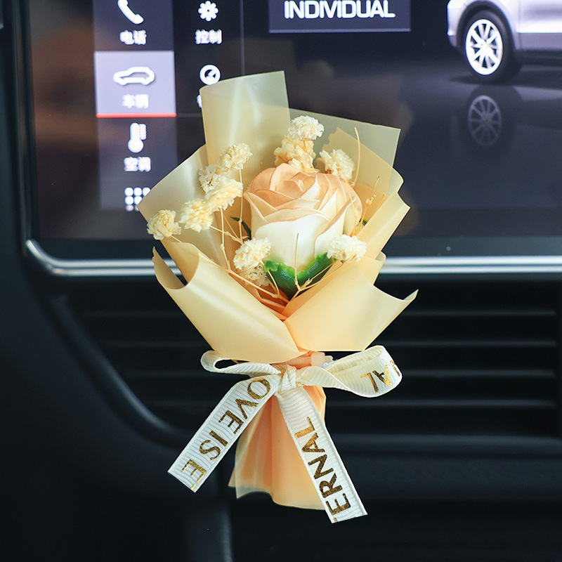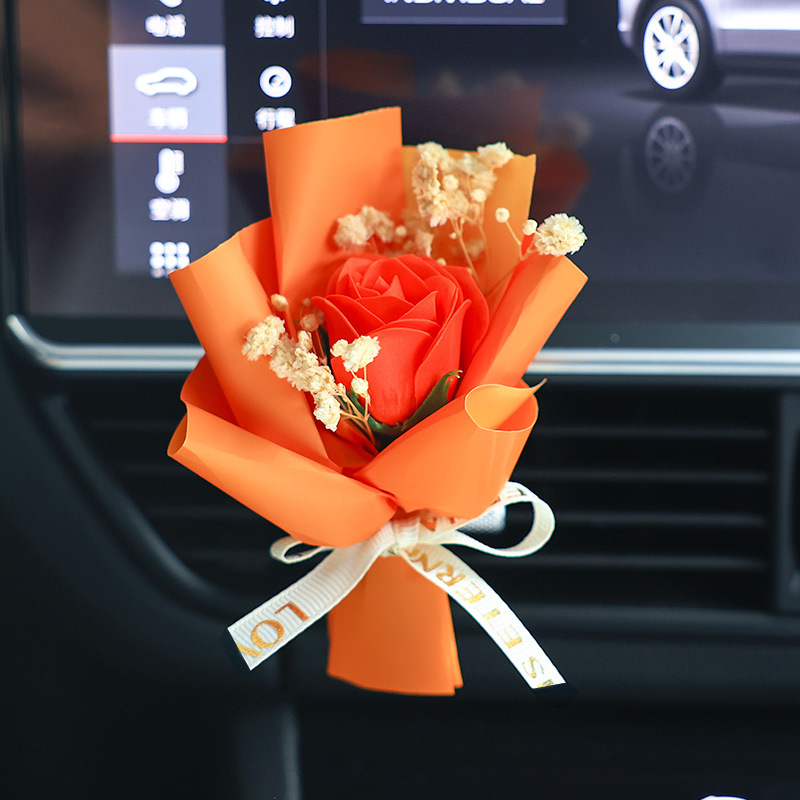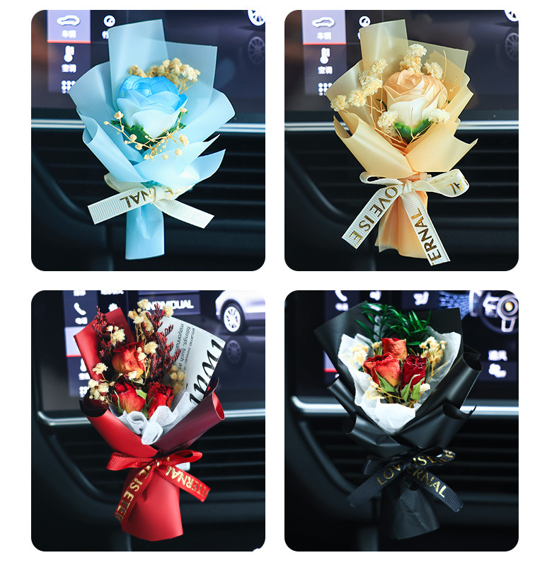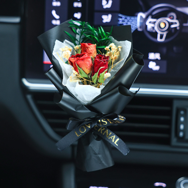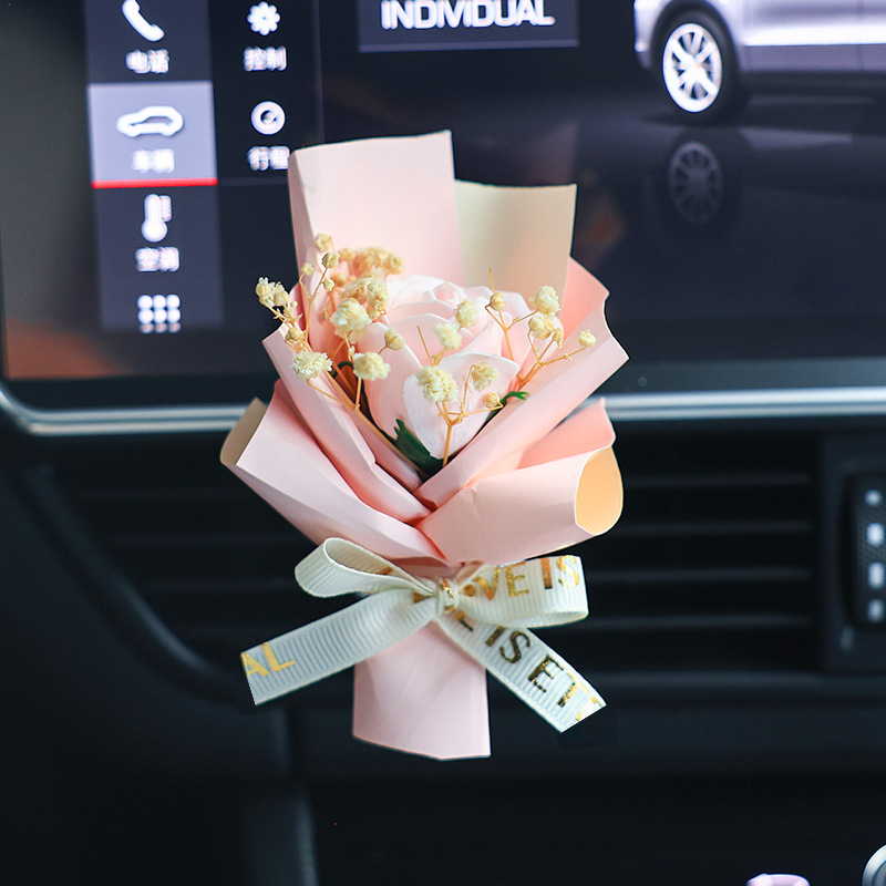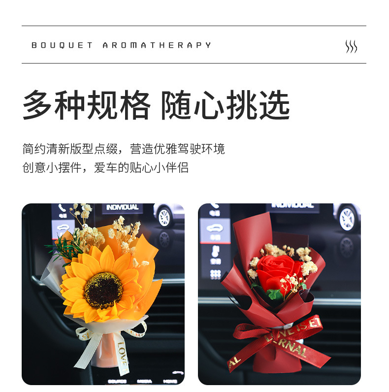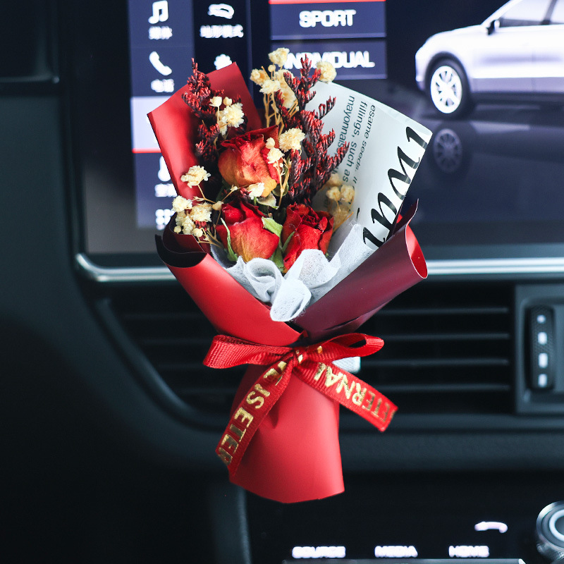 车载花束出风口香薰创意永生干花束汽车装饰摆件空调香氛夹玫瑰