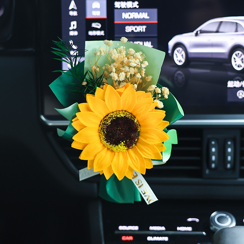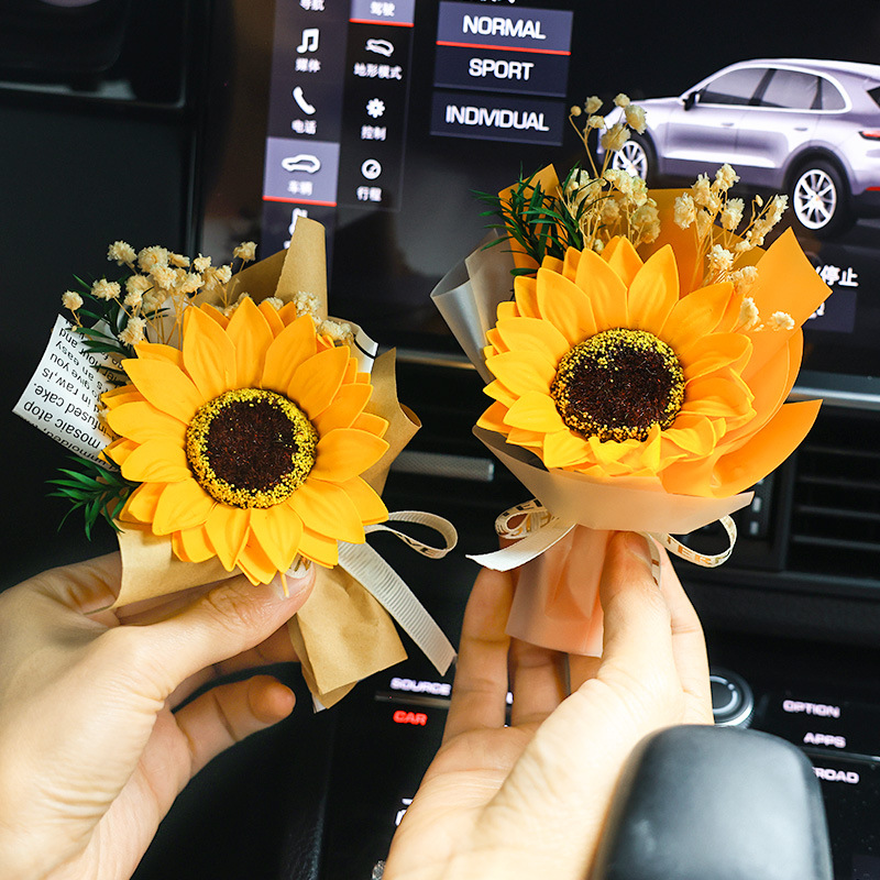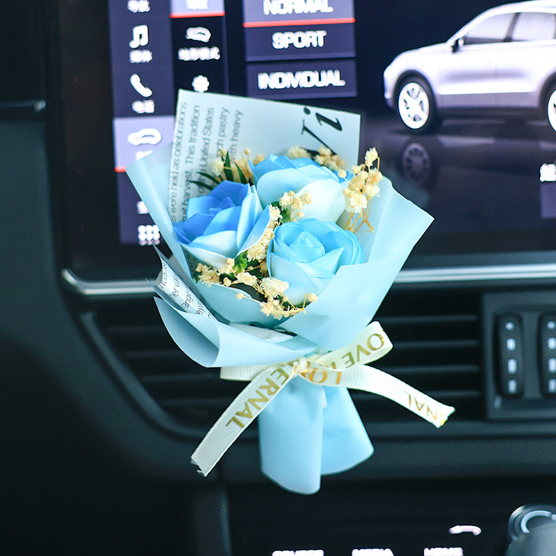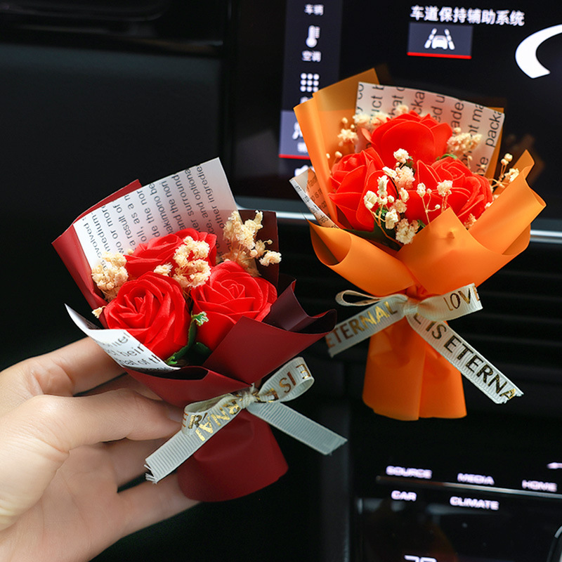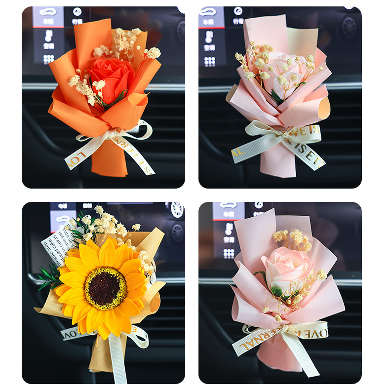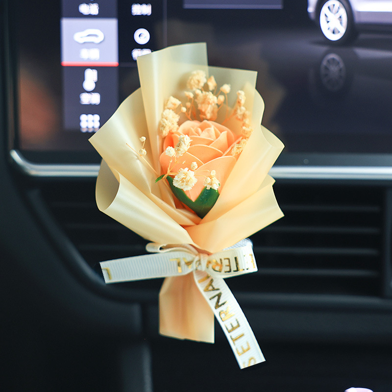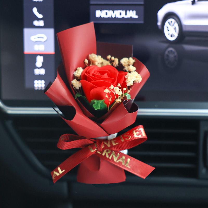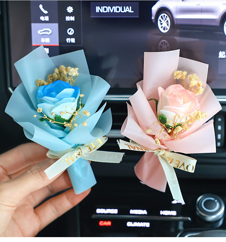 车载花束出风口香薰创意永生干花束汽车装饰摆件空调香氛夹玫瑰
