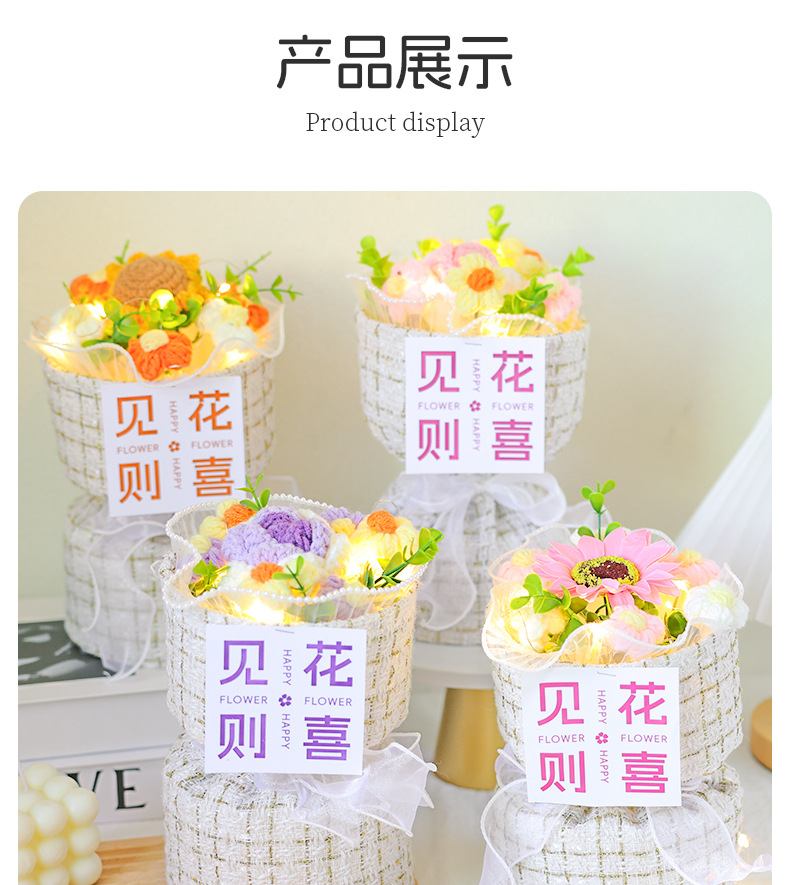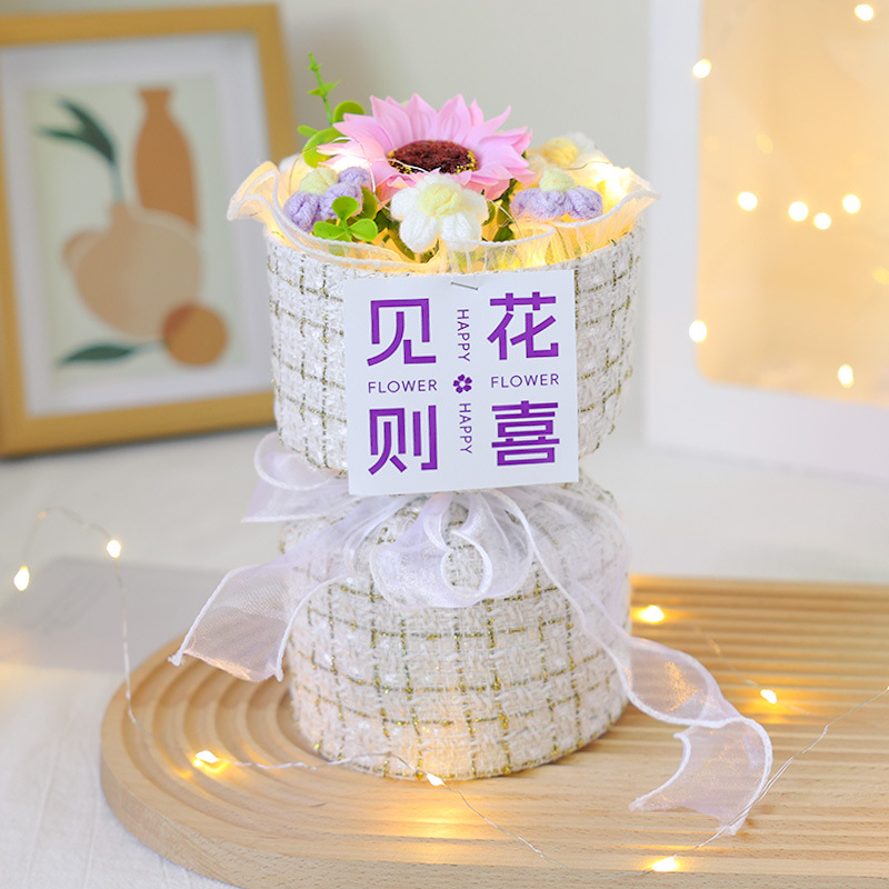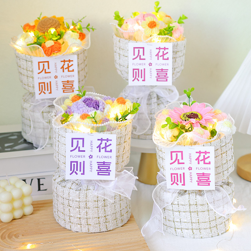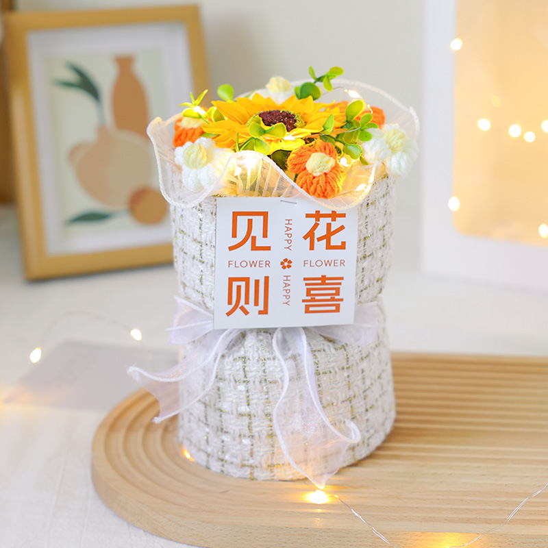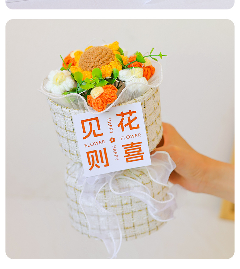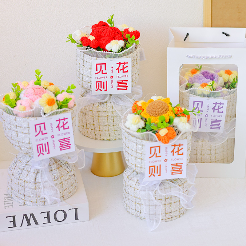 泡芙花束向日葵玫瑰情人节伴手礼毛线花手提送男女朋友手工编织