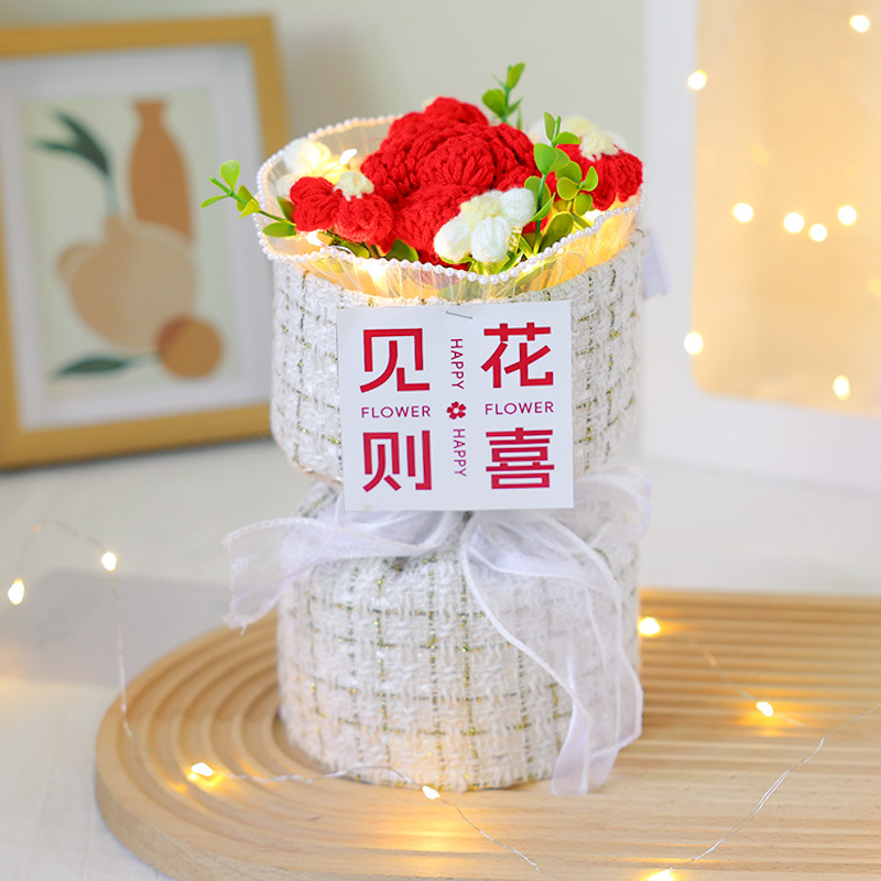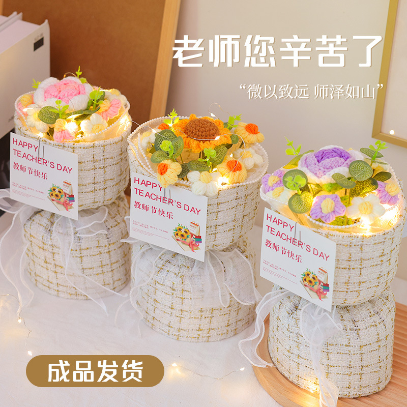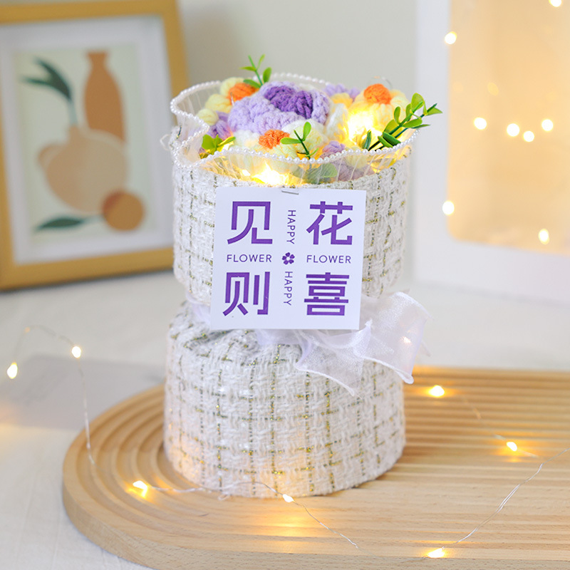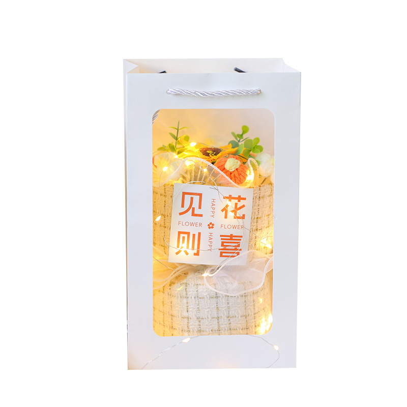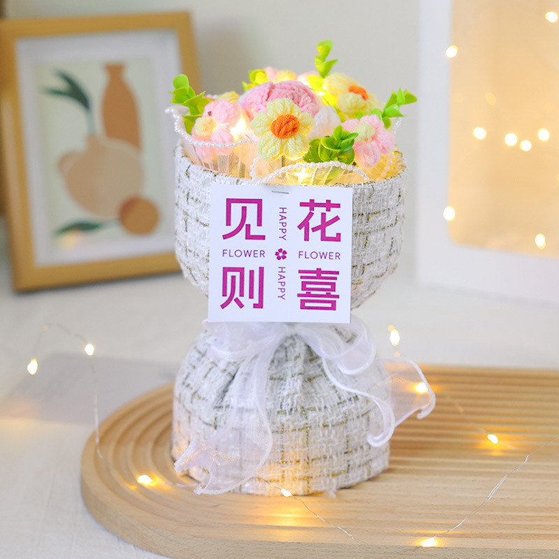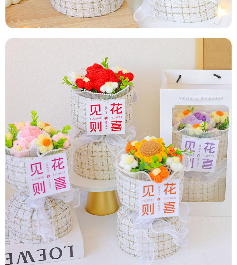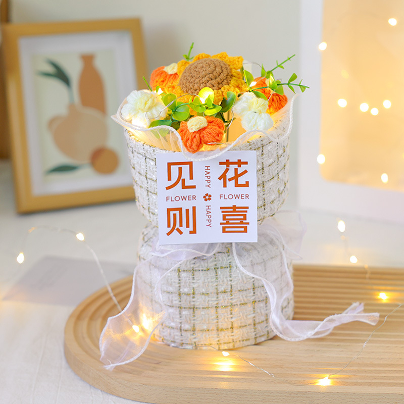 泡芙花束向日葵玫瑰情人节伴手礼毛线花手提送男女朋友手工编织
