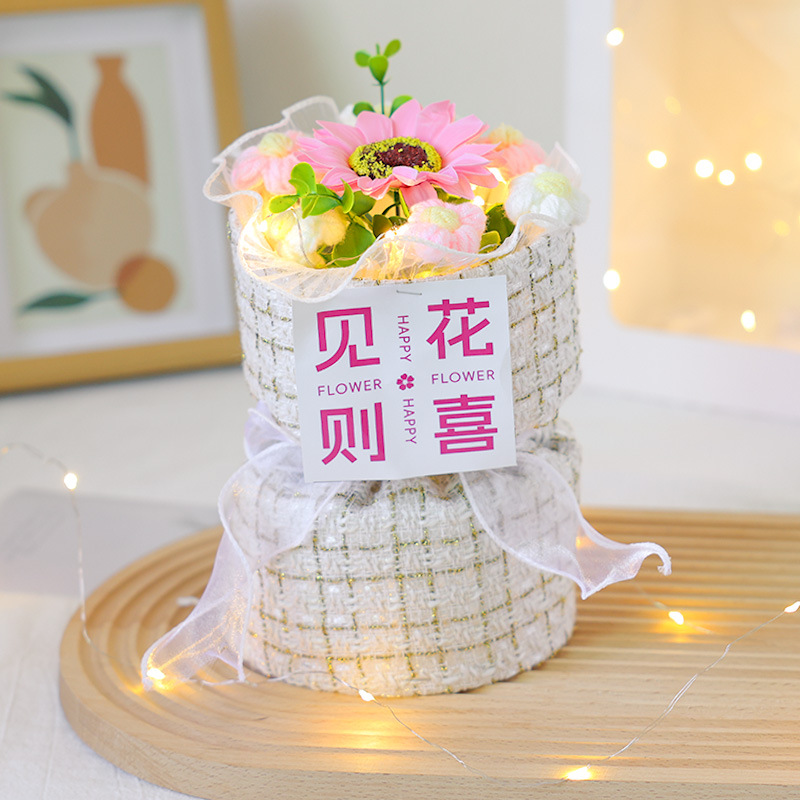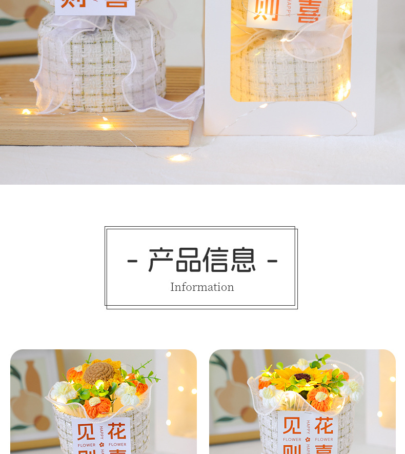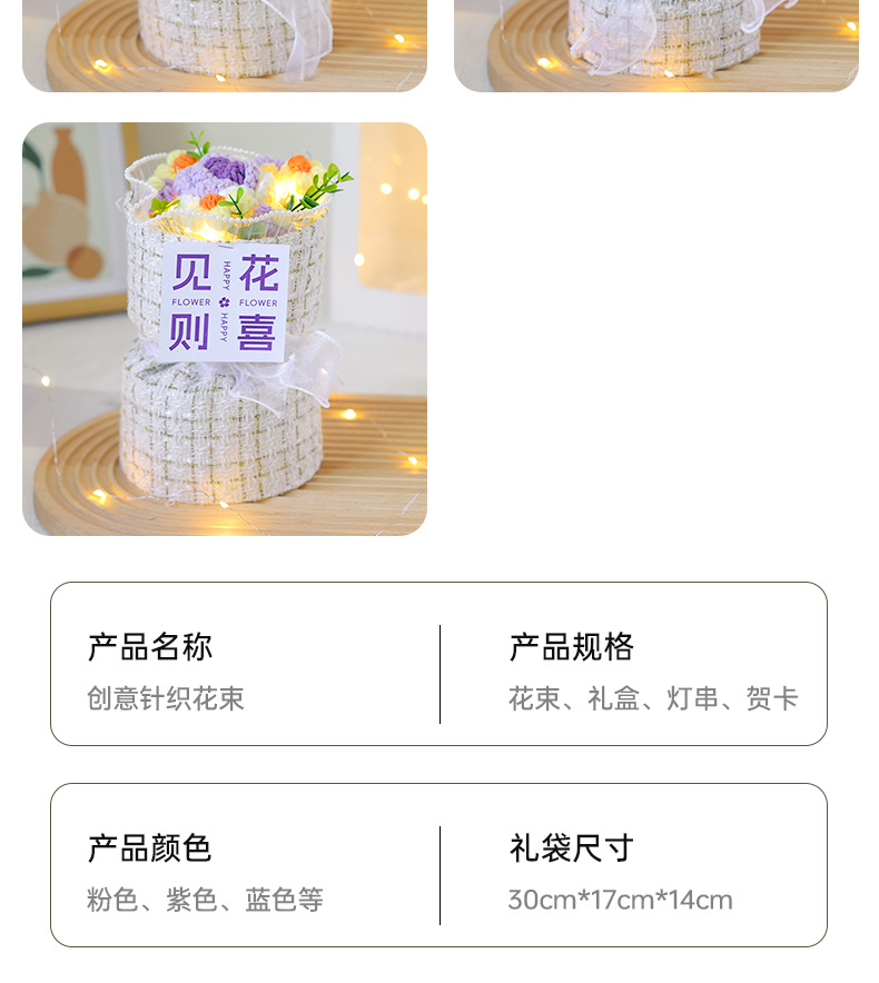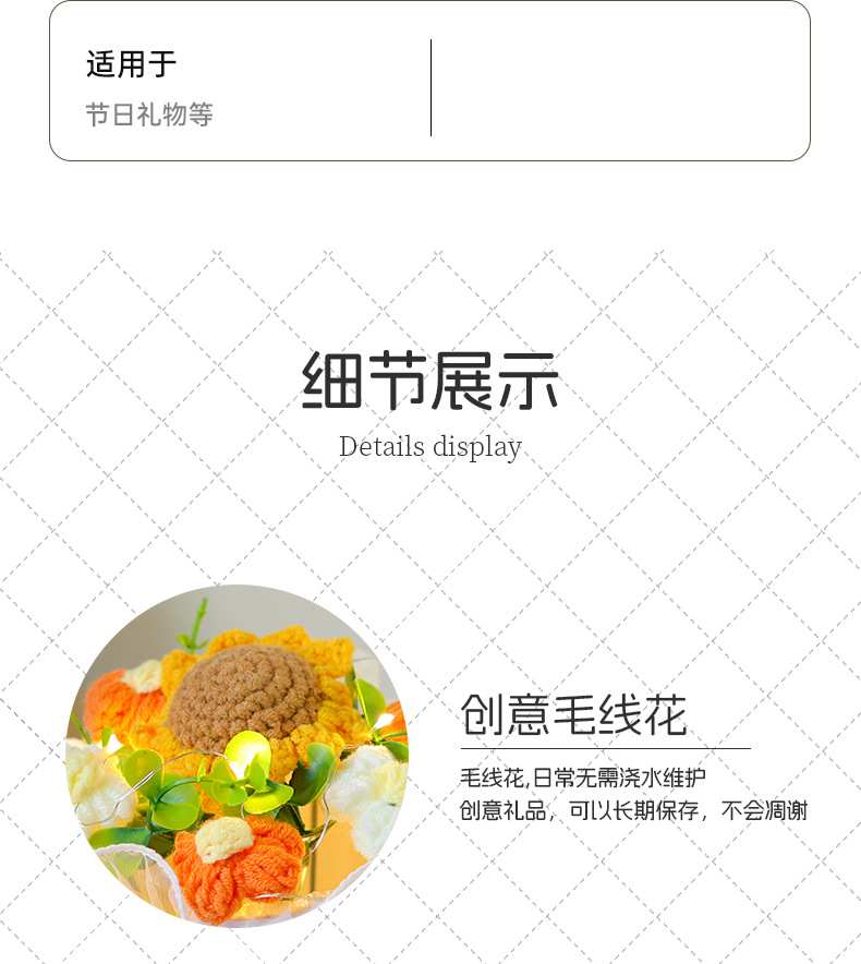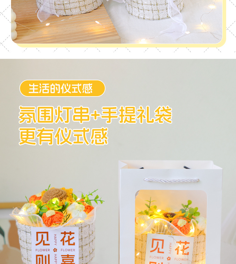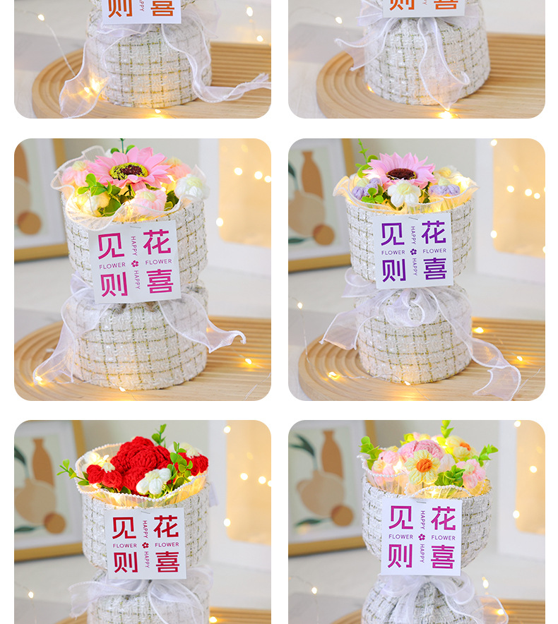 泡芙花束向日葵玫瑰情人节伴手礼毛线花手提送男女朋友手工编织