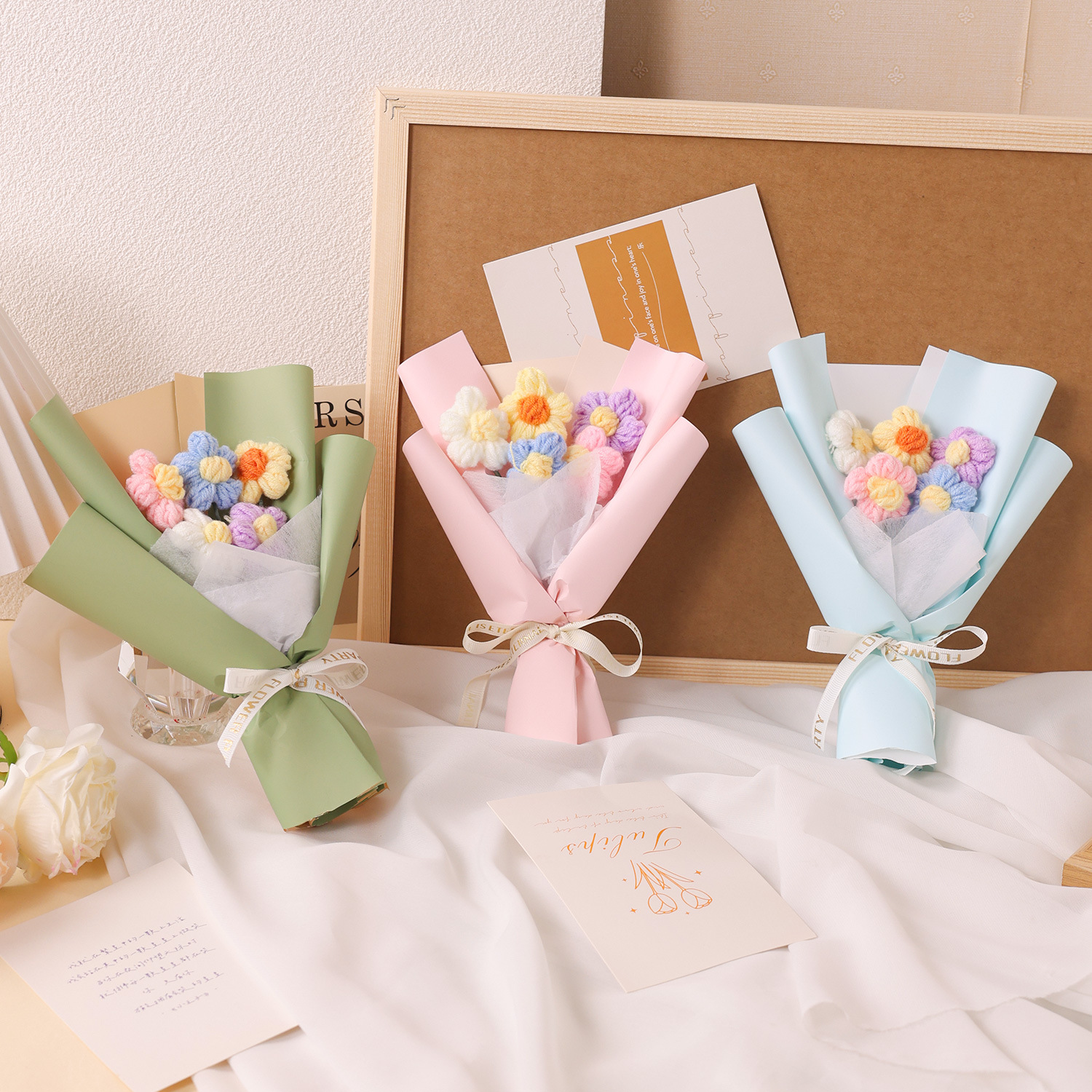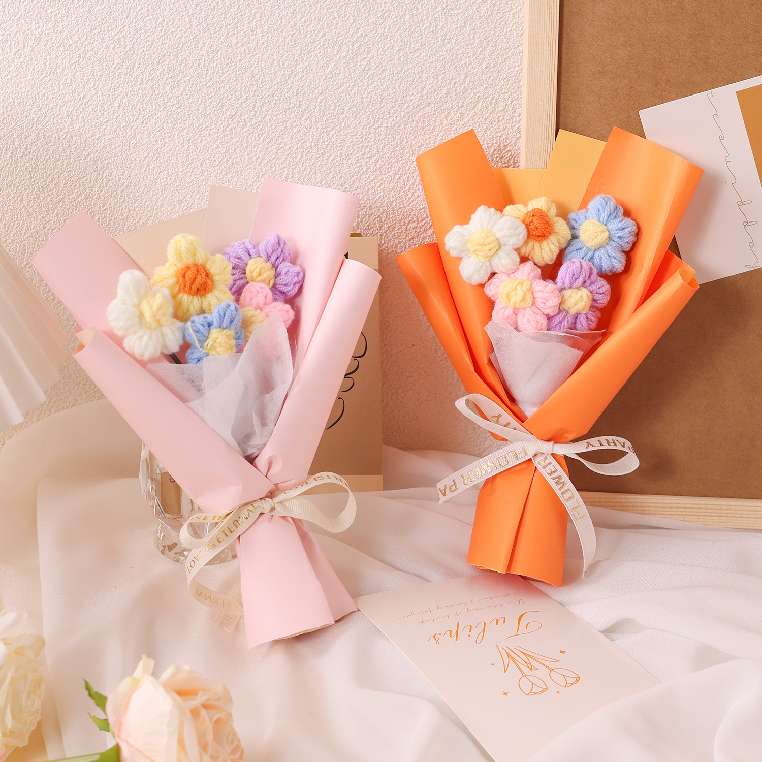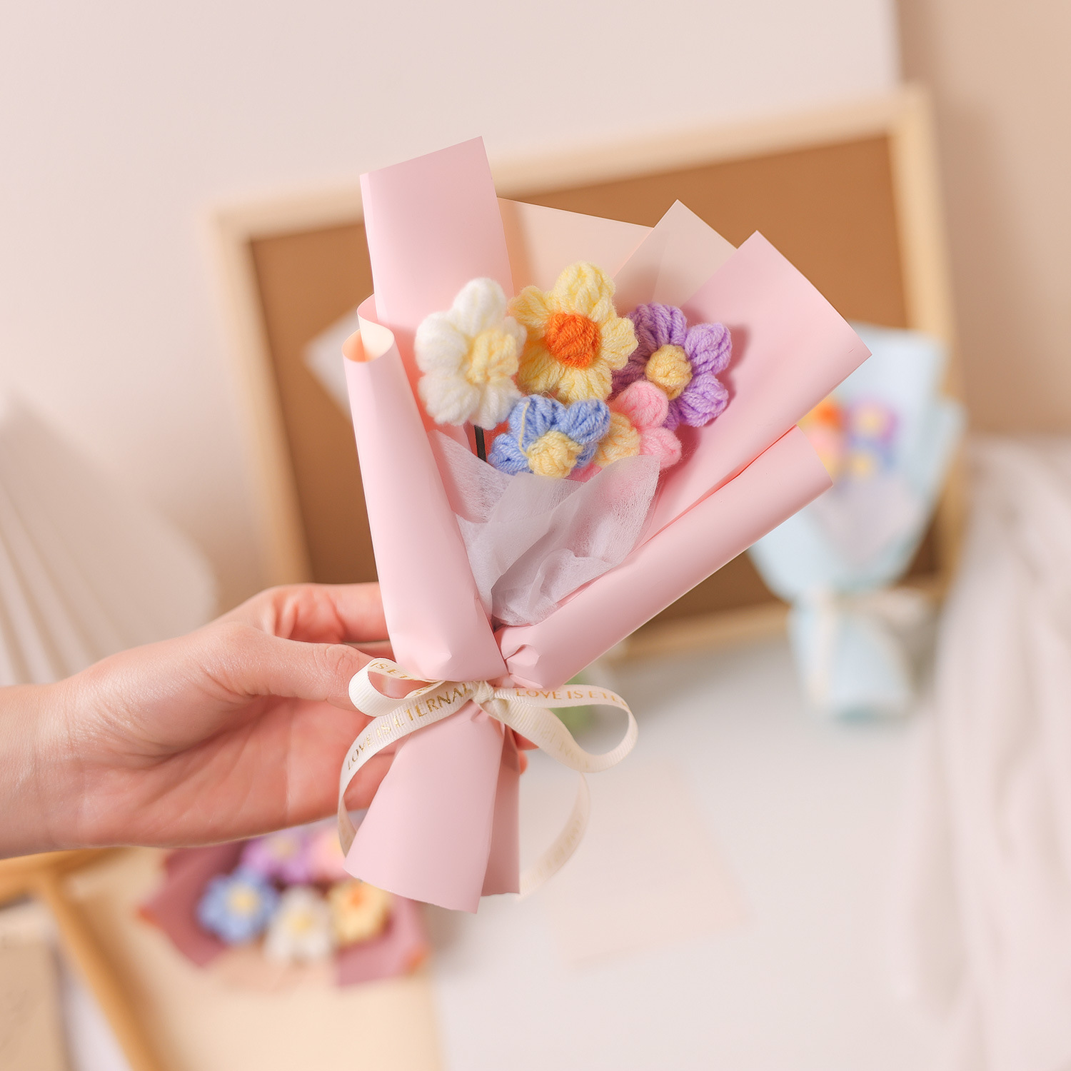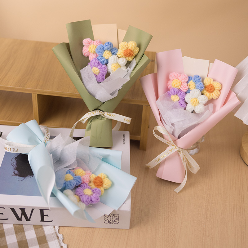 情人节礼物创意手工针织花泡芙花小花束毛线花艺装饰摆件礼物礼品