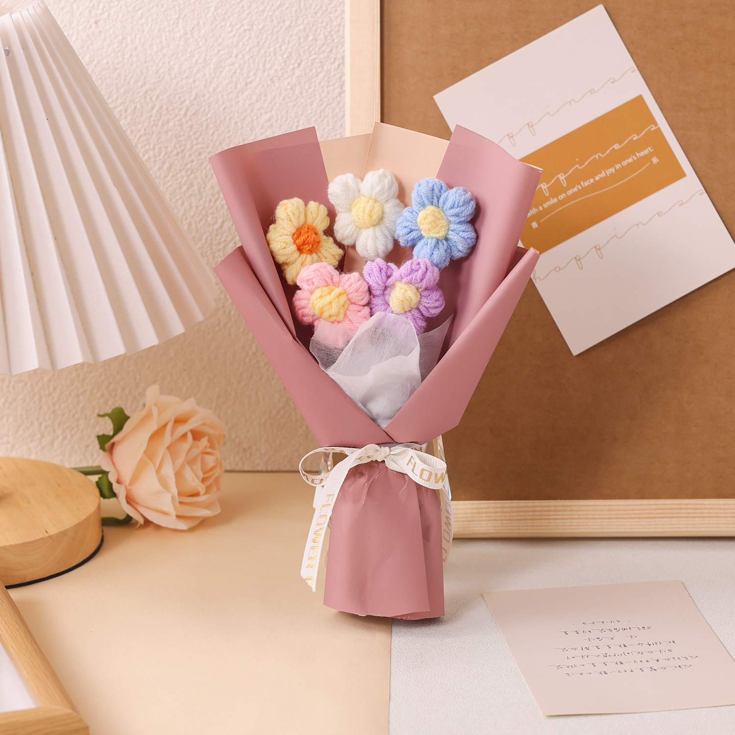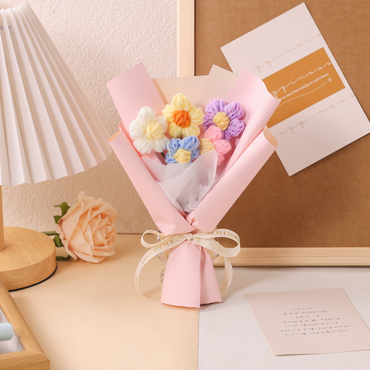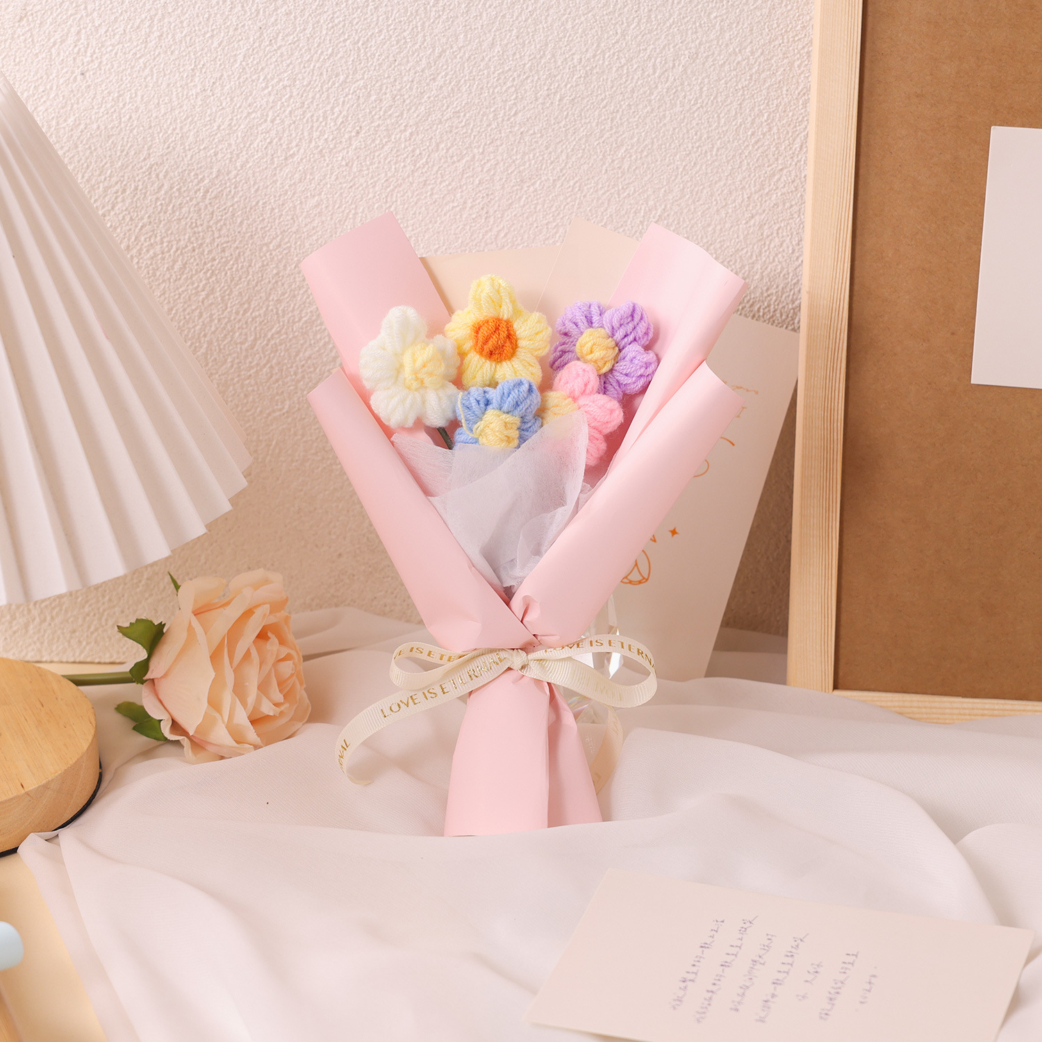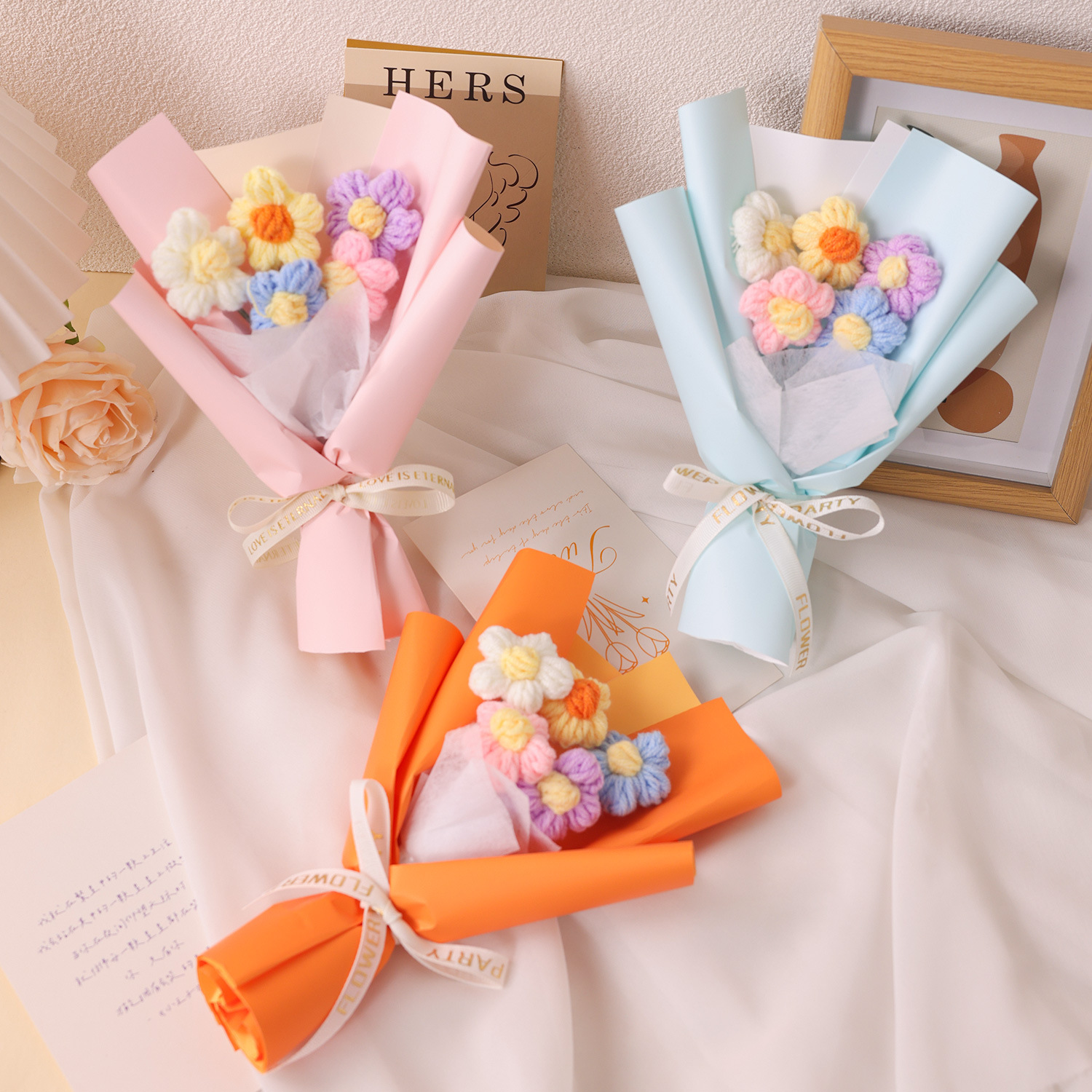 情人节礼物创意手工针织花泡芙花小花束毛线花艺装饰摆件礼物礼品