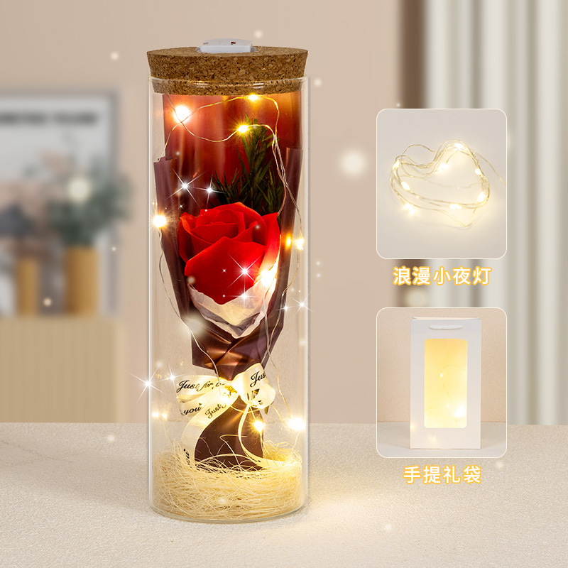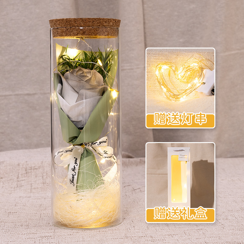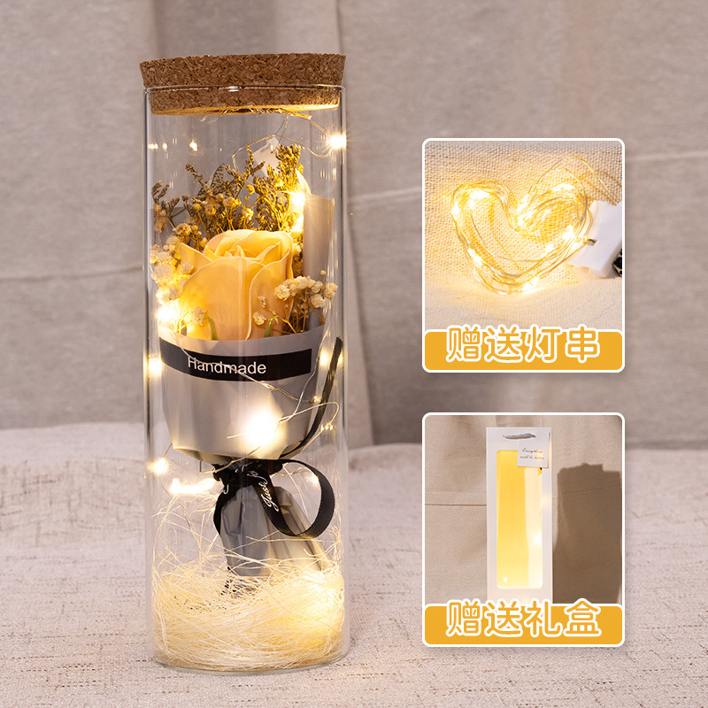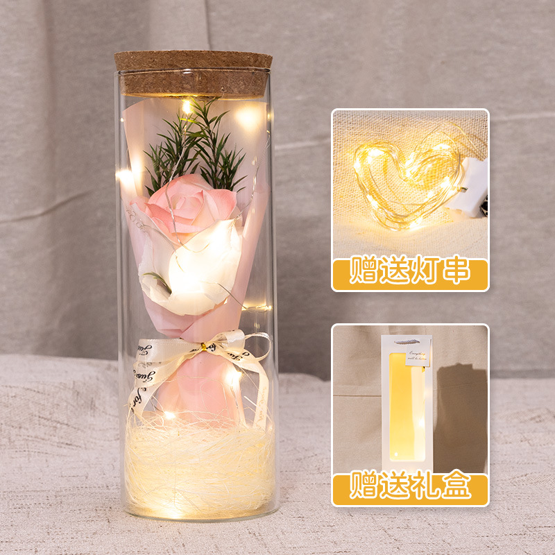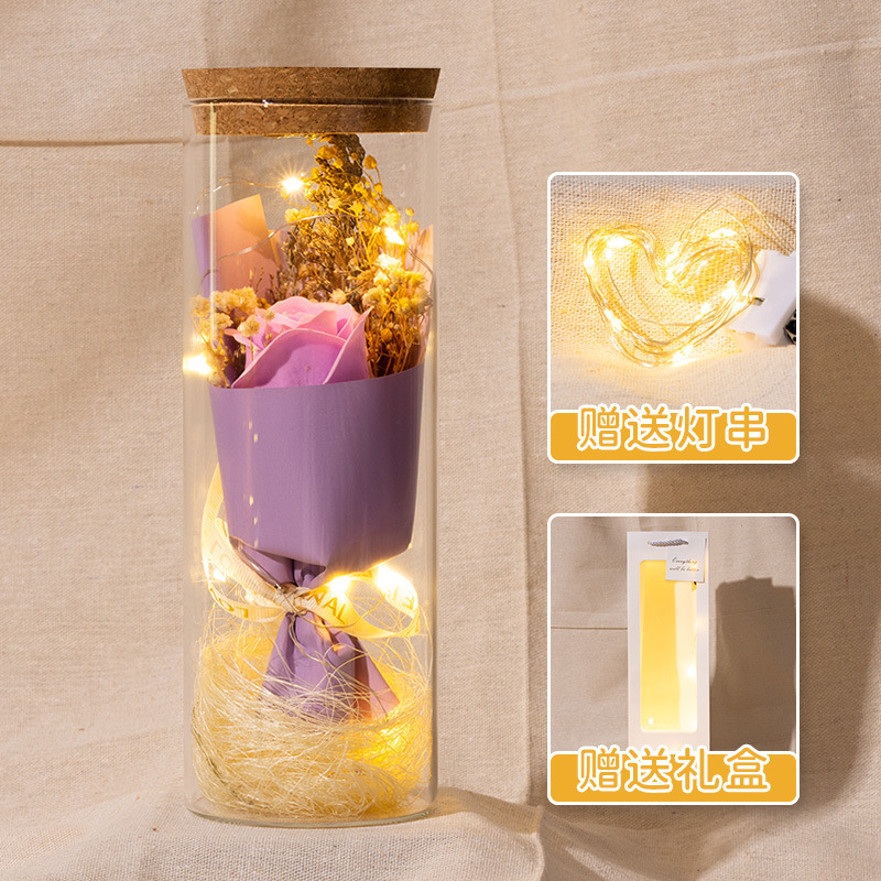 情人节批发玻璃瓶罩带灯满天星干花香皂花许愿瓶实用生日礼物