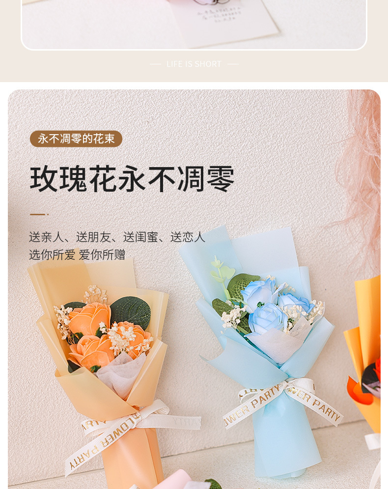玫瑰花迷你小花束情人节送女友手捧礼物满天星干花节日伴手礼批发