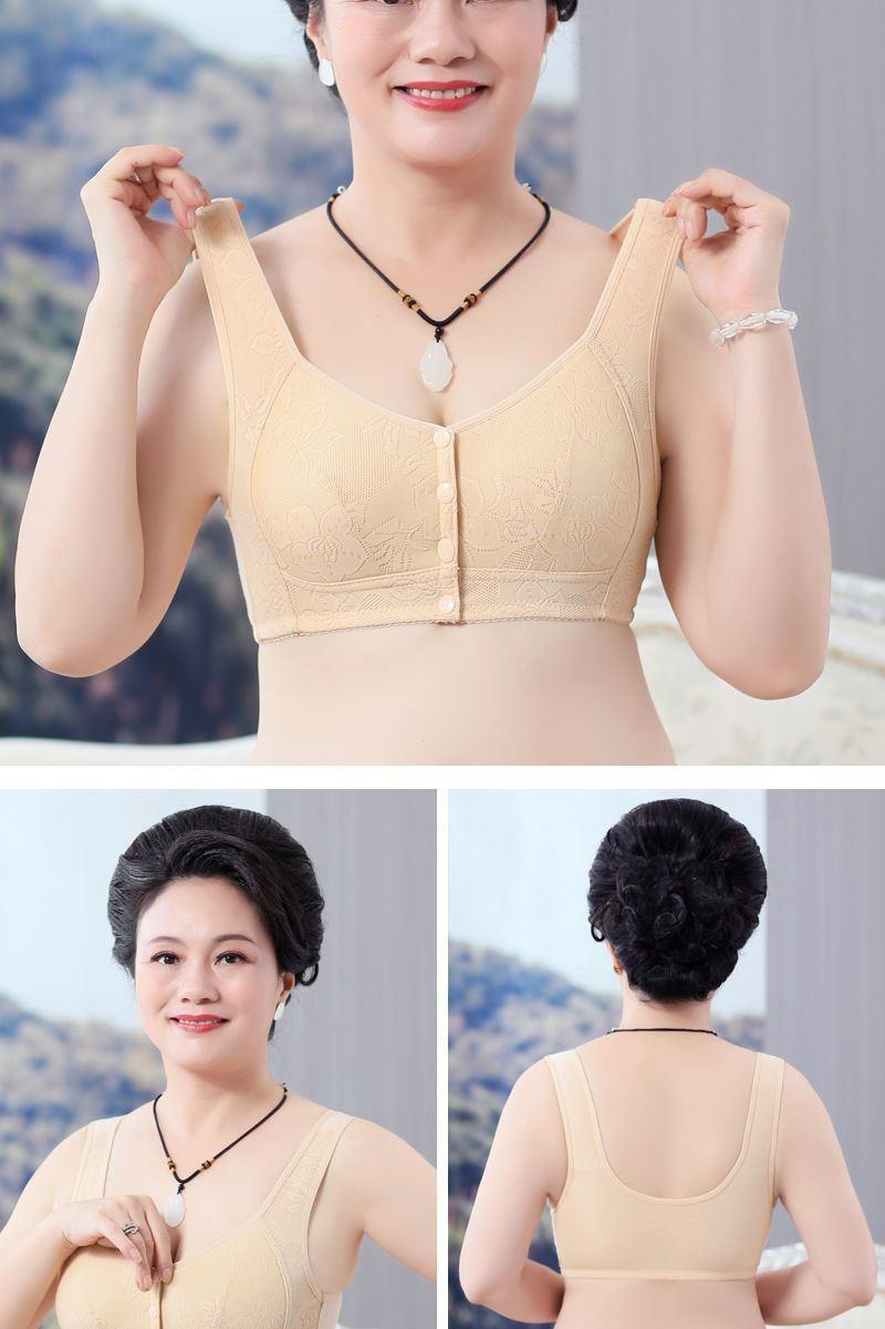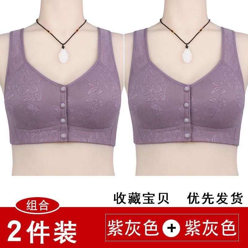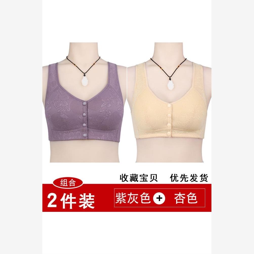 妈妈内衣背心式前扣文胸无钢圈中年妇女士大码老年人薄款纯棉胸罩