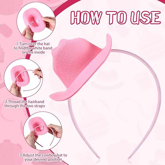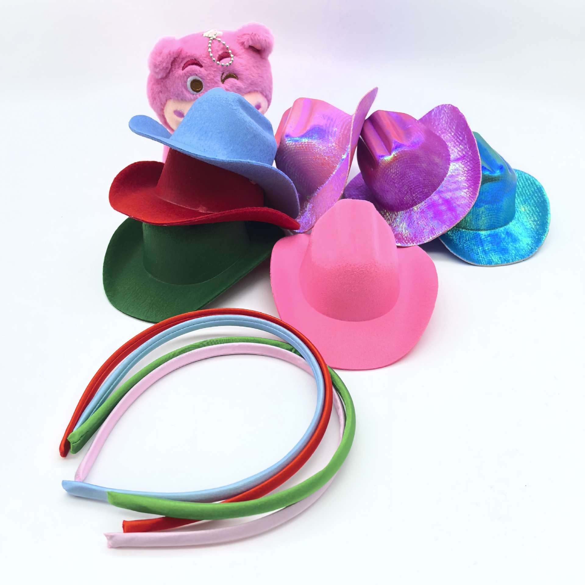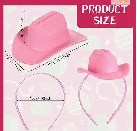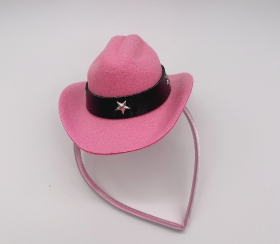 粉色帽子带灯发箍牛仔帽 迷你粉色头饰节日发箍帽子粉色发箍帽子
