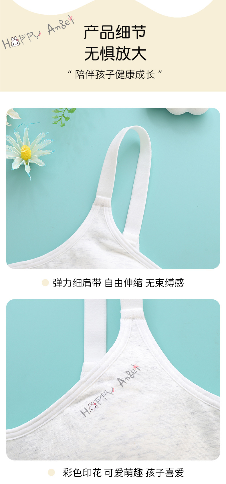 二阶段发育期纯棉少女内衣初中学生运动高弹透气小背心无钢圈文胸
