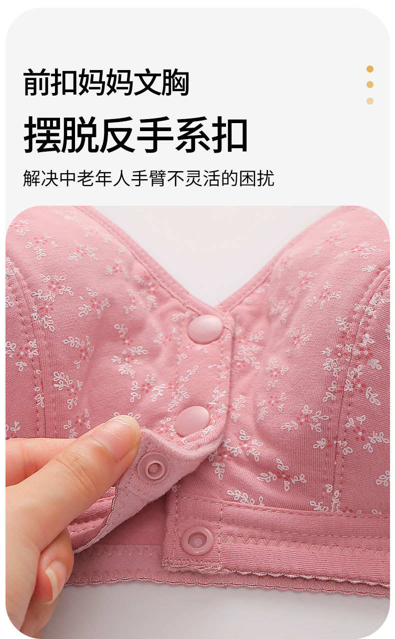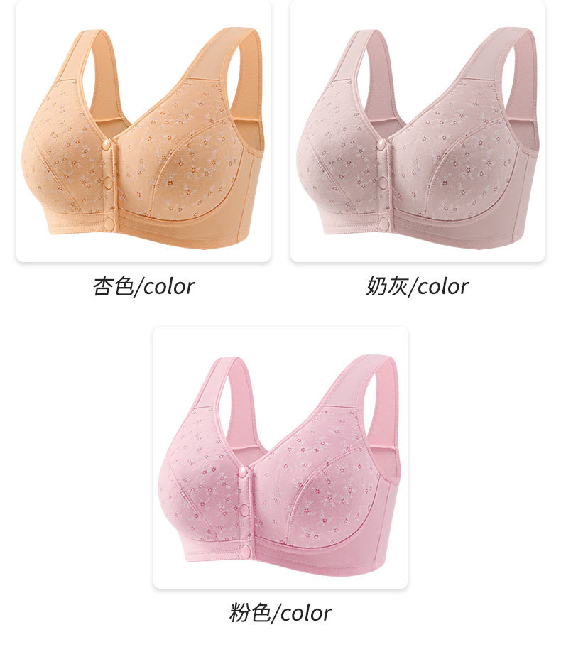 中老年妈妈棉质文胸无钢圈聚拢防下垂前开扣背心内衣女士胸罩夏季