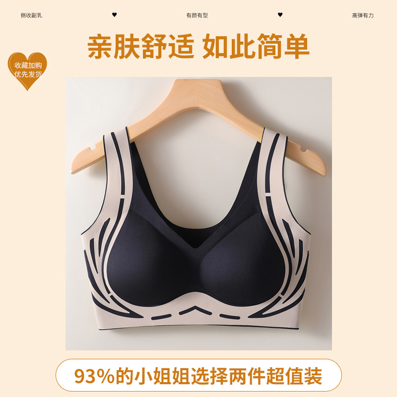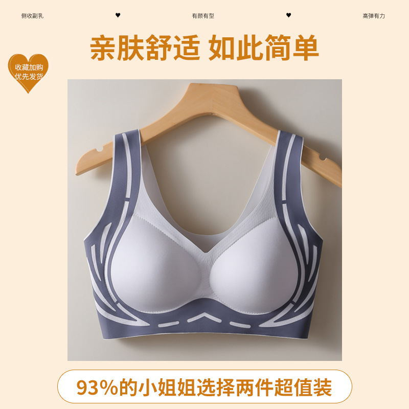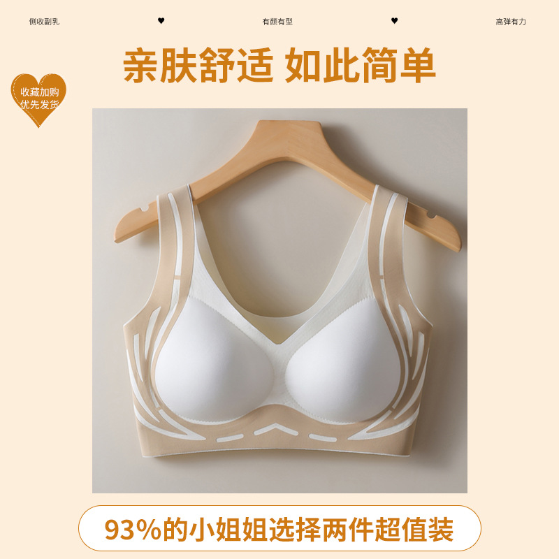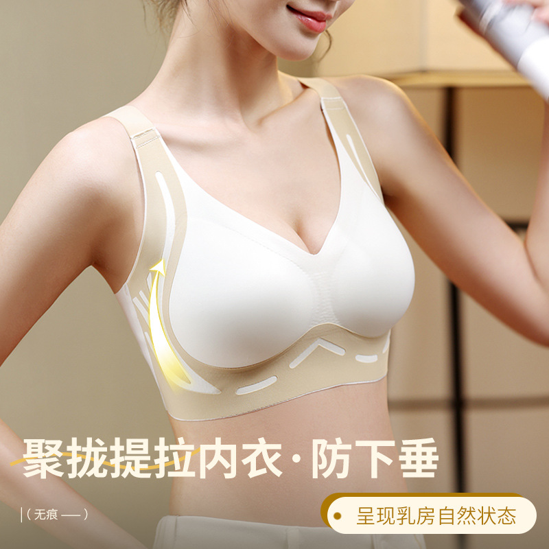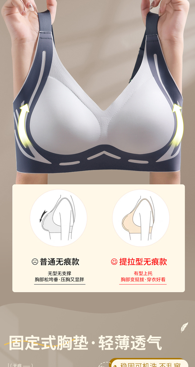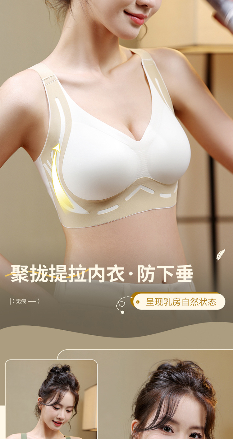 无痕美背提拉内衣女固定杯收副乳提拉立挺防下垂聚拢背心式文胸女