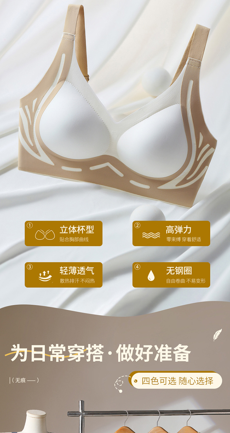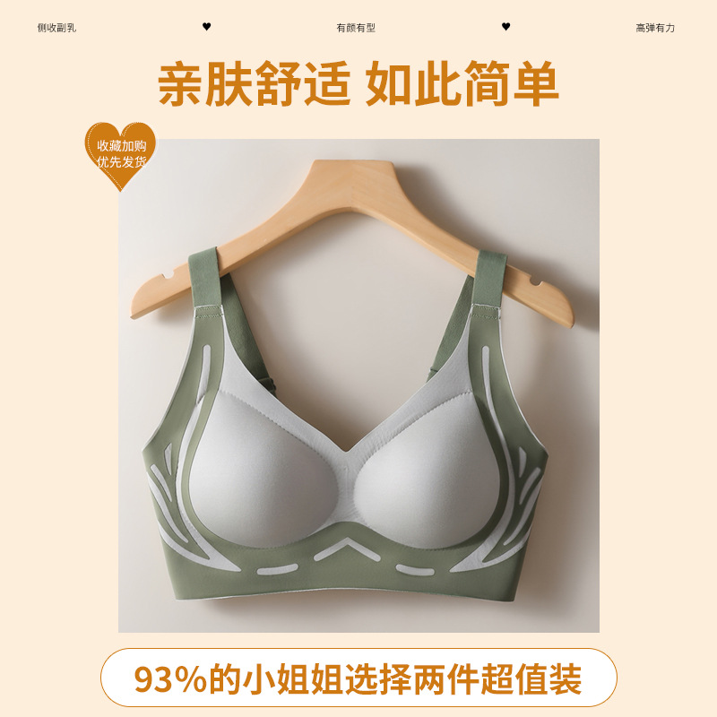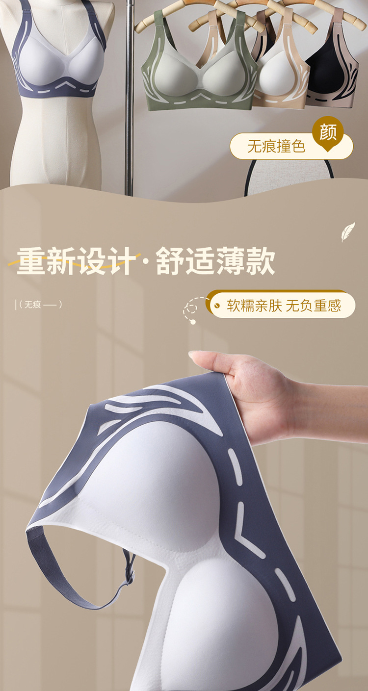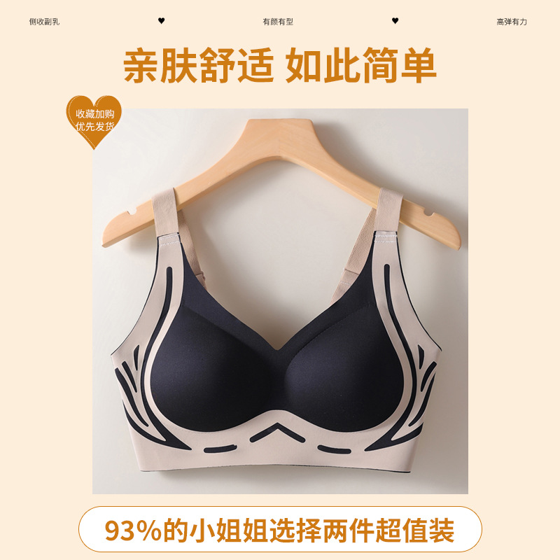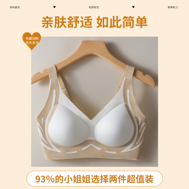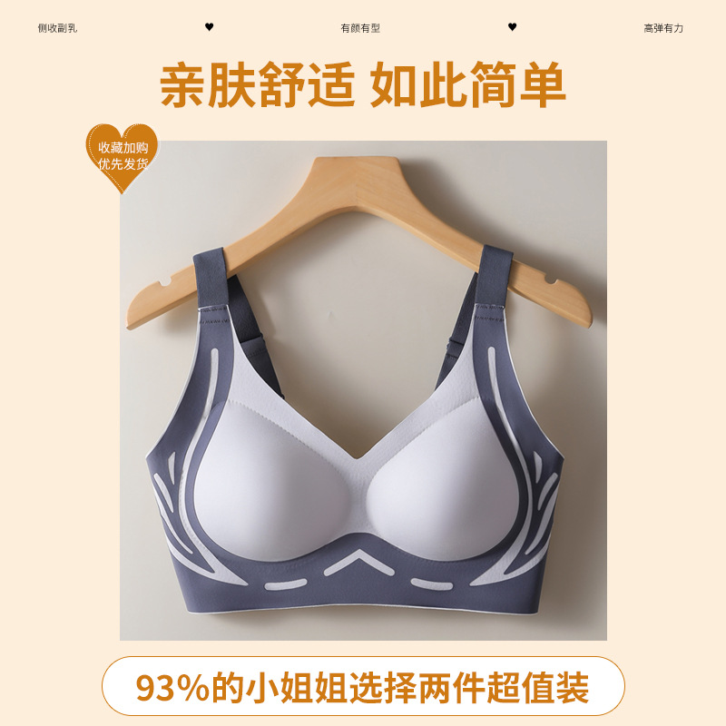 无痕美背提拉内衣女固定杯收副乳提拉立挺防下垂聚拢背心式文胸女